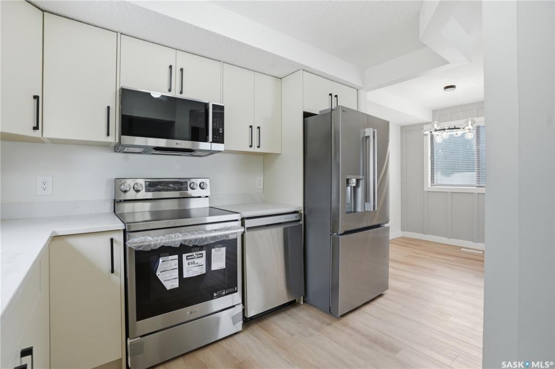 Welcome to 154-227 Saguenay Drive, a beautifully renovated townhouse in the sought-after River Heights neighbourhood. This impressive 1-bedroom, 1,238 sq. ft. two-storey home showcases high-end finishes throughout and offers a perfect balance of style, comfort, and functionality. The bright, open-concept main floor features rich hard-surface flooring and oversized windows that flood the space with natural light. The modern kitchen is thoughtfully designed with upgraded countertops, sleek appliances, and custom oak cabinetry—ideal for both everyday cooking and entertaining. The living and dining areas flow seamlessly, creating a warm and inviting atmosphere. Upstairs, you'll find a spacious loft-style primary bedroom with plenty of room to unwind, along with a beautifully finished 4-piece bathroom complete with contemporary fixtures and a glass-enclosed shower. Situated close to river trails, shopping, and major amenities, this home combines urban convenience with neighbourhood charm. A single detached garage adds extra value, providing security and practicality—especially for Saskatoon winters. Don't miss this opportunity to own a fully renovated, high-end home in one of Saskatoon's most desirable communities. Book your private showing today!