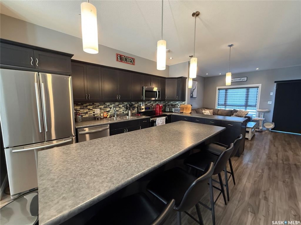 If you're looking for low maintenance home ownership without sacrificing on space and style then this is the one for you! This gorgeous townhouse offers so much for singles, families, or couples! Entering into the main floor you'll find a spacious foyer with closet. Down a couple of steps to the attached heated garage, utility room, and a huge bright bonus room with 2 piece bathroom and patio doors leading out onto the private patio. This space offers so much flexibility for a play room, family room, gym, office, you name it! Up to the main level you find the impressive open concept kitchen/dining/living room. This is the hub of the home with tons of space for entertaining, cooking, and hosting large family dinners should you wish! With large windows throughout, the natural light is beautiful throughout. The kitchen boasts a large eat up island, stainless steel appliances and plenty of cabinetry. The living room features a gas fireplace and patio doors leading to the deck where you can BBQ and watch the sunset. Completing this level is a 2 piece powder room. Upstairs are three bedrooms, two bathrooms, and laundry conveniently as well. The primary bedroom is huge, with an envious walk in closet and full four piece en suite with a brand new tub. The two secondary bedrooms are also spacious with a four piece bathroom adjacent. This home truly has it all, quick possession available.