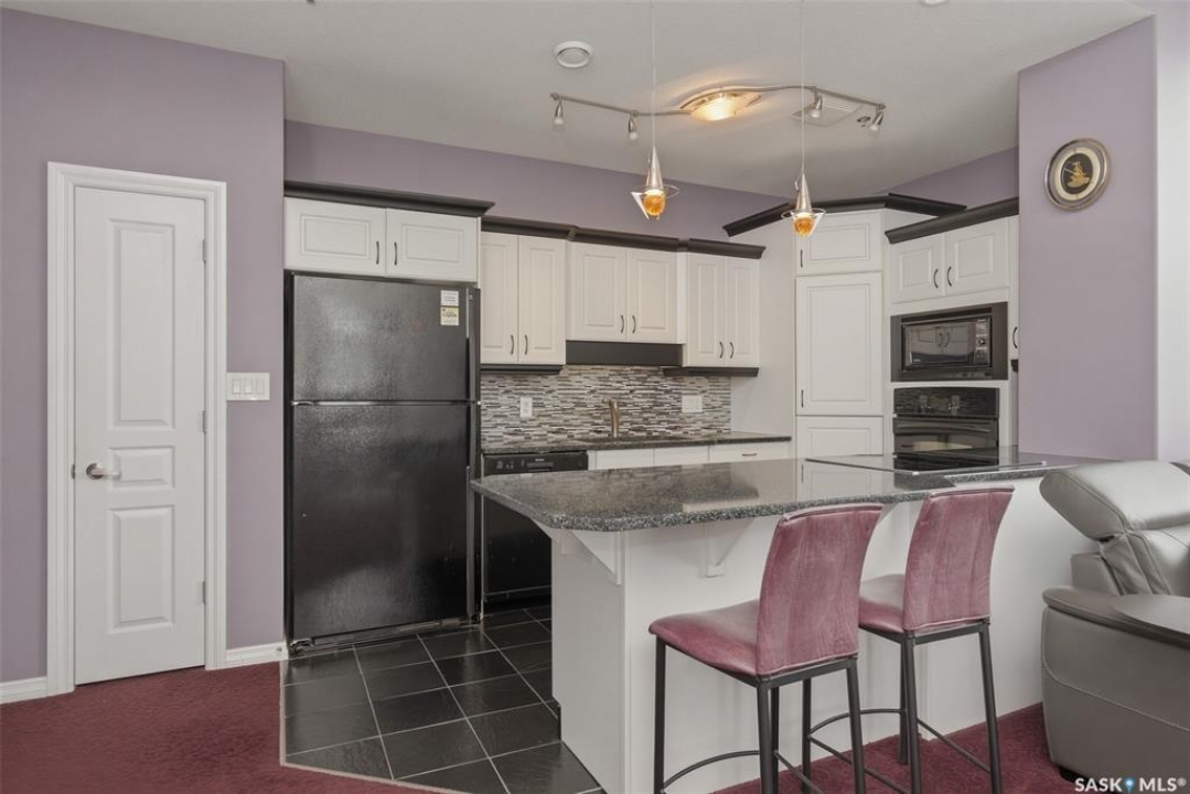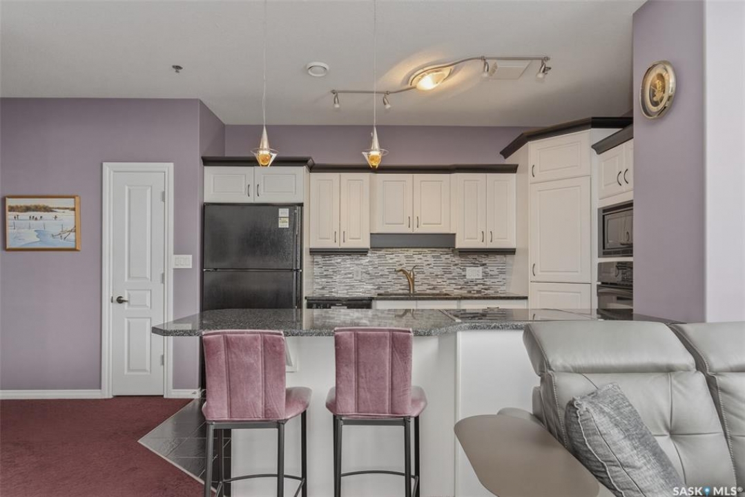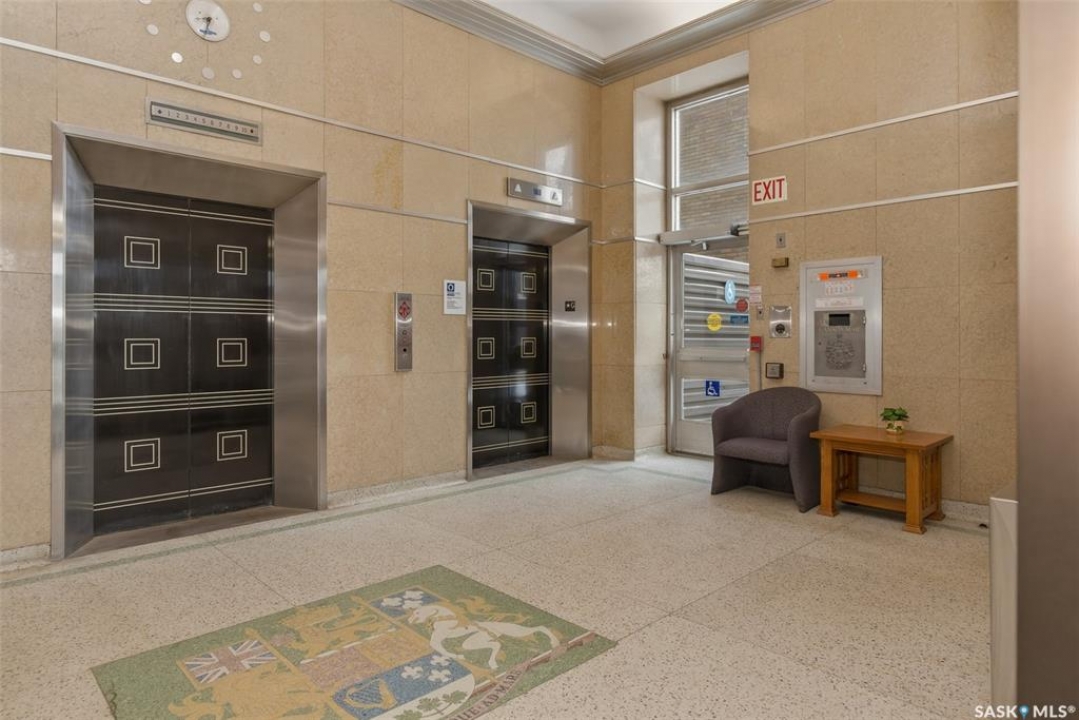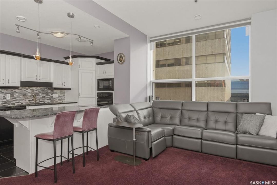 Welcome to this 1,221 sq. ft., 2-bedroom, 2-bathroom condo on the 8th floor of the Motherwell Building. Fully renovated in 2012, this unit features white kitchen cabinets, quartz countertops, tile flooring in the bathrooms, and high-quality burgundy/wine carpets throughout. The home offers 9-foot ceilings in the kitchen and 10-foot ceilings in the living room and both bedrooms, with a south-facing balcony and bedrooms that bring in excellent natural light. A gas fireplace adds comfort to the living area, and additional features include Custom Electric blinds, in-suite laundry, one titled parking stall, and a separate storage space in the basement. This well-kept, move-in-ready condo is steps from Crave, Gulf's Steakhouse, coffee shops, and within walking distance to Wascana Park. Both bedrooms and the Balcony have a great view for Canada day Fireworks every year.