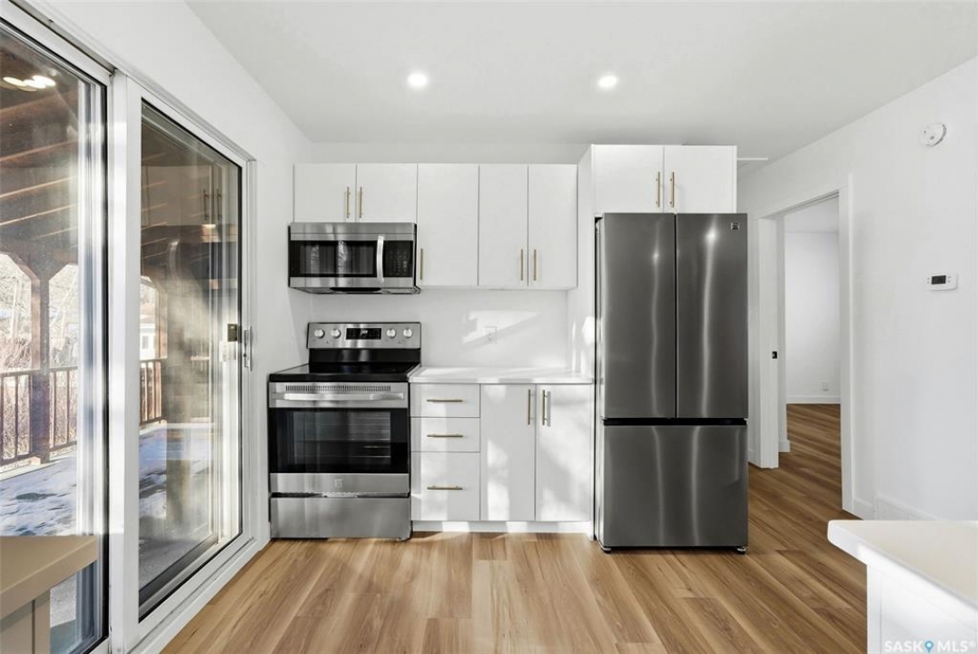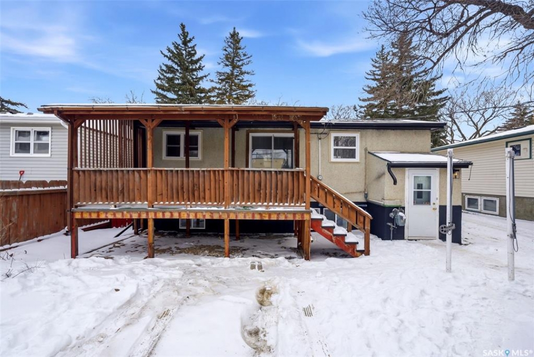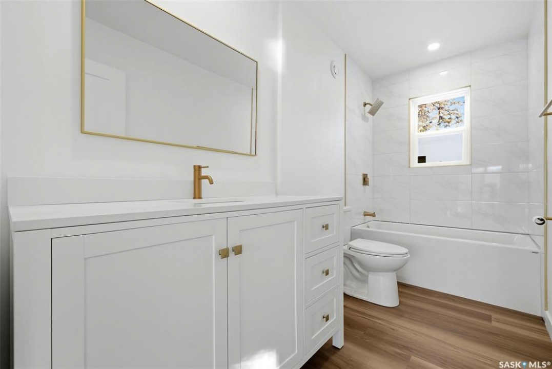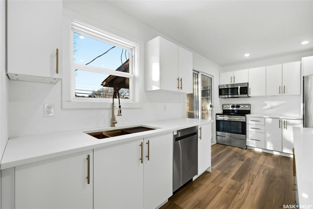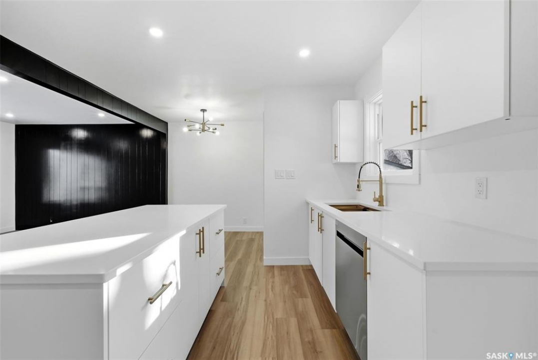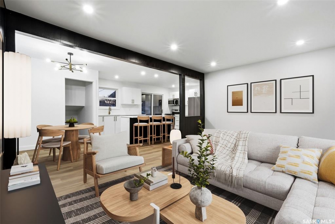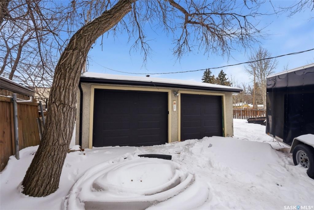 Welcome to 964 Royal Street in Rosemont — a fully renovated bungalow offering modern design, smart functionality, and impressive garage space. This 850 sq. ft. home has been extensively updated from top to bottom and features 3 bedrooms, 2 beautifully finished bathrooms, and a fully developed basement. The main floor showcases a bright open-concept layout with durable vinyl plank flooring, recessed lighting, and a bold feature wall that adds contemporary character. The brand-new kitchen is both stylish and functional, complete with crisp white cabinetry, quartz countertops, gold hardware, stainless steel appliances, and a large island ideal for entertaining. Two bedrooms and a stunning 4-piece bath with modern tile surround and upgraded fixtures complete the main level. Downstairs, the fully finished basement offers a spacious recreation room, a third bedroom, an additional 4-piece bathroom, and a dedicated laundry area. Whether you need extra living space, guest accommodations, or a home office setup, this layout delivers flexibility. Step outside to enjoy the covered rear deck — perfect for relaxing or hosting in warmer months. The fully fenced 6,247 sq. ft. lot provides plenty of yard space and privacy. A major highlight is the double detached garage, offering excellent storage, workspace potential, and room for vehicles or toys. Additional features include forced air natural gas heating, central air conditioning, and numerous cosmetic and functional upgrades throughout. Located close to schools, parks, and north-end amenities, this move-in ready home blends modern style with everyday practicality.