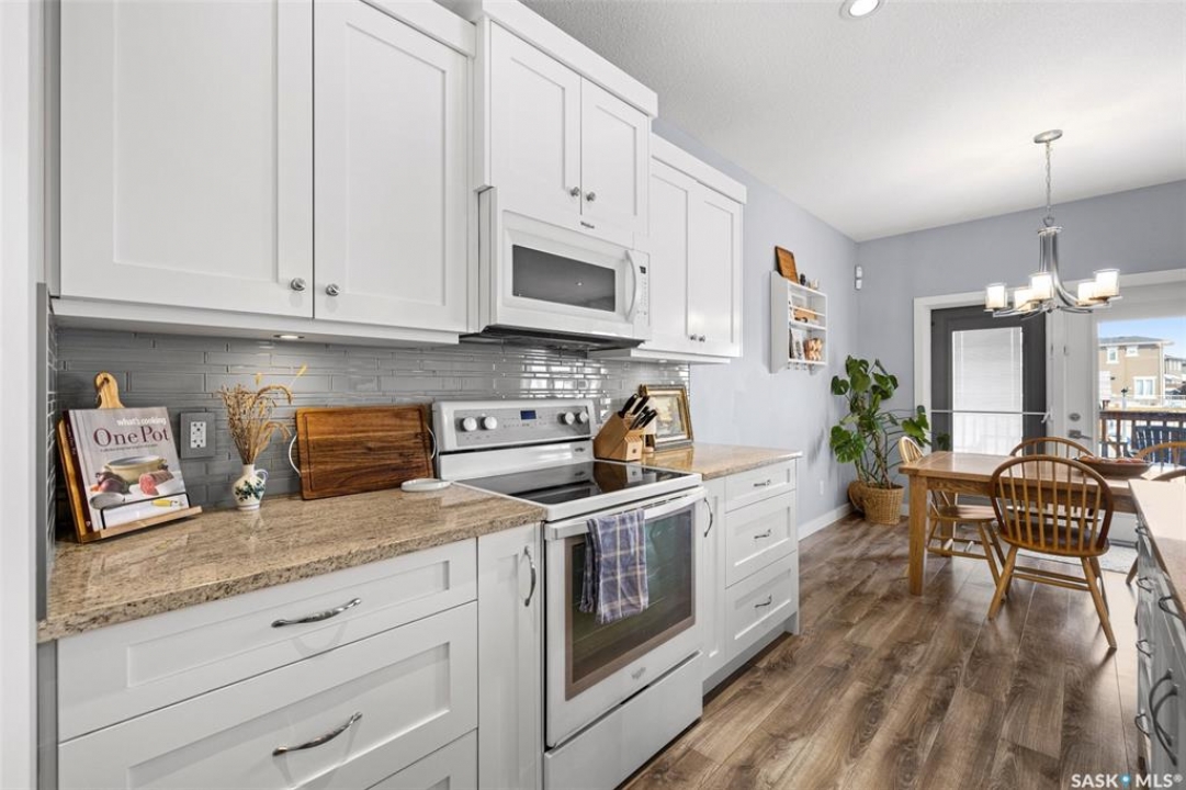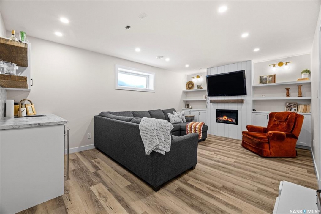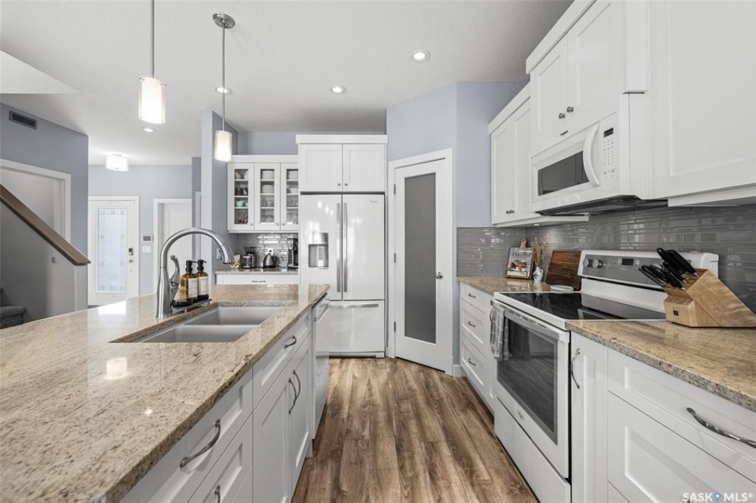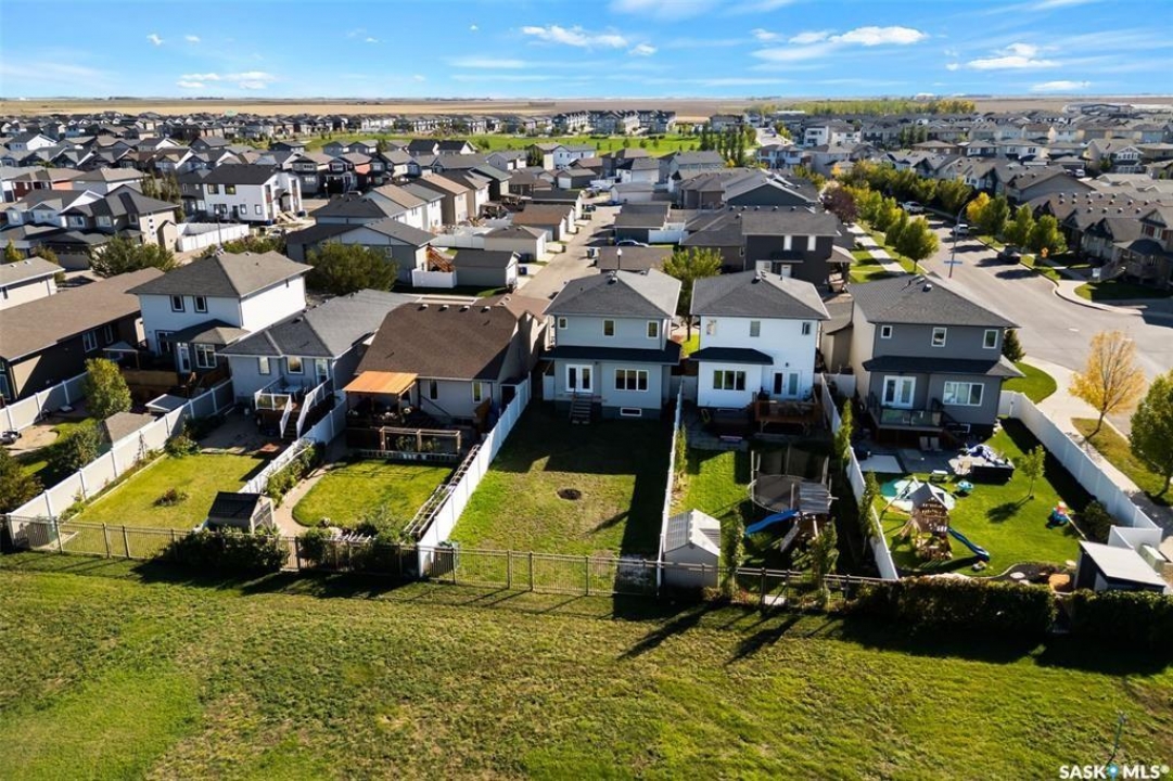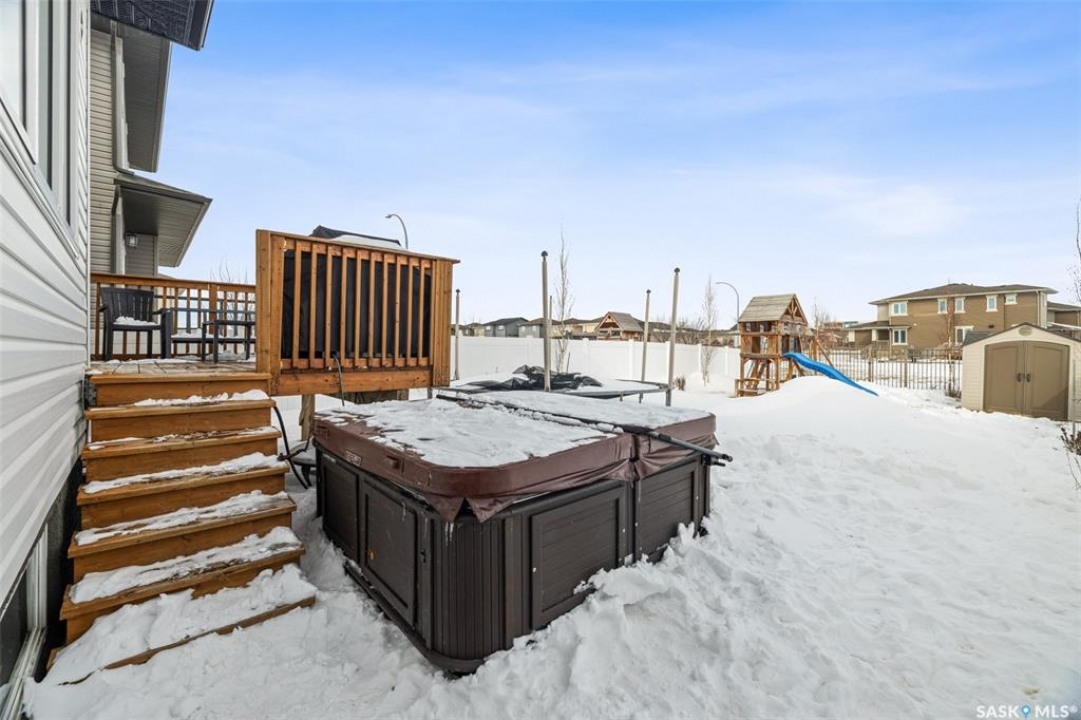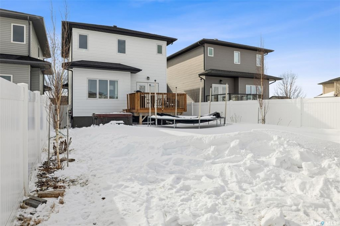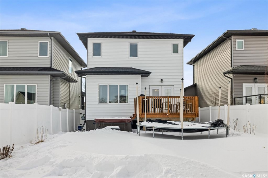 Located on a mature street in Harbour Landing, this beautifully maintained two-storey home built by Ripplinger Homes offers just under 1500 sq ft of living space. From the moment you arrive, you'll be captivated by the home's classic design and elegant neutral exterior - delivering stunning curb appeal that is both warm and welcoming. With 4 bedrooms, and 4 bathrooms this home offers the perfect balance of function and effortless style. The main floor features 9ft ceilings, a bright open-concept layout, main floor laundry, and a neutral palette that feels both fresh and enduring. The kitchen blends function and style with granite countertops, a silgranit sink, glass tile backsplash, white appliances, and a thoughtfully designed walk-in pantry with custom shelving. The dining room and living spaces flow seamlessly from the kitchen and complete the main floor. Moving upstairs you'll enjoy comfortable family living with considerable bedroom sizes. The primary bedroom offers a spa-inspired ensuite with a wide vanity and double sinks, along with an impressive custom walk-in closet. The professionally developed basement (completed in 2020 by Willoak Homes) creates the ultimate retreat. Host effortlessly at the wet bar, and enjoy cozy nights by the electric fireplace with vertical shiplap anchoring the basement living space, complemented by built-in cabinetry, open shelving, and sconces. Step outside to a fully fenced yard - shed, play structure, and hot tub included - backing green space with direct access to walking paths. The double attached garage features impressive 12 foot ceilings and includes a pit with catch basin, ideal for hobbyists or additional utility. Tucked into a family-friendly neighbourhood and walkable to schools and amenities, this location offers convenience without sacrificing privacy. Bright. Neutral. Thoughtfully finished. A home designed for both everyday living and slow evenings, is now waiting for you to make it yours!
