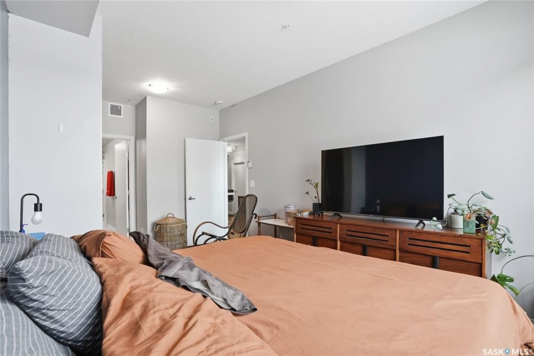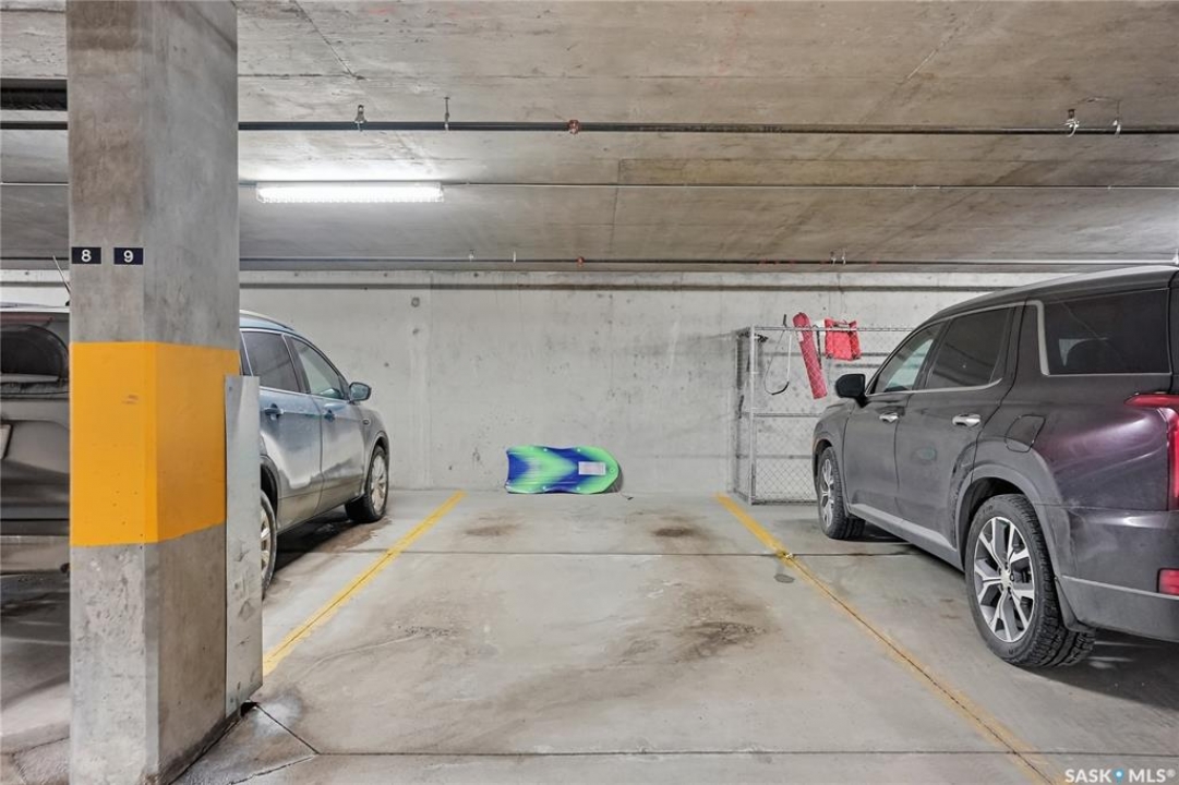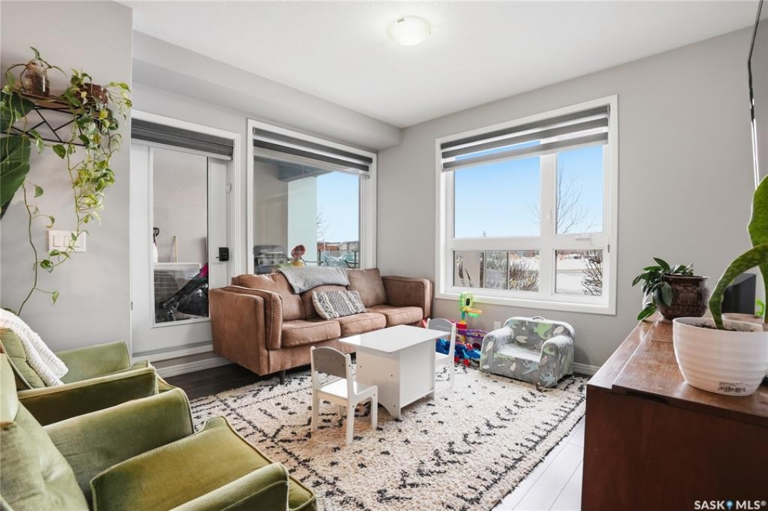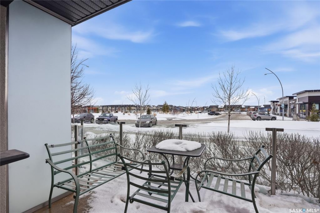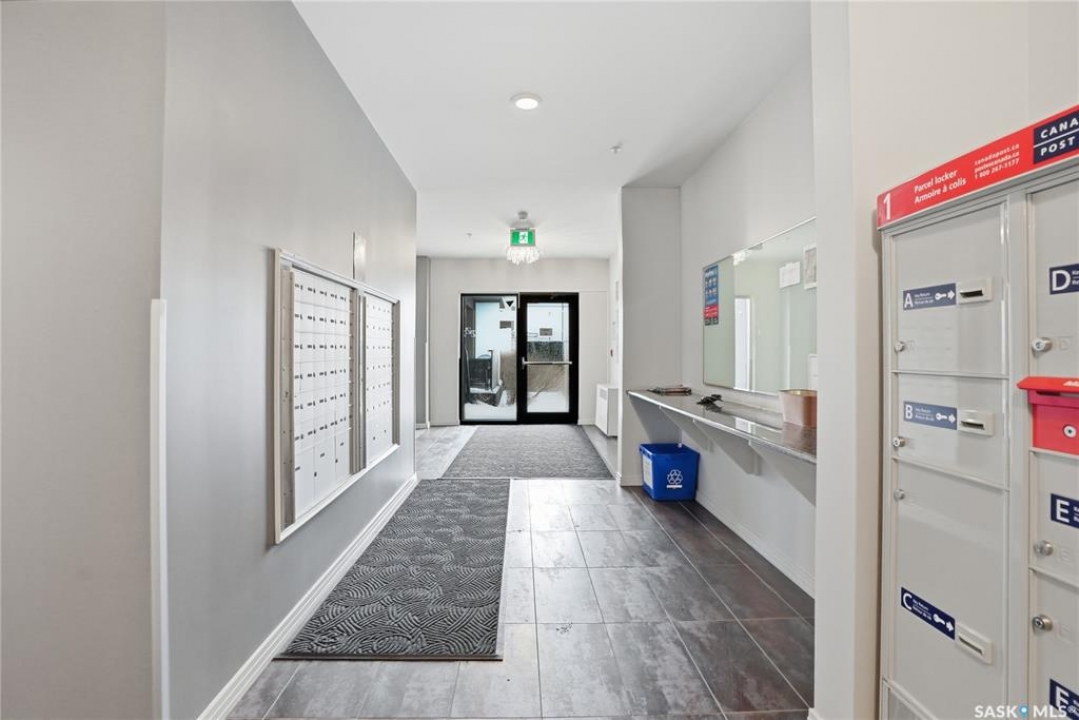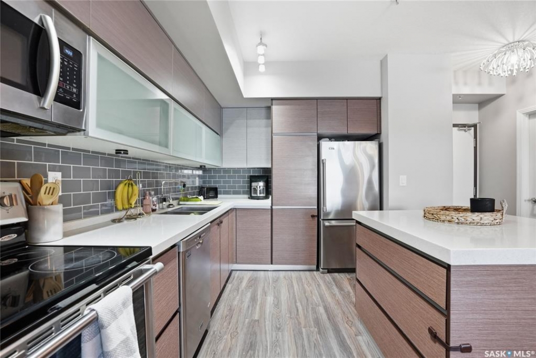 Welcome to Sequoia Square, where comfort meets convenience in this exceptionally maintained main-floor condo. This beautiful 2-bedroom, 2-bathroom home offers stylish living with the added bonus of direct exterior access — providing extra privacy and easy entry. Step inside to discover a bright, open-concept layout enhanced by soaring 9-foot ceilings and expansive windows that fill the space with natural light. The thoughtfully designed floor plan features forced air heating for consistent, year-round comfort. The contemporary kitchen is both functional and elegant, showcasing quartz countertops, stainless steel appliances, soft-close cabinetry, and a standalone island that offers additional prep space, storage, and casual seating. Seamlessly connected to the dining and living areas, it's perfectly suited for entertaining or relaxed everyday living. The spacious primary suite serves as a private retreat, complete with large windows, a refined dressing/closet area, and a modern ensuite featuring double sinks and a walk-in shower. A second well-sized bedroom, a full four-piece bathroom, and a convenient in-suite laundry and storage room complete the interior. Enjoy your morning coffee or unwind in the evening on the generous covered balcony — a perfect extension of your living space. Additional features include central air conditioning, one underground parking stall, and one electrified surface stall. Residents also enjoy access to a welcoming main lobby and recreation rooms on each floor. Ideally situated with quick access to the University of Saskatchewan and nearby amenities, this outstanding main-floor unit offers the perfect blend of style, function, and location.