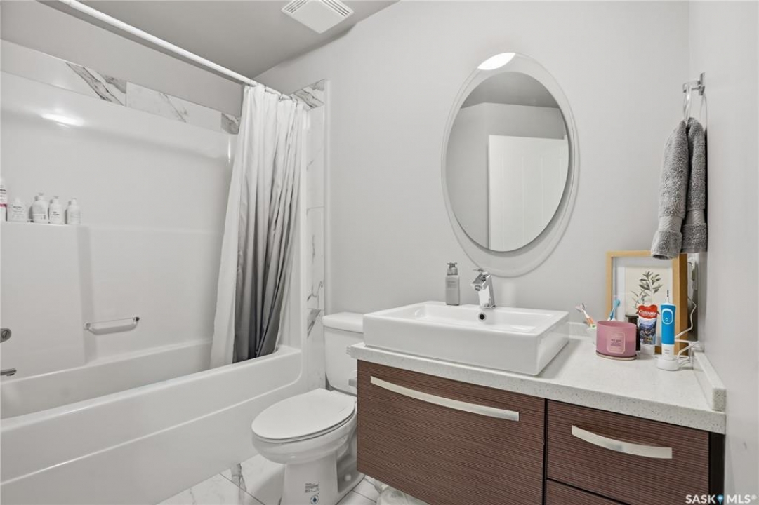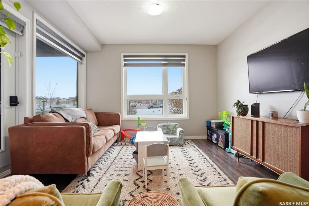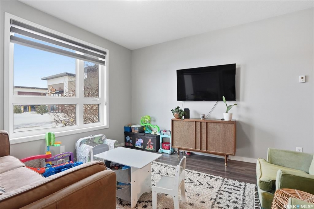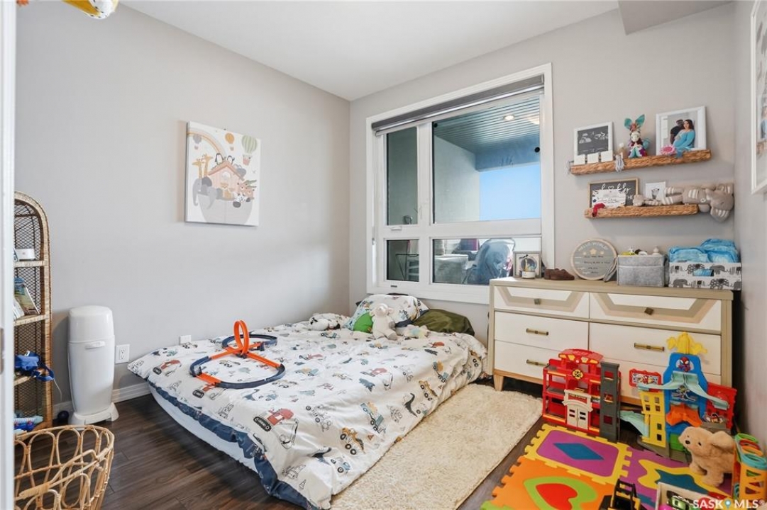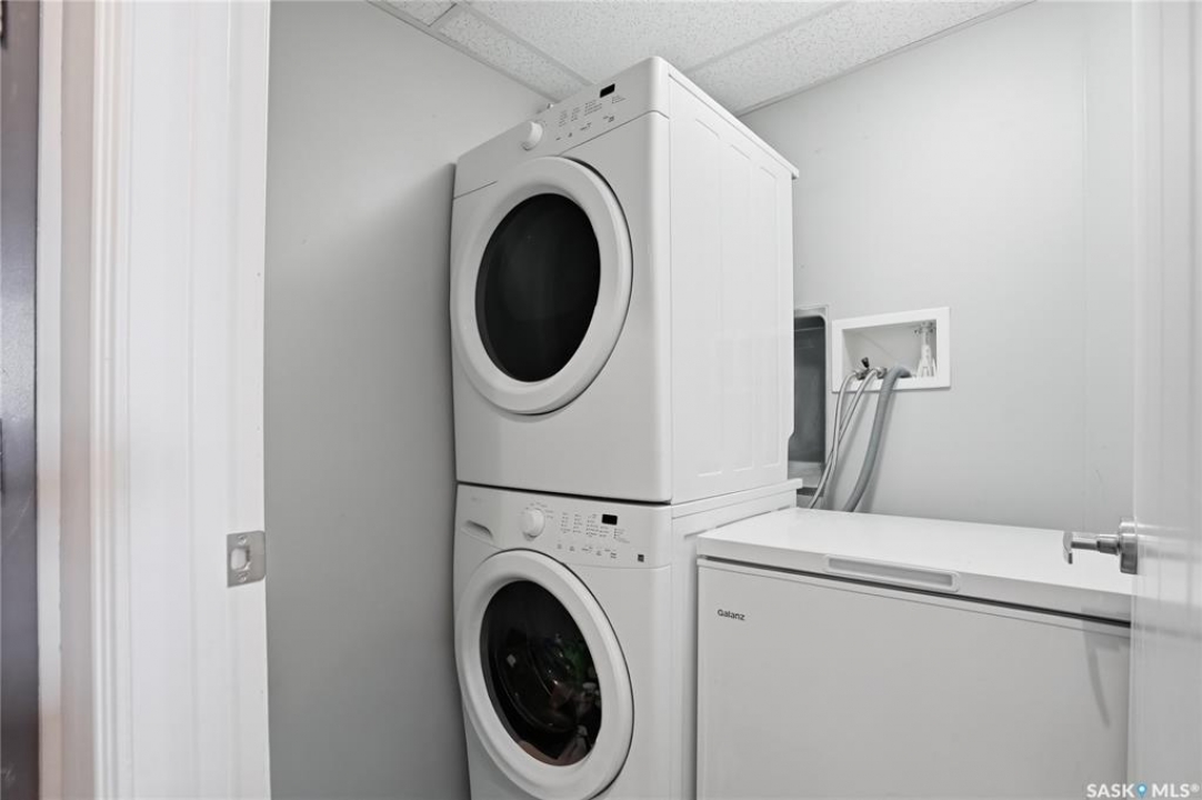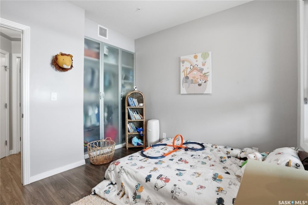 Welcome to Sequoia Square, where comfort meets convenience in this exceptionally maintained main-floor condo. This beautiful 2-bedroom, 2-bathroom home offers stylish living with the added bonus of direct exterior access — providing extra privacy and easy entry. Step inside to discover a bright, open-concept layout enhanced by soaring 9-foot ceilings and expansive windows that fill the space with natural light. The thoughtfully designed floor plan features forced air heating for consistent, year-round comfort. The contemporary kitchen is both functional and elegant, showcasing quartz countertops, stainless steel appliances, soft-close cabinetry, and a standalone island that offers additional prep space, storage, and casual seating. Seamlessly connected to the dining and living areas, it's perfectly suited for entertaining or relaxed everyday living. The spacious primary suite serves as a private retreat, complete with large windows, a refined dressing/closet area, and a modern ensuite featuring double sinks and a walk-in shower. A second well-sized bedroom, a full four-piece bathroom, and a convenient in-suite laundry and storage room complete the interior. Enjoy your morning coffee or unwind in the evening on the generous covered balcony — a perfect extension of your living space. Additional features include central air conditioning, one underground parking stall, and one electrified surface stall. Residents also enjoy access to a welcoming main lobby and recreation rooms on each floor. Ideally situated with quick access to the University of Saskatchewan and nearby amenities, this outstanding main-floor unit offers the perfect blend of style, function, and location.