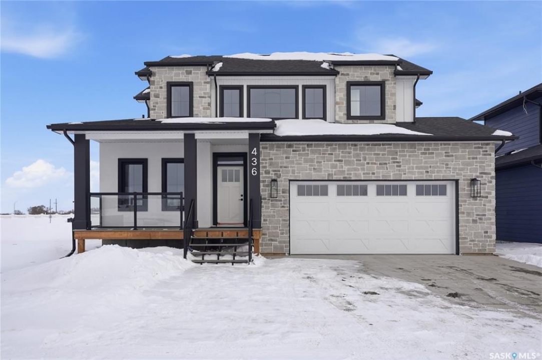 Welcome to 436 Augusta Blvd, Warman! This beautiful Country Modern Home is located right by a school and a large green space. walking into the home you have a large foyer. Right off the entrance is an office with large south facing windows that look out onto the pond. In the living room you have a beautiful fireplace with inset shelves on either side. The kitchen is a show stopper with a large island, large double door refrigerator, walk-in pantry and counter top lighting! the main floor also has a statement 2 pc bathroom and a mud/laundry room off of the garage entrance. Heading upstairs is the Primary bedroom with a double door entry, vaulted ceiling, abundance of natural light, large walk-in closet, and a beautiful 5-pc Ensuite! there are three more bedrooms upstairs with a jack and Jill 5-pc bathroom. The home has a double attached garage, front porch and a back deck. This home will offer you comfort and luxury! Contact your favourite realtor to view today!