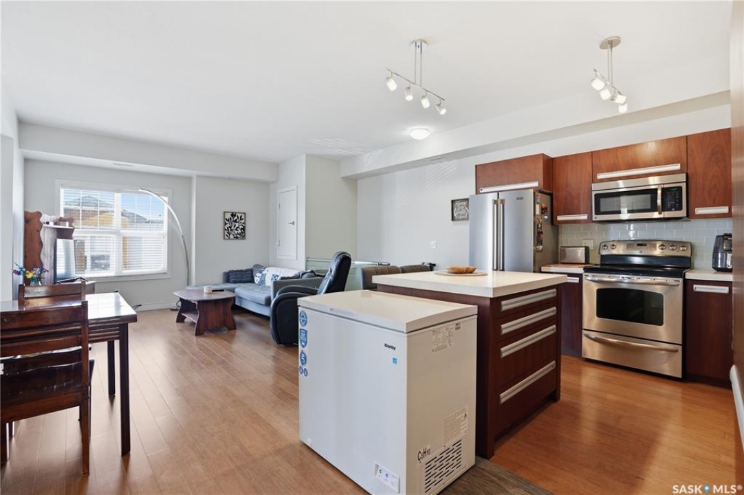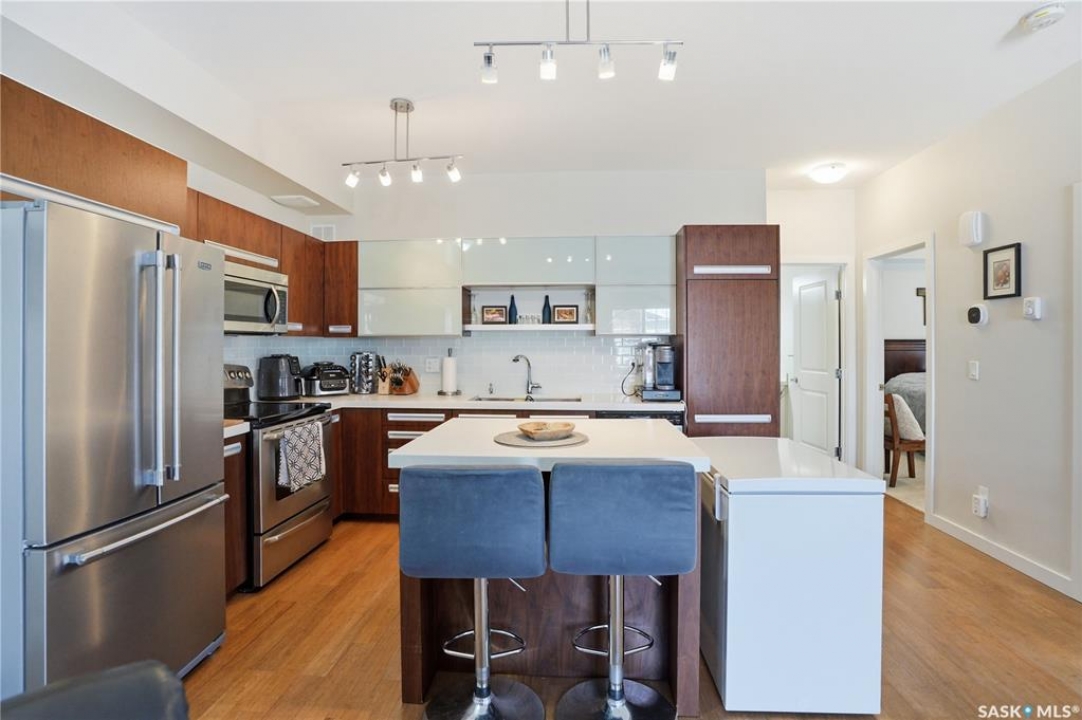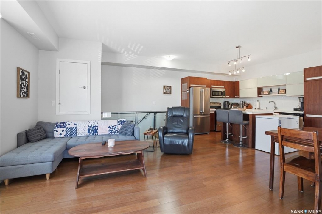Welcome to this bright and beautifully maintained top-floor Ginger Loft unit offering 2 bedrooms and 1 full bathroom in a prime location! The open-concept layout creates a spacious and inviting atmosphere, perfect for both relaxing and entertaining. The living and dining areas flow seamlessly together, with large windows bringing in plenty of natural light and access to a private balcony. In the livingroom over the stairs, you will find a space dedicated to extra storage. The functional kitchen overlooks the main living space, making it easy to stay connected with guests or family. Located just minutes from shopping centres, restaurants, and the University of Saskatchewan, this home is perfect for students, professionals, or investors alike. Residents enjoy access to an impressive clubhouse featuring a fully equipped gym, games area, pool, and hot tub — bringing resort-style amenities right to your doorstep. Call your favourite Realtor to book your private showing!