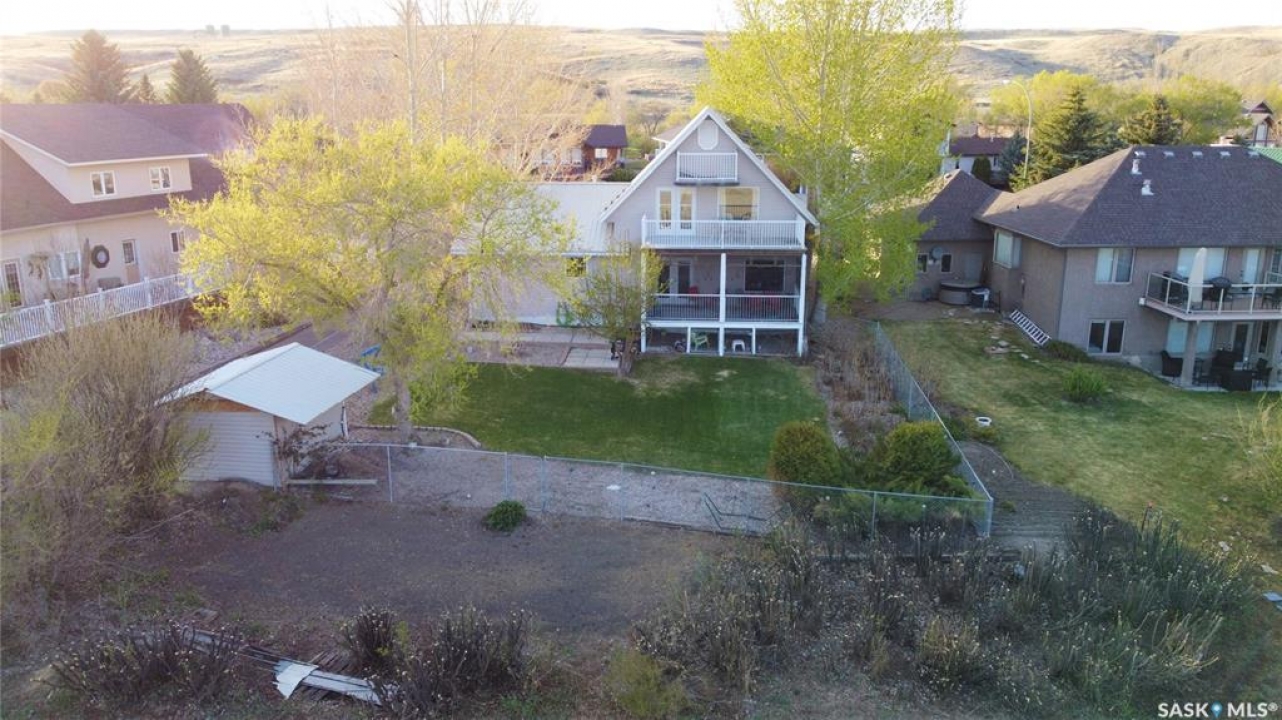 Escape the hustle of city life and embrace the relaxed rhythm of lake living at 130 Marine Drive in Saskatchewan Landing Provincial Park, just 35 minutes north of Swift Current. Enjoy fantastic south-facing views of Lake Diefenbaker from your kitchen window or from one of three decks. This spacious home offers 2,468 sq ft of living space over two levels plus a full basement. The bright open-concept main floor features a modern kitchen with newer appliances, a generous dining area, and an inviting living room designed for gathering. Two bedrooms are located on this level, including the primary suite with a 3-piece ensuite, along with a 4-piece main bath and convenient main floor laundry. Garden doors lead to a fully screened, covered south deck — the perfect place for morning coffee or evening sunsets. Upstairs, the expansive loft is currently used as family and recreation space, with garden doors leading to a private deck and access to a third elevated deck — WOW, the views! This versatile space could easily be developed into additional bedrooms if desired. The full basement offers a large family/rec room kept cozy year-round with in-floor heat and includes a bathroom rough-in for future development. The double attached garage also features in-floor heat for added comfort. Outside, enjoy a fully landscaped yard with underground sprinklers, mature trees and shrubs, perennials, lawn space, and a garden area. The provincial park lease is just $1,220 per year. With today's building costs, achieving this size and quality at this price per square foot would be extremely difficult — making this an exceptional opportunity. Fishing, boating, hiking, and golf are all minutes away. Life truly is better at the lake. Call your REALTOR � today to book your private showing. No GLE.