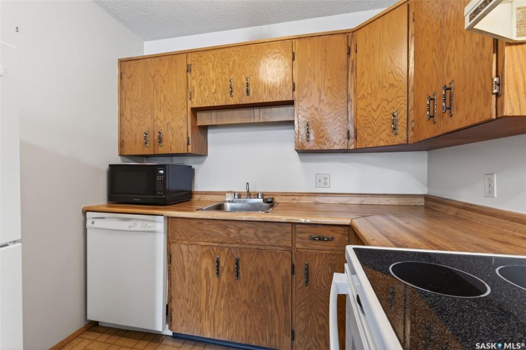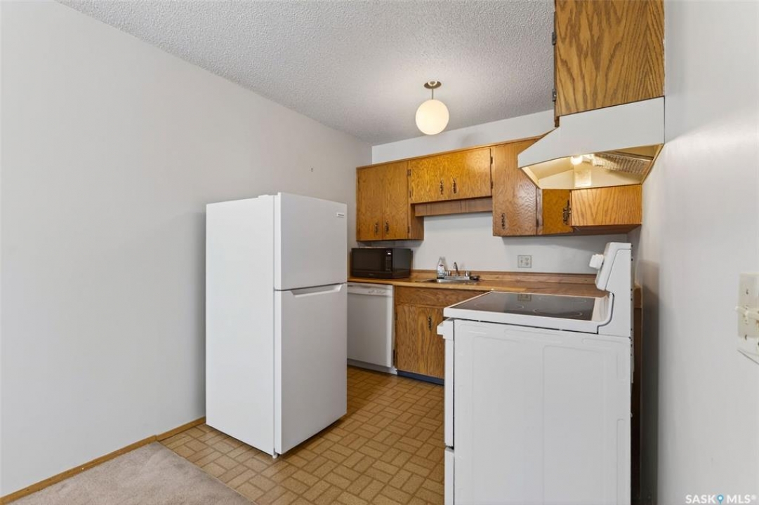 Welcome to this inviting one-bedroom top-floor condo in a small, well-run building. Perfect for a first-time homebuyer or someone looking to downsize, this unit offers comfort, convenience, and low-maintenance living. Enjoy the added privacy of a top-floor location along with the convenience of in-suite laundry and newer appliances. The functional layout provides great use of space, plus the rare bonus of two storage rooms—ideal for seasonal items and extra belongings. One electrified parking stall is included, making winter mornings that much easier.An affordable opportunity to own in a quiet, well-cared-for building—move-in ready and waiting for you!
