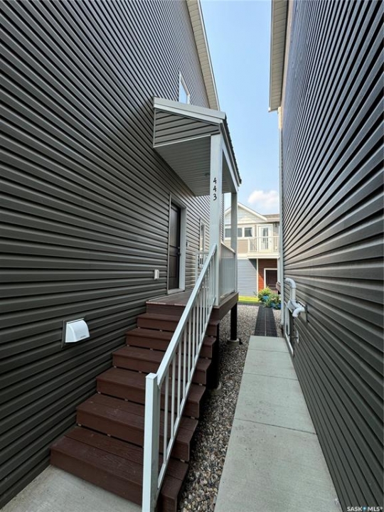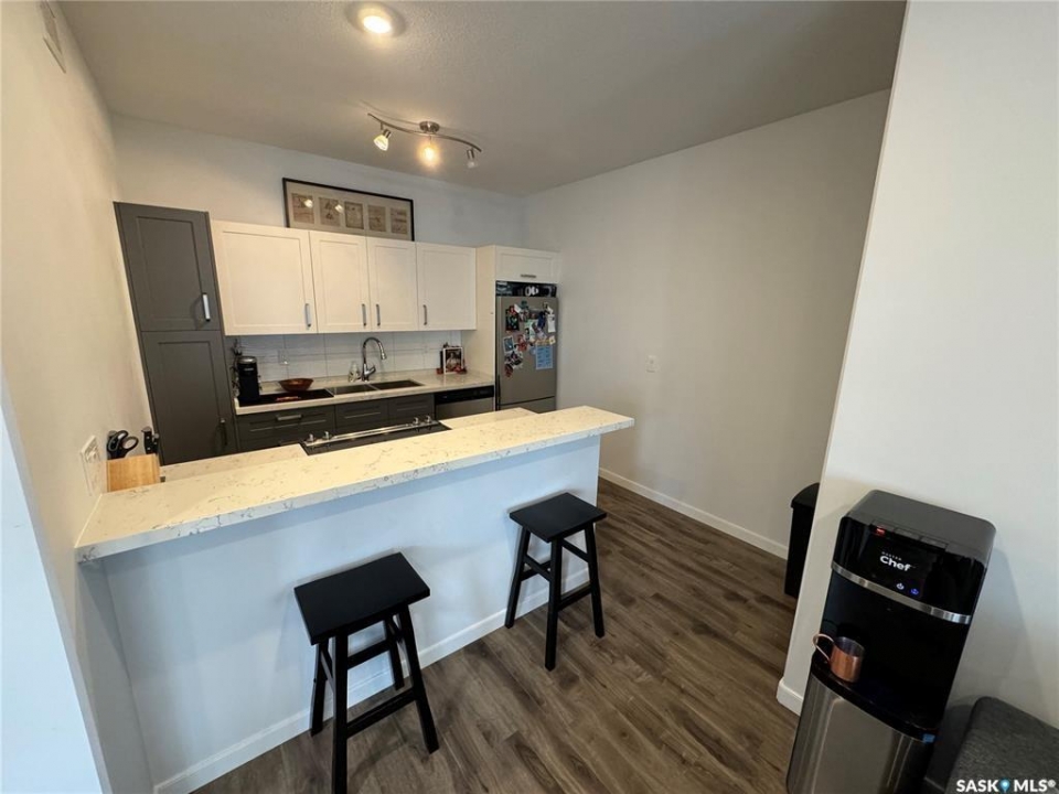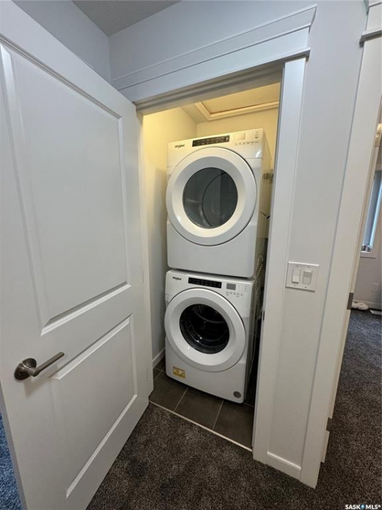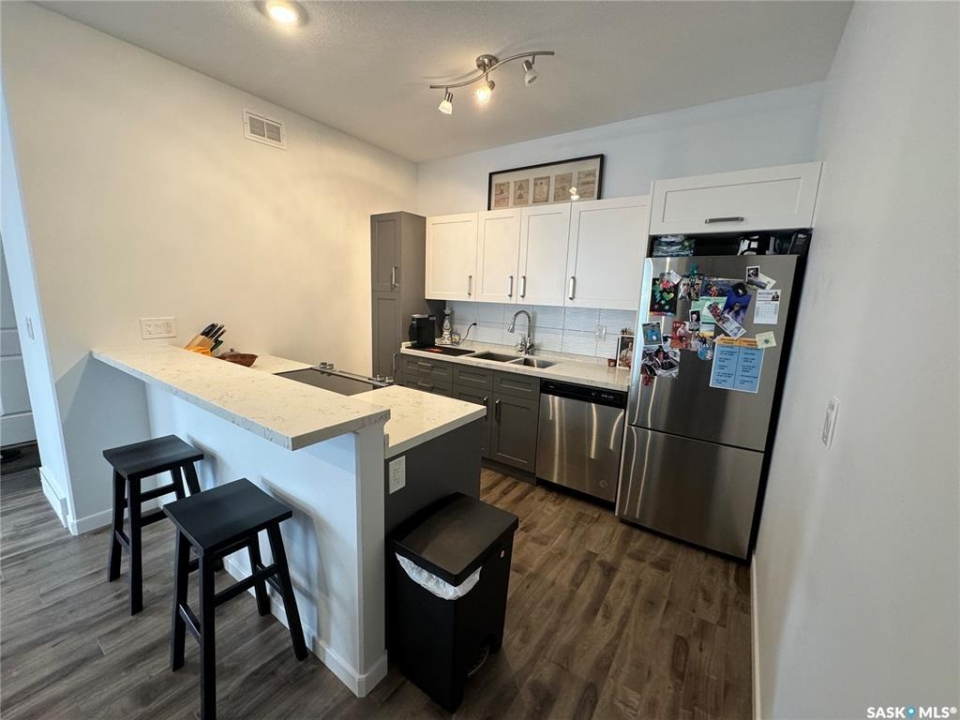 Clean, Modern Townhouse-Style Condo Offering Exceptional Value Welcome to this beautifully finished townhouse-style condo with quick access to Riversdale, the South Saskatchewan River, and minutes from Downtown. Combining modern design, functionality, and outstanding value, this home is perfect for first-time buyers, professionals, or investors. The main floor showcases a stylish two-tone kitchen with soft-close cabinetry, white quartz countertops throughout, stainless steel appliances, and energy-efficient recessed LED lighting. Premium Chestnut millwork adds warmth and character to the custom staircase railings. Upstairs features two spacious bedrooms, including a large primary with a walk-in closet and custom organizer, along with a contemporary three-piece bathroom and convenient stacked washer and dryer. The basement is neatly roughed-in and ready for future development, making it easy to add additional living space and a third bathroom leaving room for even more future opportunity to build equity and enhance long-term value. This is a fantastic opportunity to own a move-in ready home in a very central location of Saskatoon.