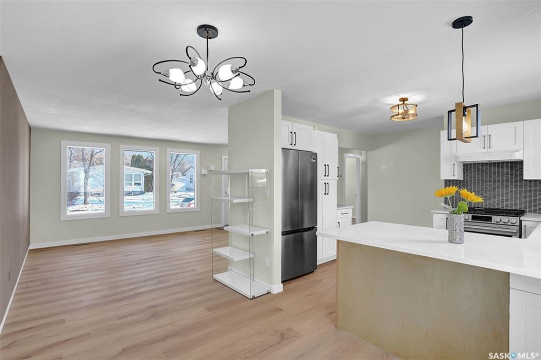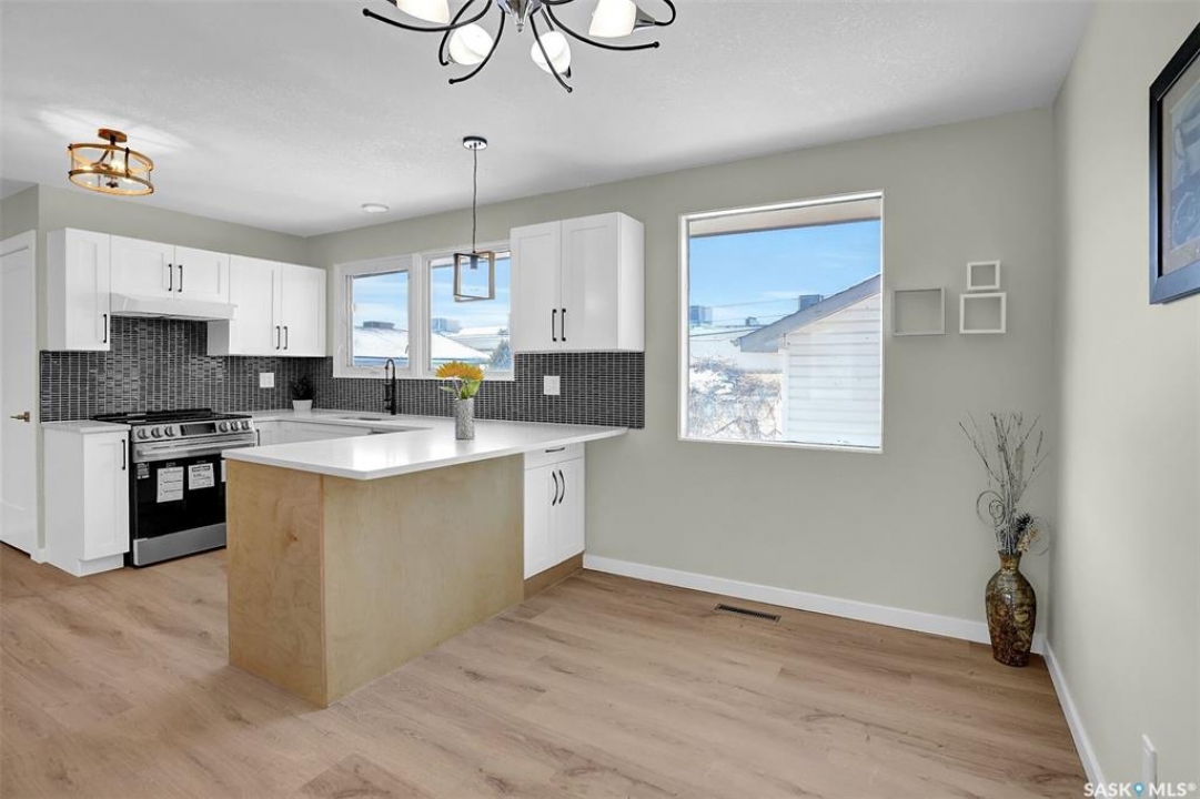 Fully renovated bungalow located in the desirable Whitmore Park neighborhood, close to schools, the University, shopping, and all south-end amenities. This 3-bedroom, 3-bathroom home features extensive upgrades, including renovated bathrooms, updated kitchen flooring, lighting fixtures and fresh paint throughout. The bright, open-concept main floor showcases a spacious living and dining area with attractive vinyl plank flooring. The adjoining kitchen has been tastefully updated with upgraded cabinetry, granite countertops, tiled backsplash, and full stainless steel appliance package and island seating. Down the hall are three well-sized bedrooms and a beautifully updated full bathroom. The fully finished basement offers additional living space, including a large family room, two additional bedrooms, a spacious den, laundry area, and a second renovated kitchen area (wet bar) with custom cabinetry and added storage. The exterior features a detached garage with an oversized workshop area. Recent upgrades include a new sewer line, new sump pump, new backwater valve and newer shingles, and updated furnace and air conditioner. A move-in-ready home with extensive improvements—an excellent opportunity not to be missed.