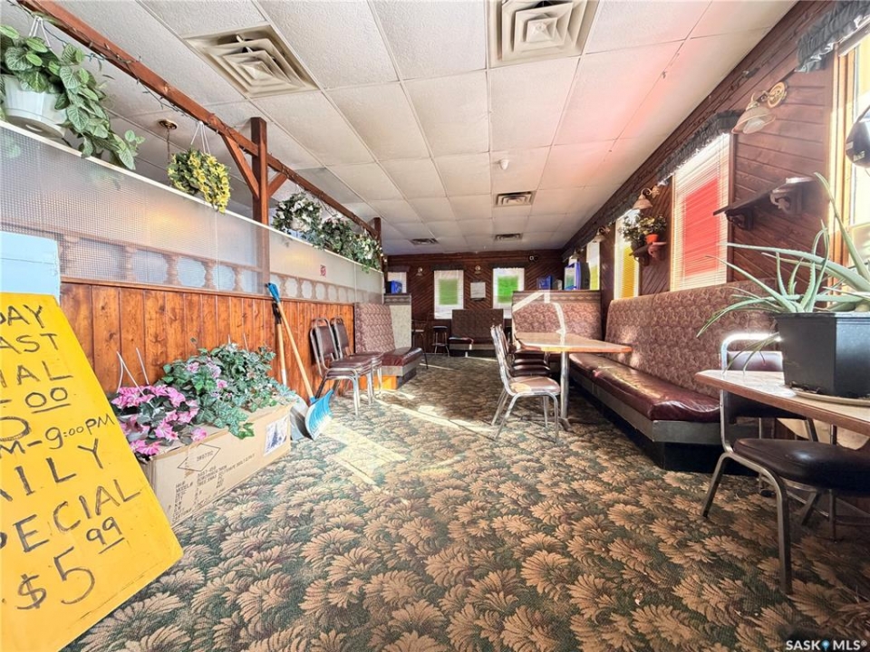 Priced for a quick sale! Long Standing restaurant, bar, and banquet facility located in the heart of Assiniboia, offering approximately 140 seats. The restaurant is ideally located along Highway 2, offering excellent visibility and convenient access for both local and highway traffic This well-known community establishment features a valid liquor license and a dedicated games room with four VLT machines (new owners will be required to obtain both permits from Saskatchewan Liquor and Gaming Authority). Major updates include a roof replacement in recent years, along with newer air conditioning and furnace systems for improved efficiency and comfort. The property is offered as an asset sale and sold in “as-is” condition, with all existing machinery, equipment, and chattels currently on site included in the purchase price. This is an excellent opportunity to acquire a fully equipped hospitality business with strong local presence and potential for growth.