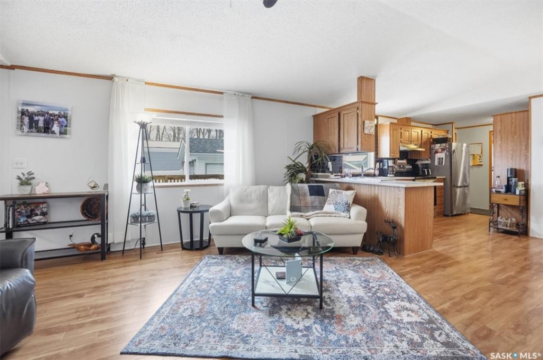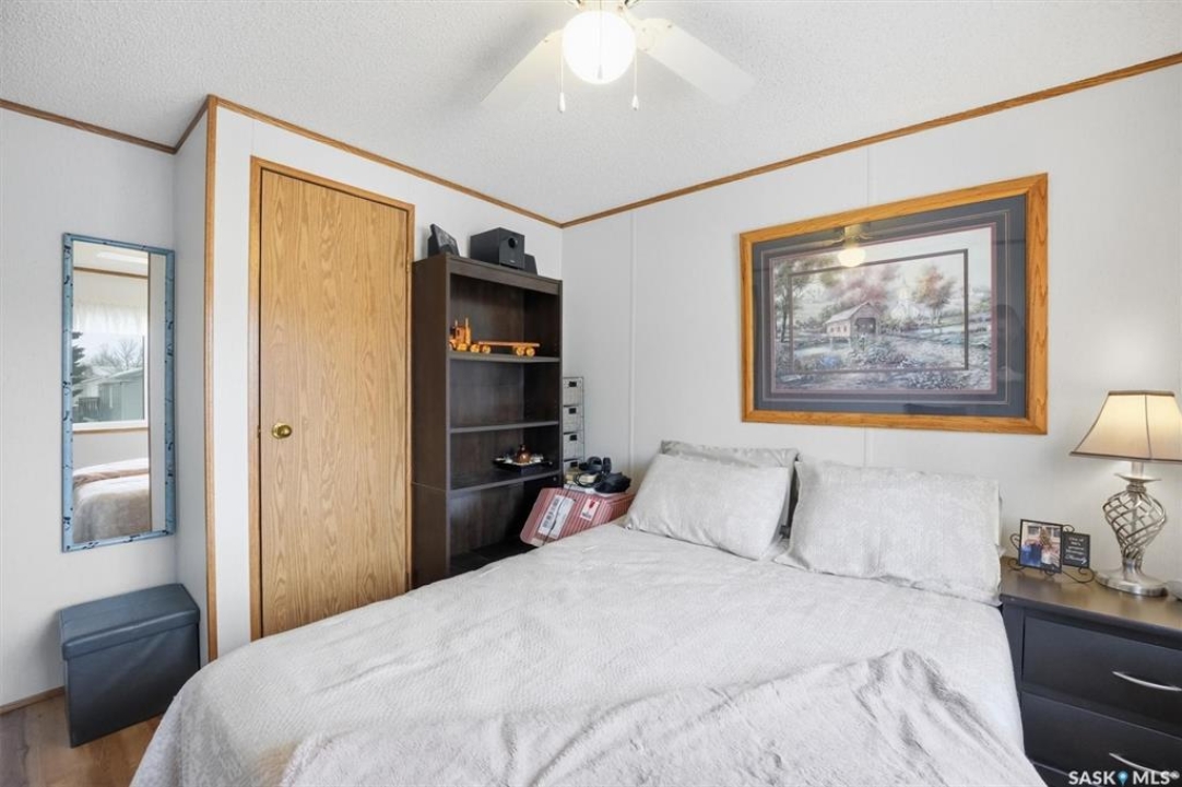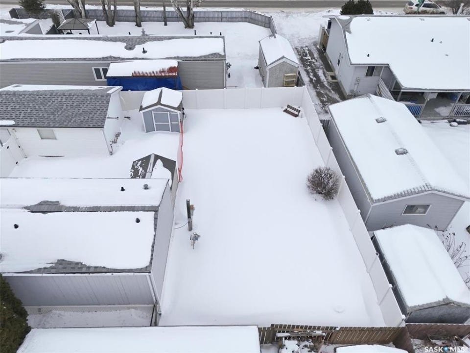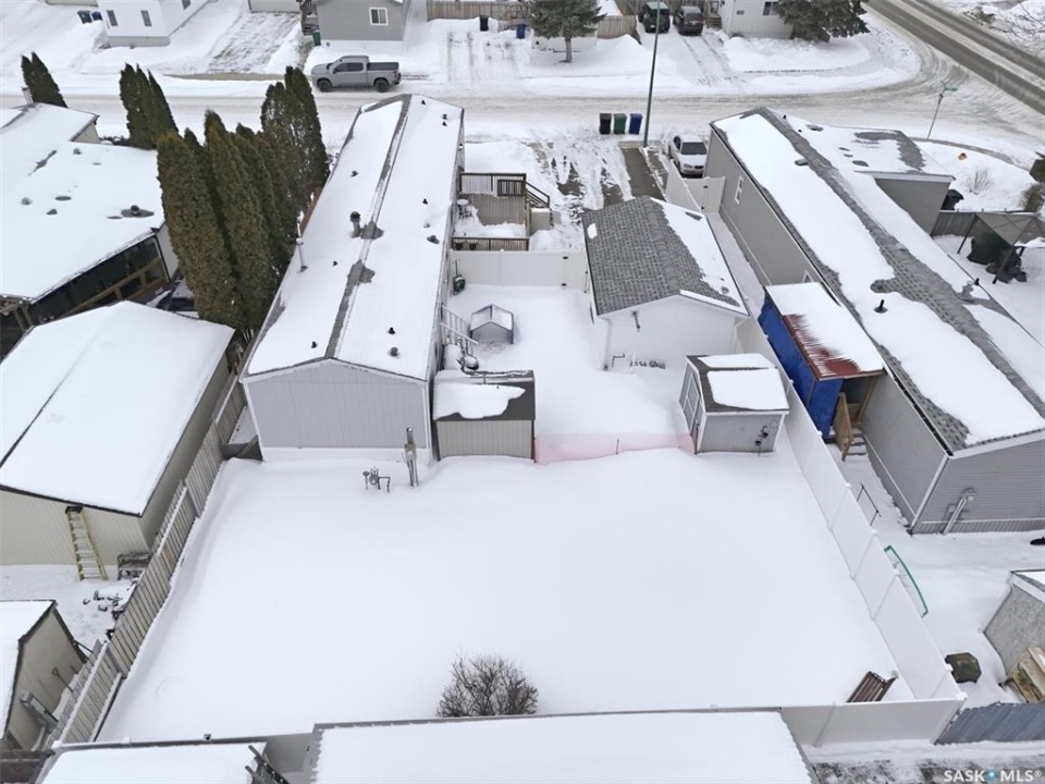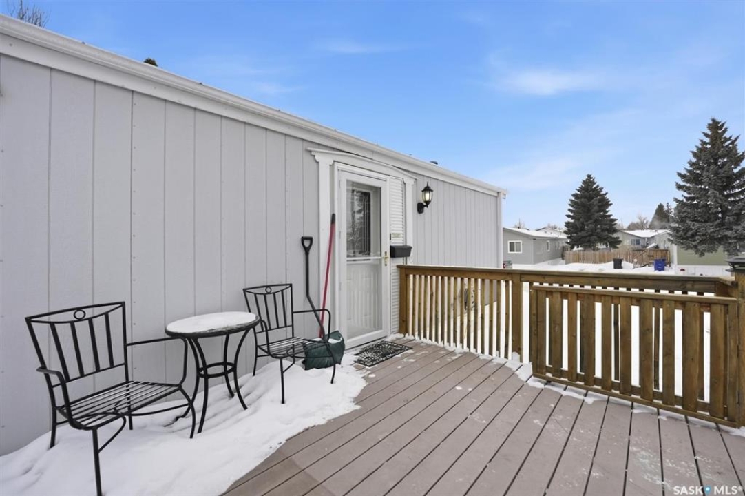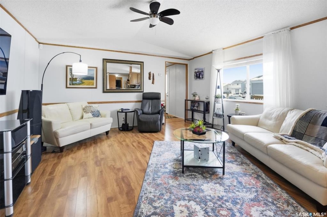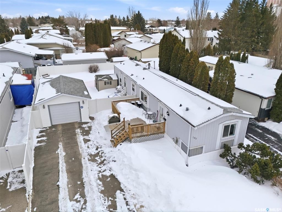Welcome to this beautifully maintained 1,120 sq. ft. bungalow-style mobile home, built in 1997 and ideally located on a quiet, mature crescent in Fairhaven. Offering 3 bedrooms and 2 bathrooms, this home delivers comfort, functionality, and thoughtful updates throughout.The spacious primary bedroom features a walk-in closet and a private 3-piece ensuite with updated walk-in shower (2025). Two additional bedrooms, a 4-piece main bathroom, and a dedicated laundry room with front-load washer and dryer. Enjoy open-concept living with a generous family room flowing seamlessly into the kitchen and dining area. The kitchen is highlighted by granite countertops, stainless steel appliances, and tiled backsplash. Meticulously cared for over the years, this home has seen numerous valuable updates, including: Shingles (2020), Split A/C unit (2018), Granite countertops in kitchen, stainless steel kitchen appliances, laminate flooring. Outside features include a single heated detached garage (14' x 22'), a large asphalt driveway plus additional crushed rock parking ideal for RV parking, trailers, utility vehicles, or extra off-street parking. Two storage sheds provide added functionality. Accessibility is thoughtfully incorporated with a wheelchair lift built into the front deck. The large, private yard is surrounded by updated vinyl fencing along majority of the perimeter, offering a secure and welcoming space perfect for families and pet lovers alike. Contact your Realtor today to book your private viewing.