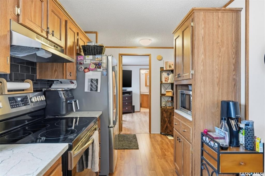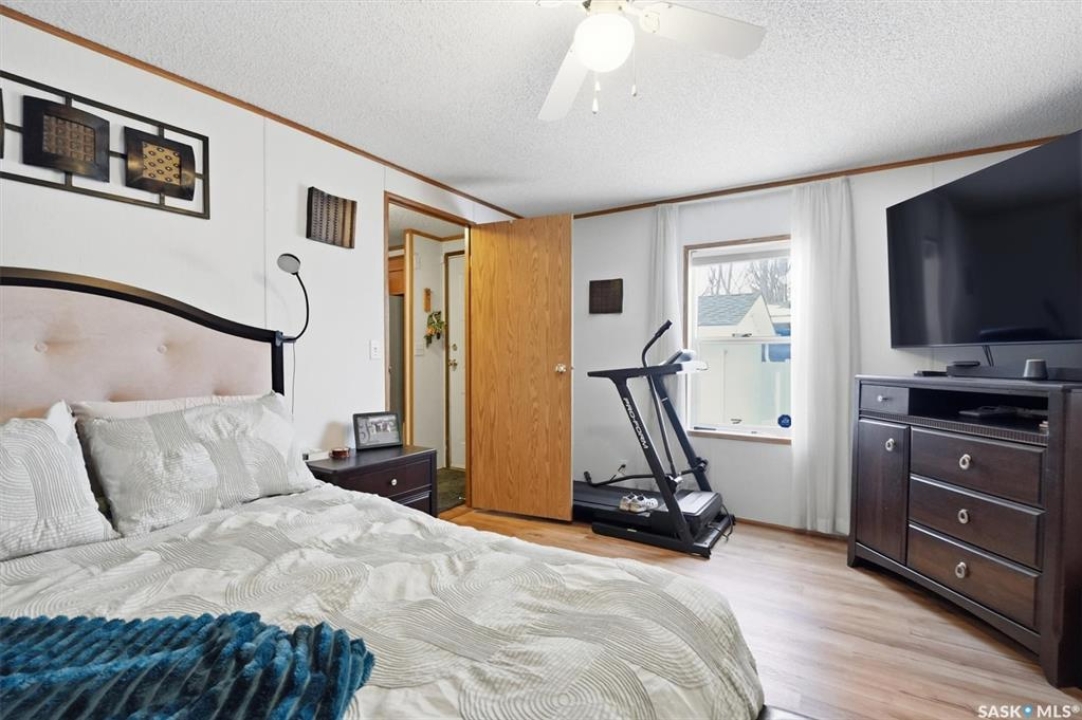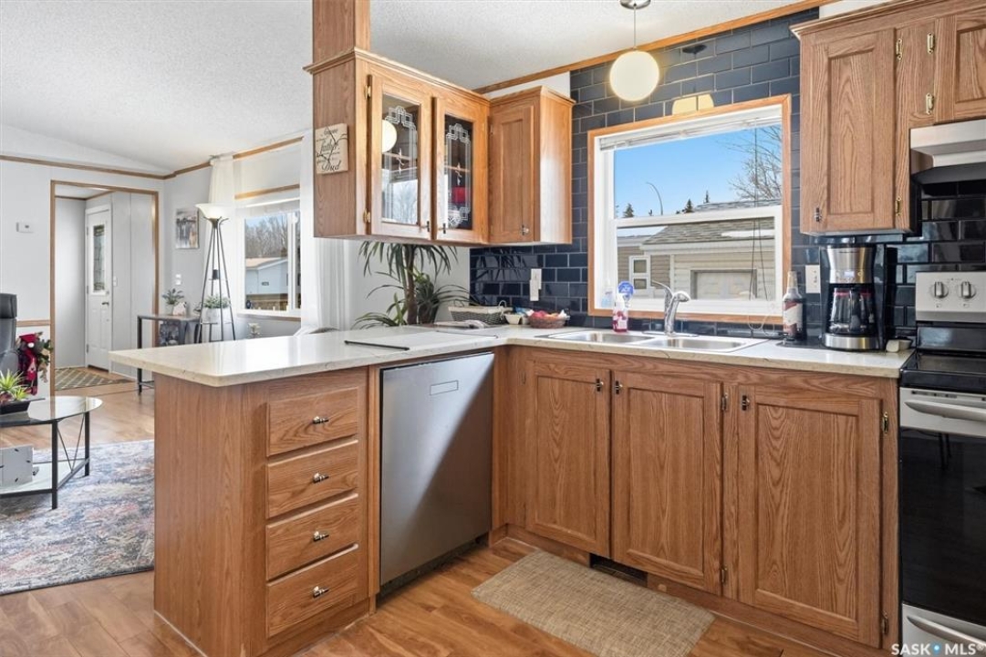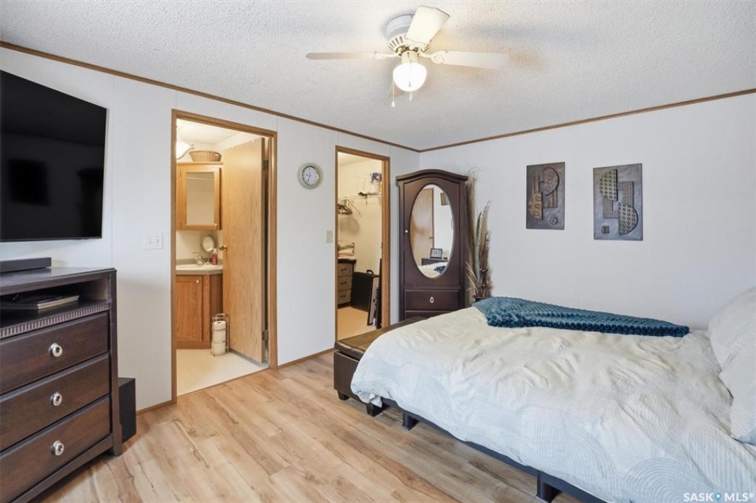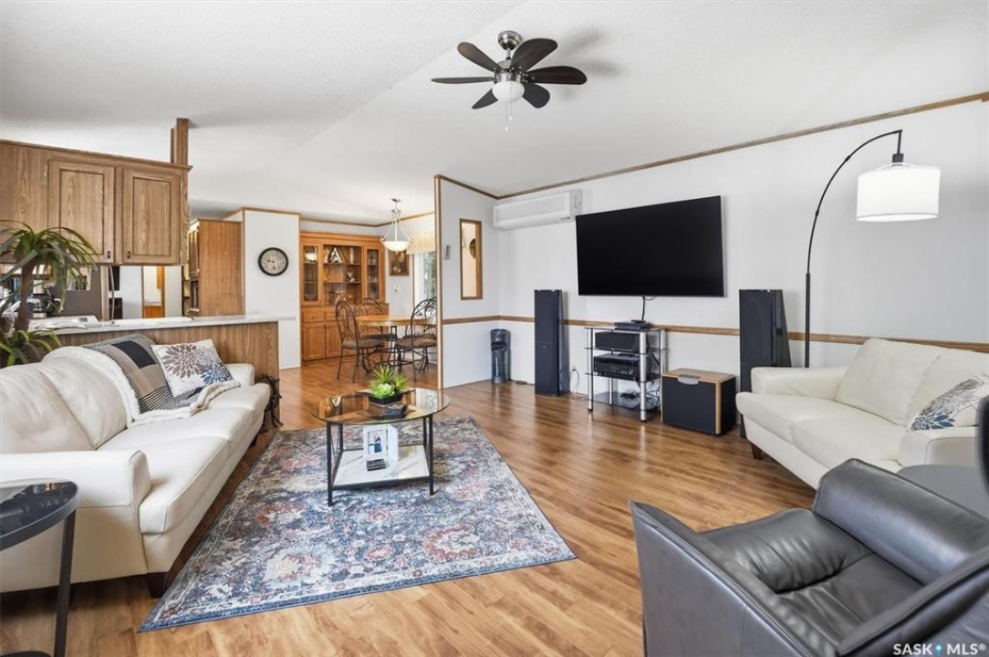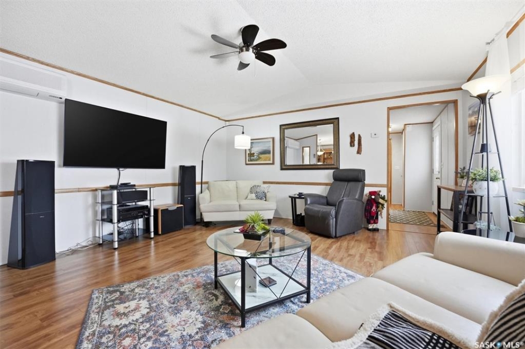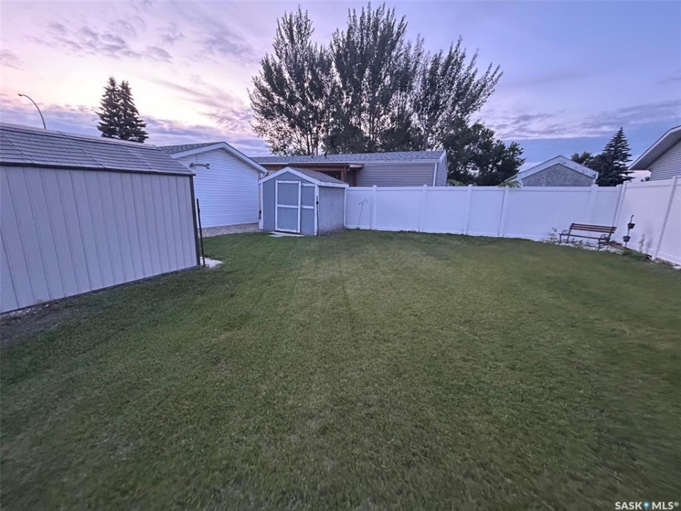 Welcome to this beautifully maintained 1,120 sq. ft. bungalow-style mobile home, built in 1997 and ideally located on a quiet, mature crescent in Fairhaven. Offering 3 bedrooms and 2 bathrooms, this home delivers comfort, functionality, and thoughtful updates throughout.The spacious primary bedroom features a walk-in closet and a private 3-piece ensuite with updated walk-in shower (2025). Two additional bedrooms, a 4-piece main bathroom, and a dedicated laundry room with front-load washer and dryer. Enjoy open-concept living with a generous family room flowing seamlessly into the kitchen and dining area. The kitchen is highlighted by granite countertops, stainless steel appliances, and tiled backsplash. Meticulously cared for over the years, this home has seen numerous valuable updates, including: Shingles (2020), Split A/C unit (2018), Granite countertops in kitchen, stainless steel kitchen appliances, laminate flooring. Outside features include a single heated detached garage (14' x 22'), a large asphalt driveway plus additional crushed rock parking ideal for RV parking, trailers, utility vehicles, or extra off-street parking. Two storage sheds provide added functionality. Accessibility is thoughtfully incorporated with a wheelchair lift built into the front deck. The large, private yard is surrounded by updated vinyl fencing along majority of the perimeter, offering a secure and welcoming space perfect for families and pet lovers alike. Contact your Realtor today to book your private viewing.