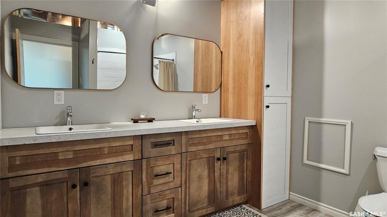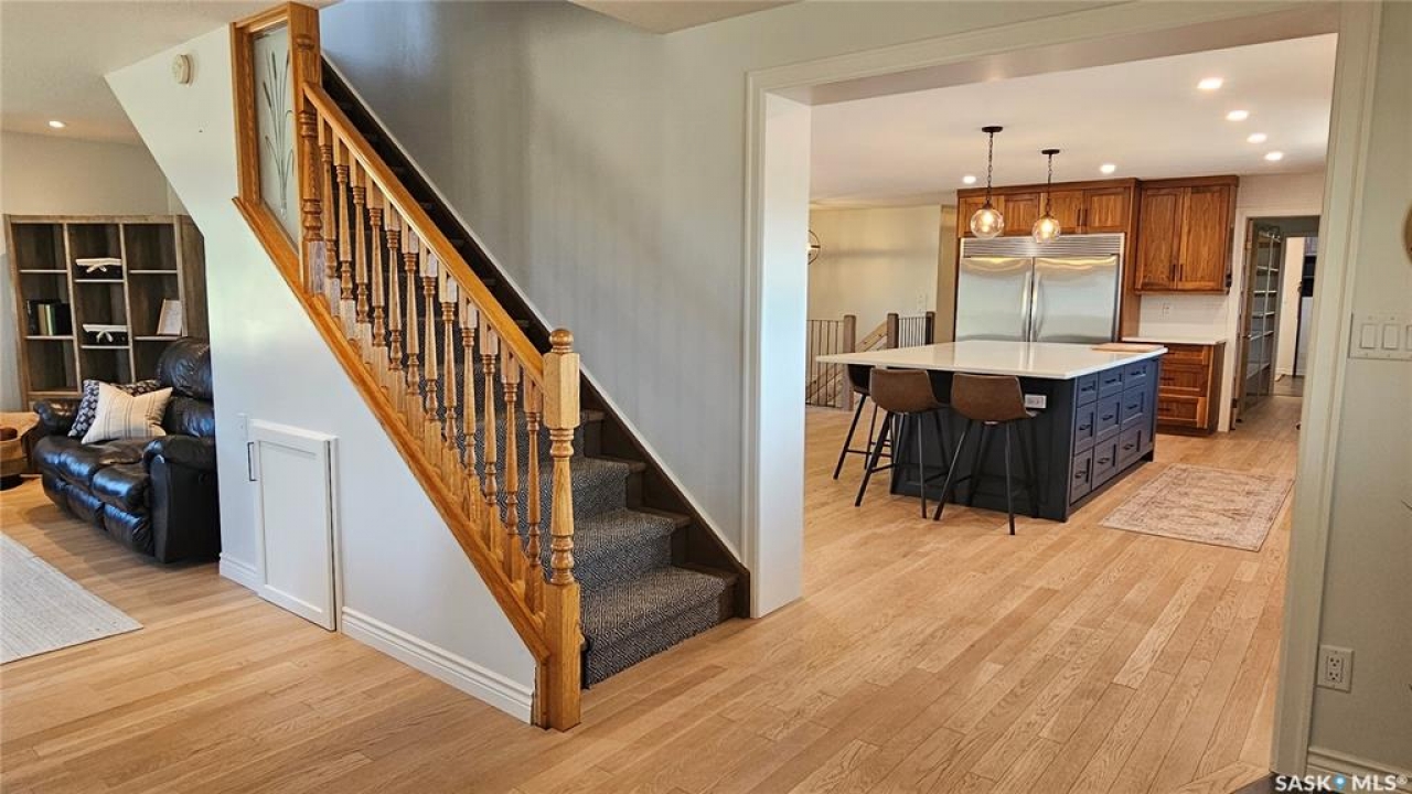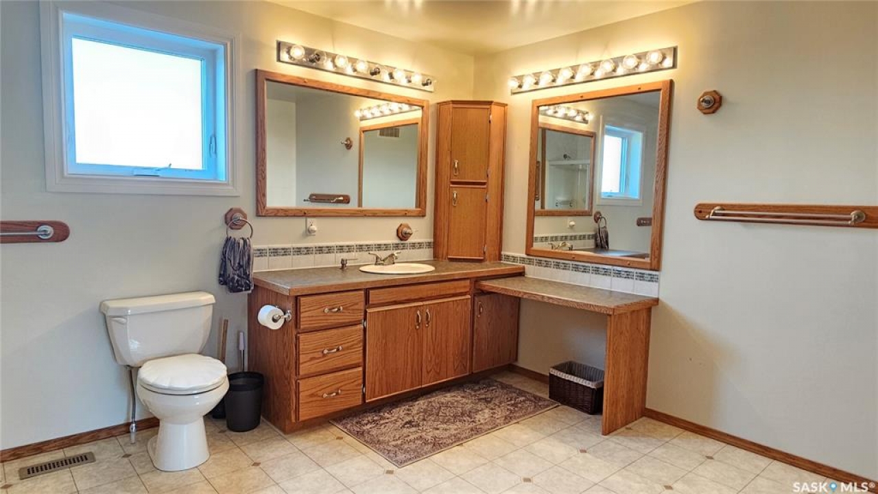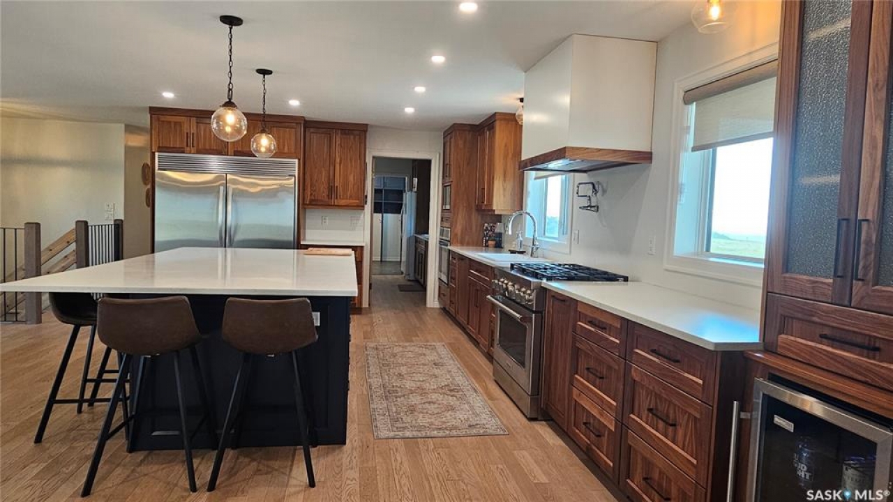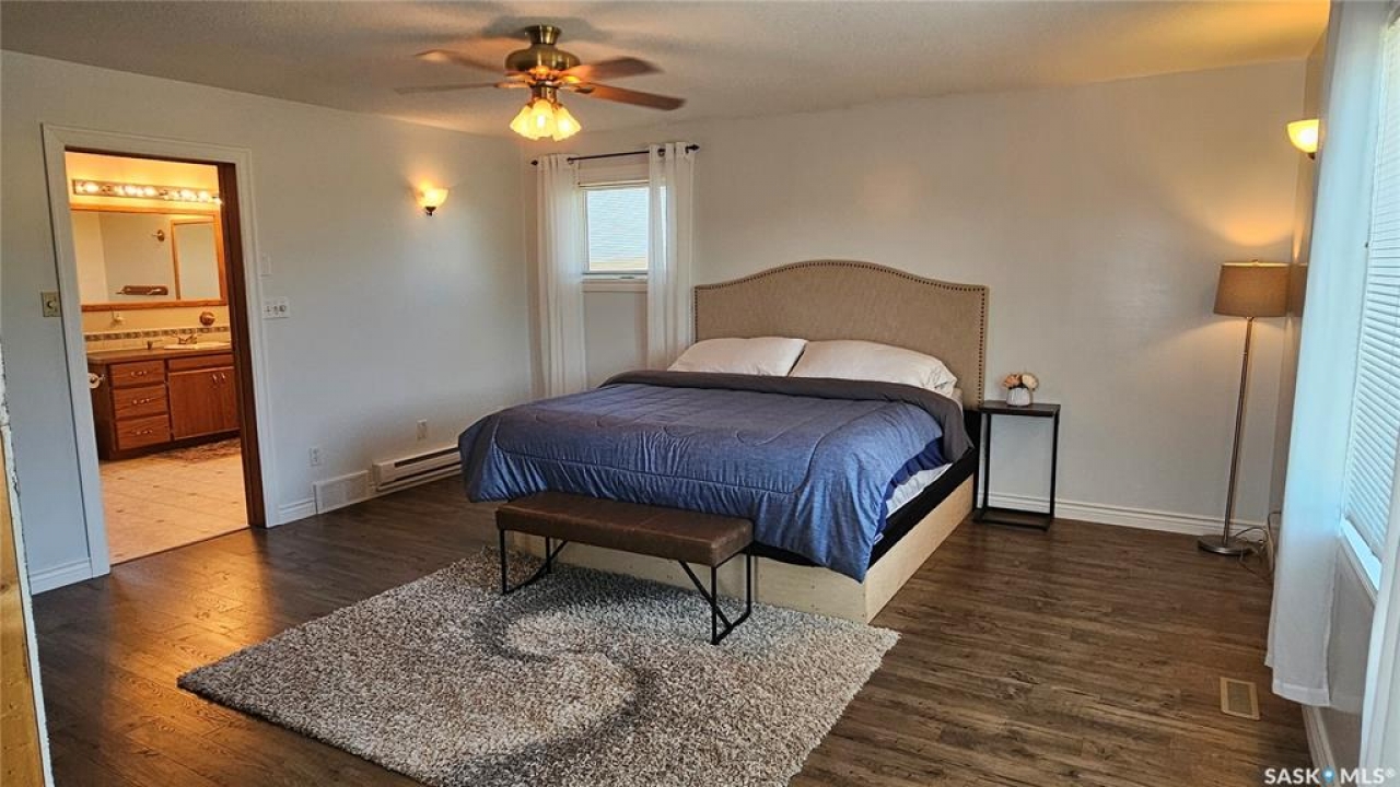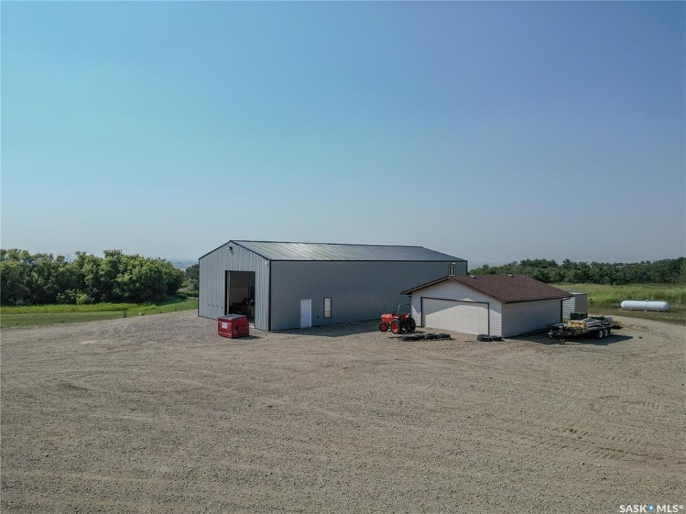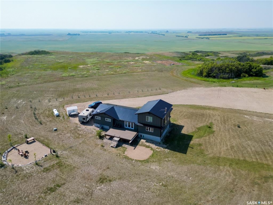 Welcome to Top of The Hill Quarter, a rare 160 acre opportunity just east of Duval, SK. If you've been dreaming about space, privacy, and a home that truly has it all, this is it. This fully updated two storey offers 2,216 sq.ft. of beautifully designed living space with 5 large bedrooms and 4 modern bathrooms. The kitchen is absolutely the heart of this home; a chef's dream with a huge island made for entertaining and a stunning butler's pantry complete with a second sink, freezer, and space for another dishwasher. It's functional, stylish, and perfect for busy families or hosting. The cozy living room features a wood burning fireplace that makes the whole space feel warm and inviting. Upstairs, the primary suite is your own private retreat with a gorgeous ensuite and a spacious walk in closet. Comfort and practicality were clearly top of mind here, heated floors in the basement and in the impressive 40' x 80' heated shop make Saskatchewan winters no problem. There's also a 24' x 24' heated garage/storage building for even more flexibility. The property is well set up with a reliable well, separate septic systems for the home and shop, and a dugout water system that keeps the yard lush and green. Portions of the land are currently rented out for agriculture, providing income potential, and there are gravel deposits on site, adding even more long term value. Located just 8 minutes to Strasbourg, 15 minutes to Last Mountain Lake, 25 minutes to Rowan's Ravine Provincial Park, and under an hour to Regina-you truly get the best of peaceful rural living with convenience close by. This property needs to be seen in person to fully appreciate everything it offers. Whether you're looking for a family acreage, a working property, or a smart investment, Top of The Hill Quarter delivers space, comfort, and opportunity all in one incredible package.