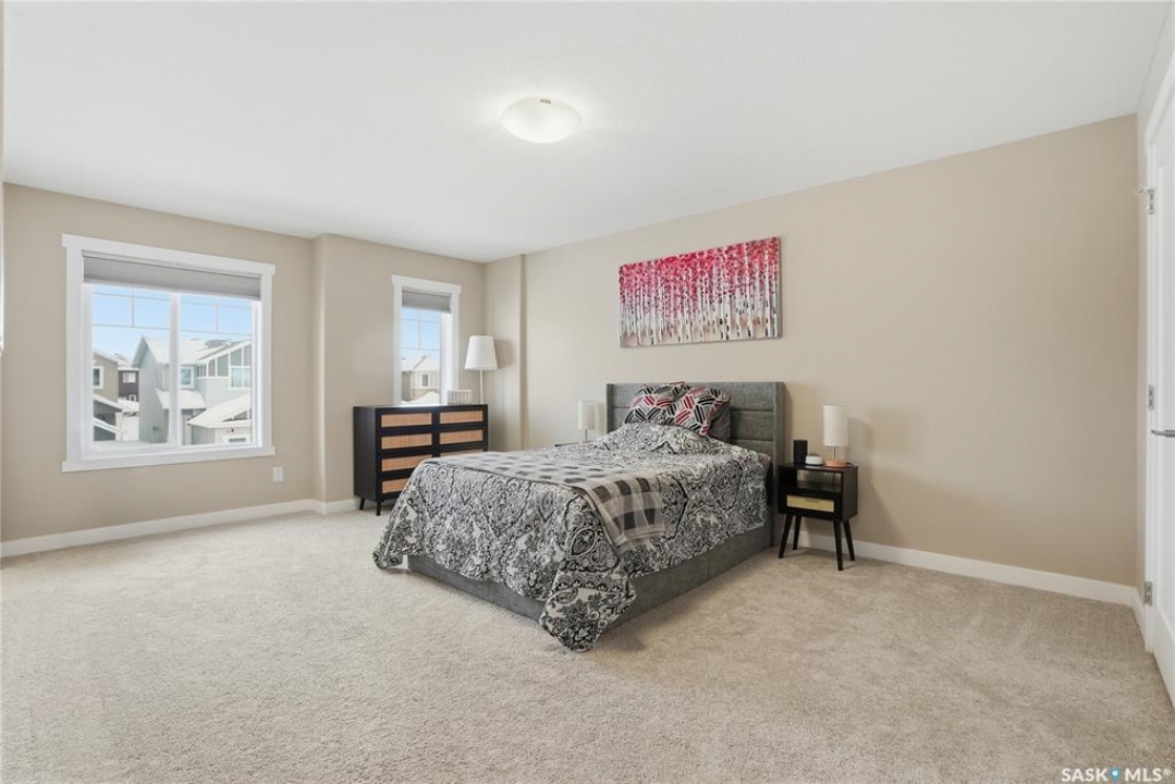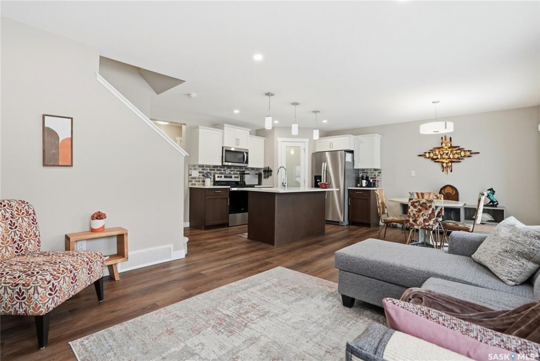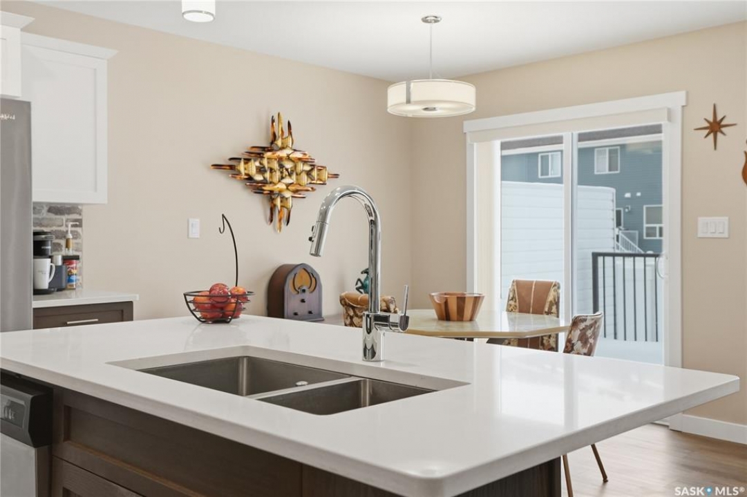 Welcome to this stunning, turn-key 1,489 sq. ft. semi-detached home offering luxury living in the heart of Brighton. Thoughtfully designed with both style and functionality in mind, the main floor features a sleek, practical kitchen complete with quartz countertops, walk-through pantry, and stainless steel appliances. The open-concept living room is perfect for entertaining, highlighted by a beautiful fireplace, along with a convenient 2-piece powder room. Upstairs, you'll find three spacious bedrooms, including a primary suite with a walk-in closet, two full bathrooms, a second-floor laundry room with additional storage, and a versatile bonus/flex room. Oversized windows throughout the home flood the space with an abundance of natural light. Additional features include central air conditioning, washer and dryer, and a front double attached garage, partially insulated. The property is fully landscaped with a fenced backyard, rear deck, and a double concrete driveway. Best of all—no condo fees! This gorgeous home truly has it all: quality craftsmanship, modern style, and a flawless layout. Located in Brighton—Saskatoon's fastest-growing neighbourhood—you'll enjoy close proximity to fantastic amenities including restaurants, convenience stores, Landmark Cinemas, Wilson's Greenhouse, Stoked Kitchen & Bar, Motion Fitness, Save-On-Foods, Shoppers Drug Mart, and more.