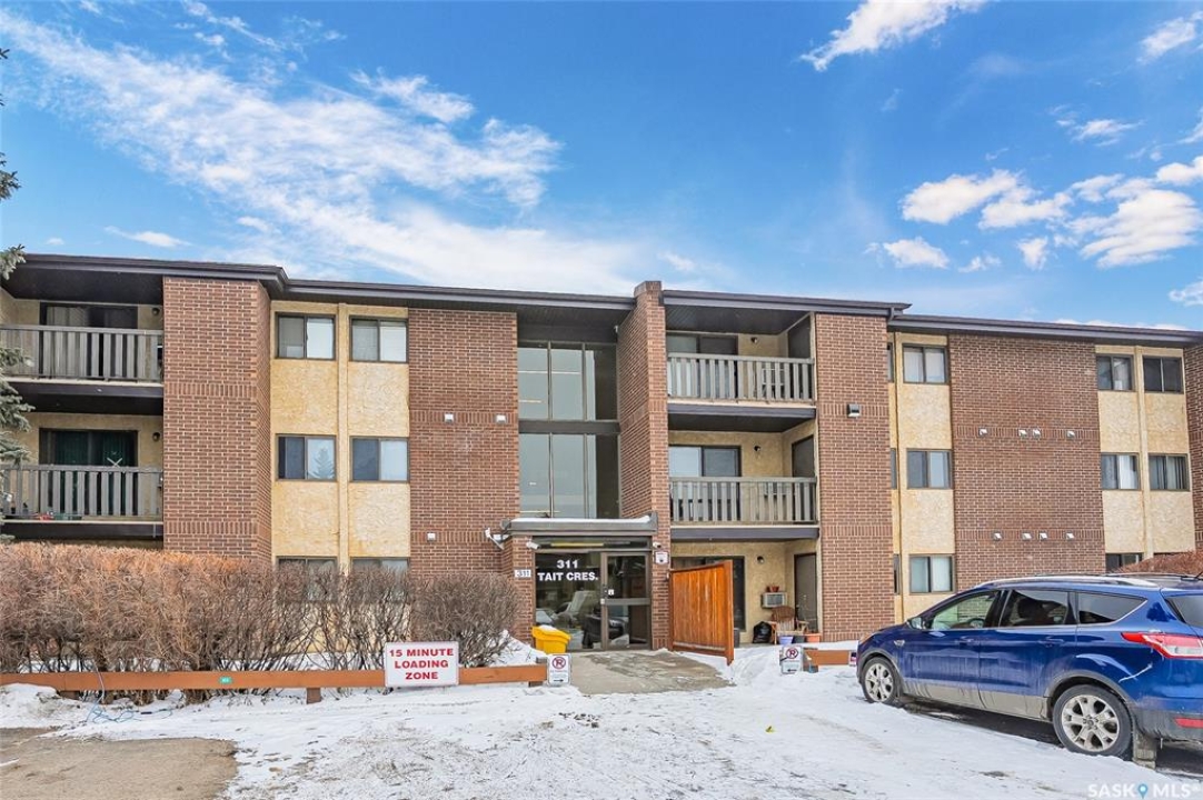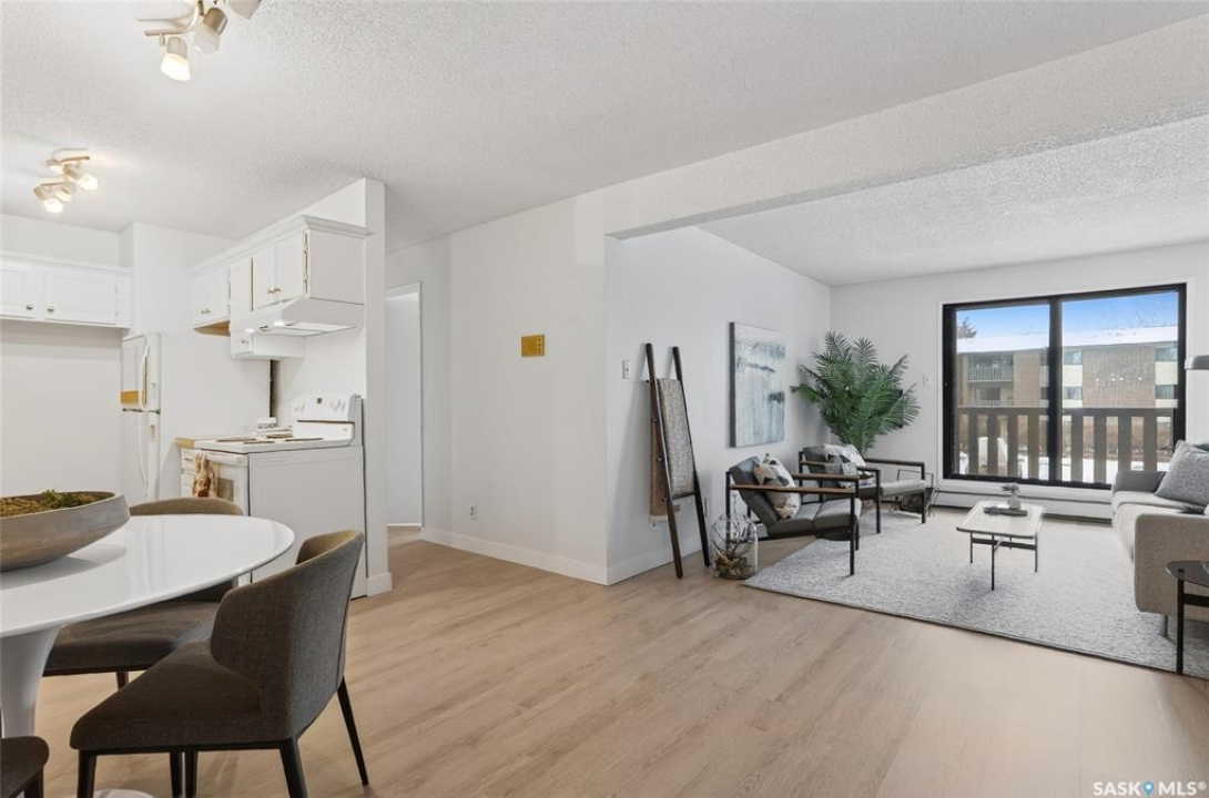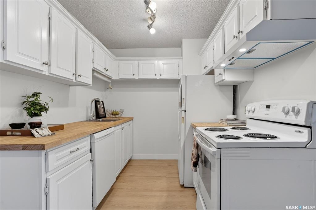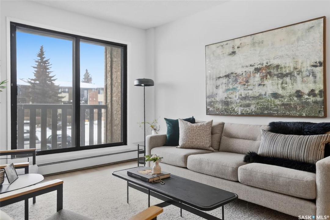 Your search ends here. This beautifully updated 2-bedroom condo offers modern style, smart design, and an affordable price point—perfect for students, first-time buyers, or savvy investors. Recently refreshed from top to bottom, the space features fresh paint in contemporary tones and durable new flooring that flows seamlessly throughout, creating a bright, open feel. The kitchen blends warmth and function with crisp white cabinetry, butcher block countertops, and a full appliance package—ready for everyday living or entertaining. With 831 sq ft of thoughtfully designed space, you'll find two generously sized bedrooms, a full 4-piece bathroom, and a dedicated laundry area that also provides valuable extra storage. Step outside onto your private balcony, where you'll appreciate convenient access to your exclusive parking stall—especially on those chilly winter mornings. Bonus: additional outdoor storage makes condo living even easier. Move-in ready and ideally located with quick access to public transit, 8th Street amenities, Centre Mall, and more. If you enjoy staying active, you'll love being steps from Wildwood Golf Course—perfect for a round of golf or peaceful daily walks. Why rent when you can own a stylish, updated home at an attainable price? This is the opportunity you've been waiting for.