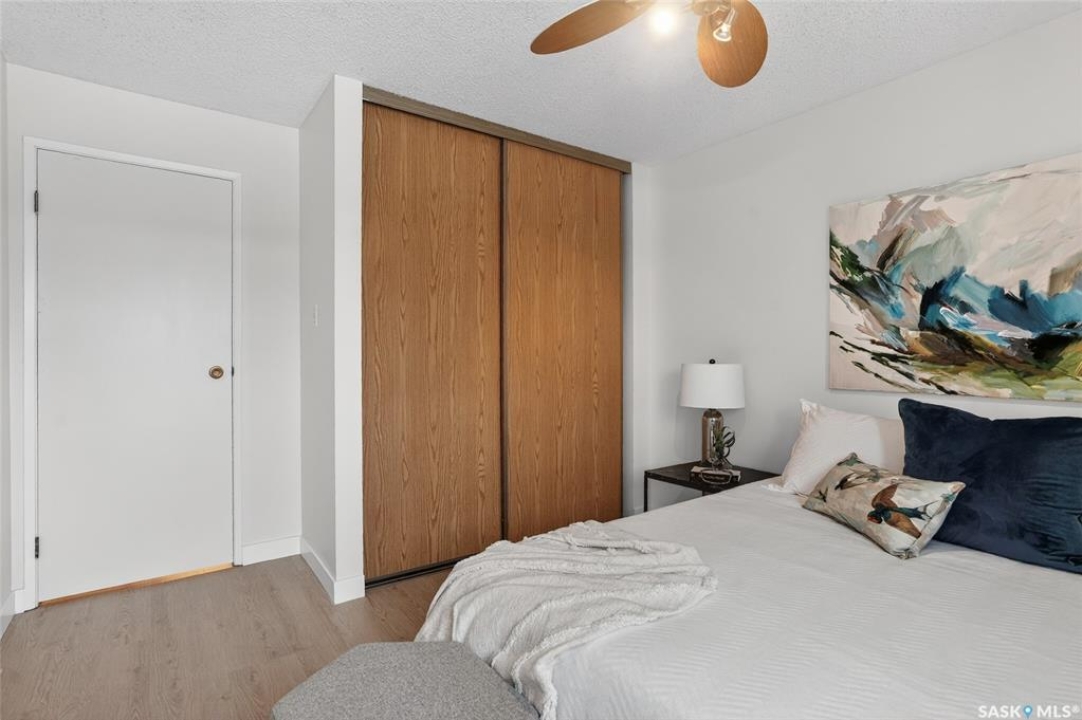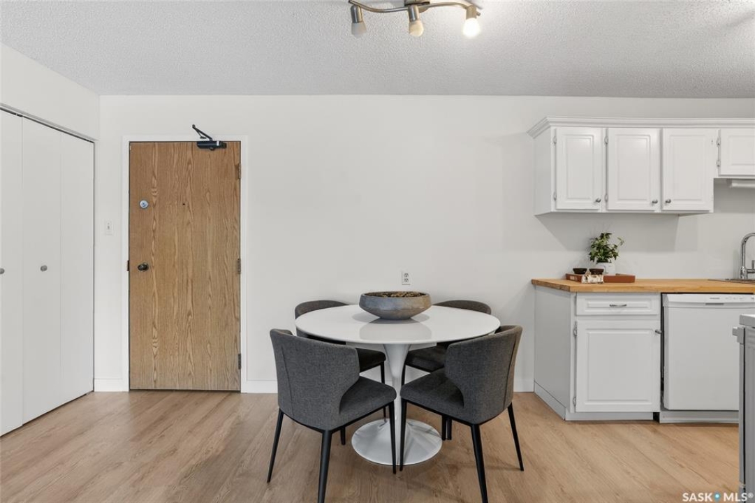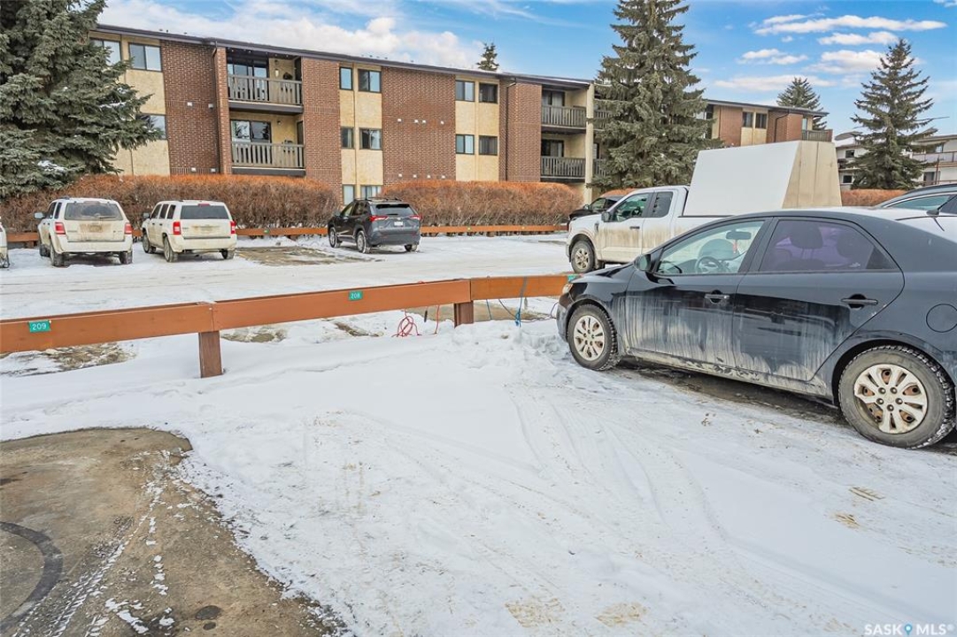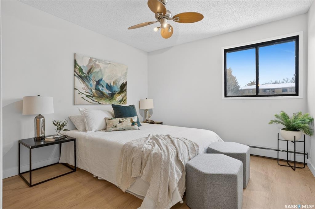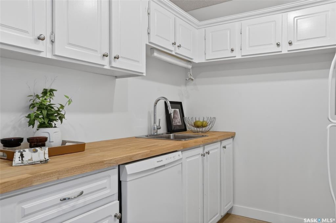 Your search ends here. This beautifully updated 2-bedroom condo offers modern style, smart design, and an affordable price point—perfect for students, first-time buyers, or savvy investors. Recently refreshed from top to bottom, the space features fresh paint in contemporary tones and durable new flooring that flows seamlessly throughout, creating a bright, open feel. The kitchen blends warmth and function with crisp white cabinetry, butcher block countertops, and a full appliance package—ready for everyday living or entertaining. With 831 sq ft of thoughtfully designed space, you'll find two generously sized bedrooms, a full 4-piece bathroom, and a dedicated laundry area that also provides valuable extra storage. Step outside onto your private balcony, where you'll appreciate convenient access to your exclusive parking stall—especially on those chilly winter mornings. Bonus: additional outdoor storage makes condo living even easier. Move-in ready and ideally located with quick access to public transit, 8th Street amenities, Centre Mall, and more. If you enjoy staying active, you'll love being steps from Wildwood Golf Course—perfect for a round of golf or peaceful daily walks. Why rent when you can own a stylish, updated home at an attainable price? This is the opportunity you've been waiting for.
