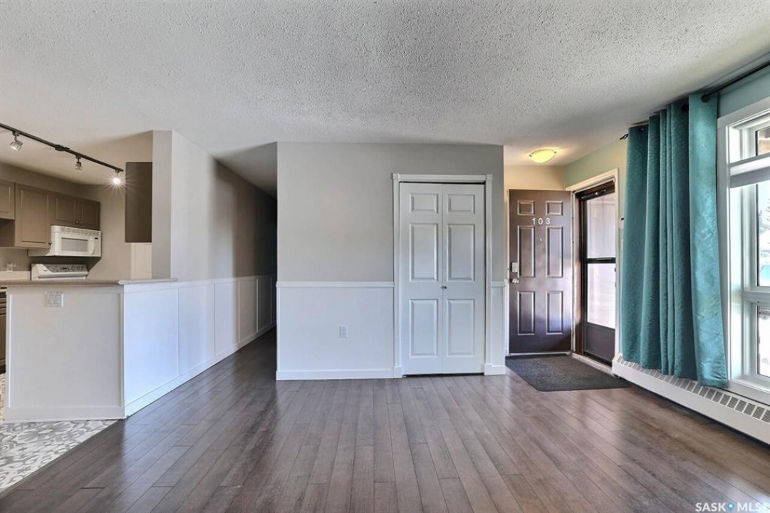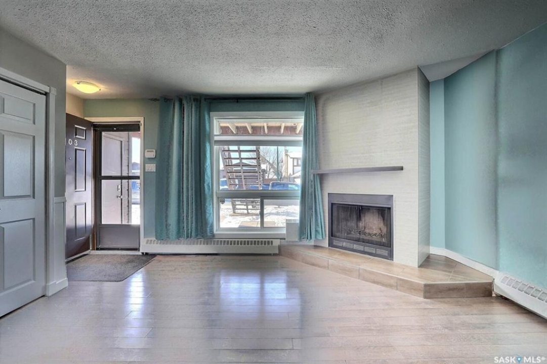 Welcome to Unit 103 at 2921 Harding Street — a beautifully maintained main floor, direct entry apartment that checks every box. This spacious 958 sq ft, 2-bedroom unit has been thoughtfully upgraded throughout the years and is truly move-in ready. From the moment you walk in, you'll notice the quality — upgraded flooring, modern cupboards, and updated windows that flood the space with natural light. The open layout makes the most of every square foot, while the generous storage throughout means a place for everything. The primary bedroom features a walk-in closet, and both bedrooms are a great size — perfect for a growing family, downsizers, or savvy investors. Cozy up by the wood burning fireplace on those cool evenings, or step out onto your south-facing patio and enjoy the sunshine all day long. Direct entry, main floor living with no stairs and no elevators — just the convenience and privacy you deserve.