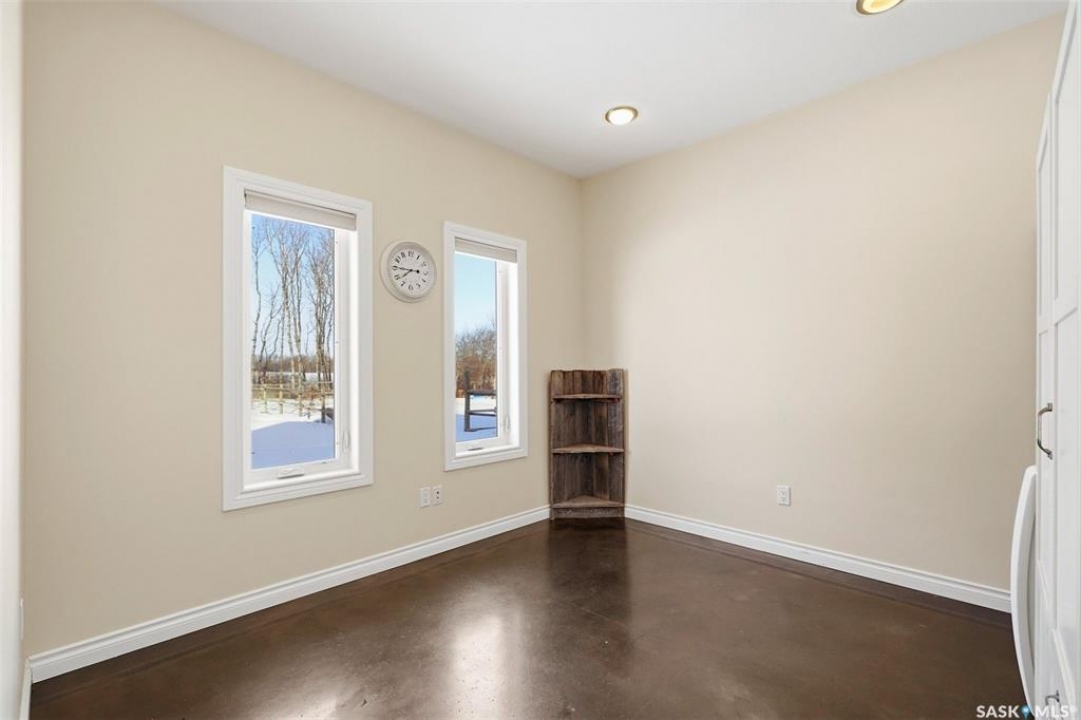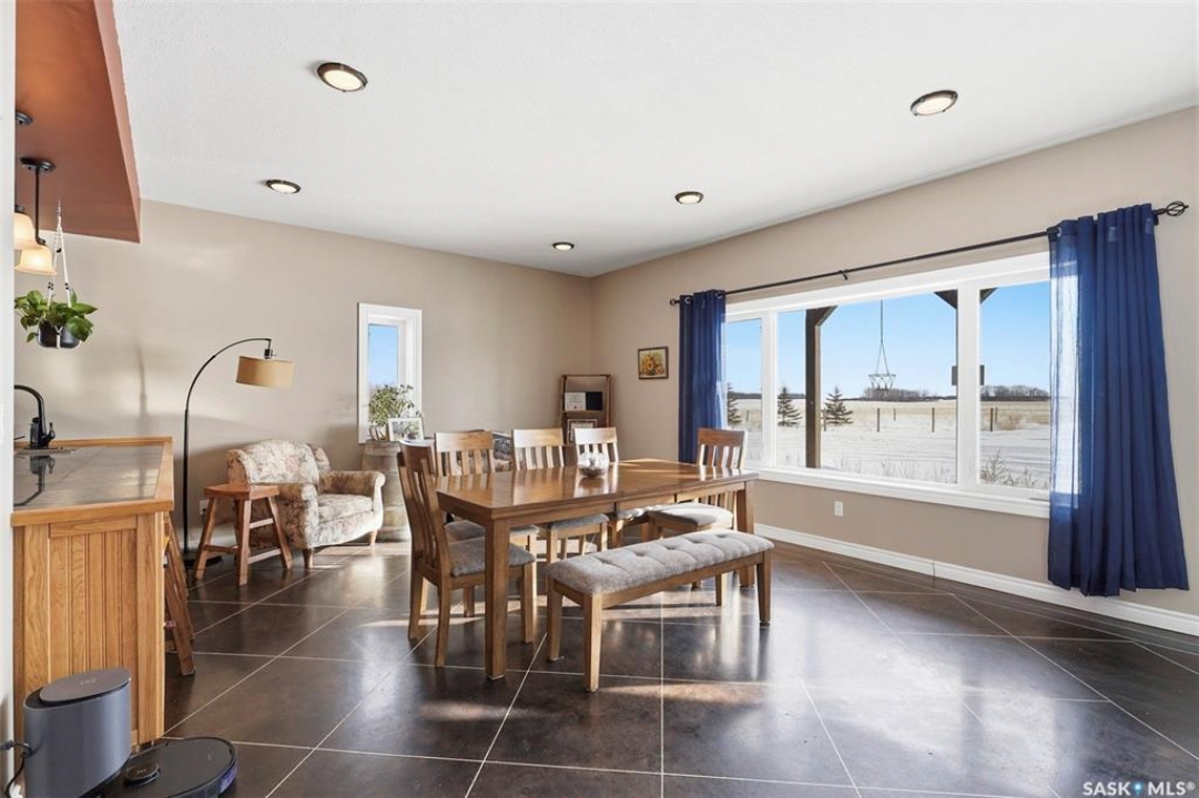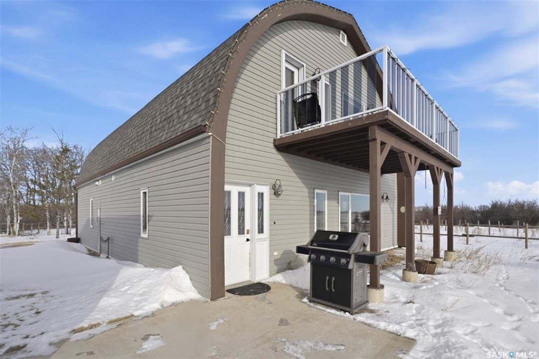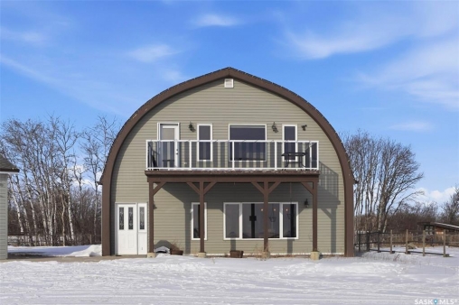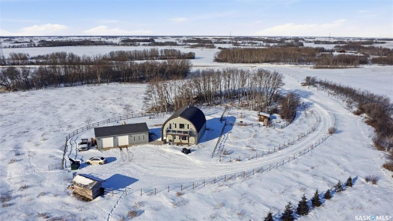 Located just 20 minutes outside of Saskatoon, this unique property offers 10 serene acres, 2 storey home and oversized garage. The house provides 2,400 sqft of living space on 2 floors, with 3 bedrooms and 2 baths. The main floor has polished concrete floors, a spacious kitchen with hickory cabinets and bar seating, and opens seamlessly to the oversized dining room with lots of space to host family and friends. The main floor also offers a bedroom and spacious 3pc bath. Heading upstairs you'll find an amazing living room with poplar wood ceilings and access to a balcony where you can enjoy the views! Two more spacious bedrooms and another 3 pc bath completes the second floor. The home features geothermal infloor heat, HRV system throughout, reverse osmosis water system with iron filter, as well as new roof/siding/windows in 2015. The oversized 24x44 detached garage is any mechanic's dream shop with infloor heating and room for all your projects! The property has a 1200gal septic with grey water pump out and 100ft bored well. If you're looking for the perfect acreage just minutes to the city, call your favourite realtor to view this property!