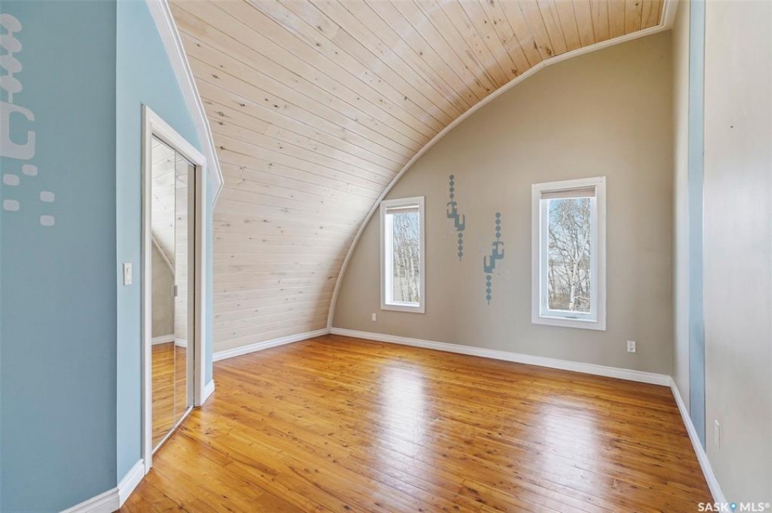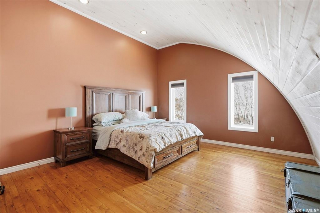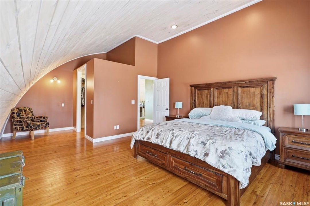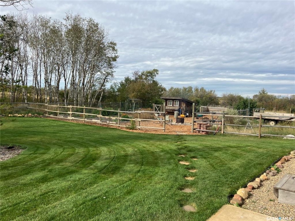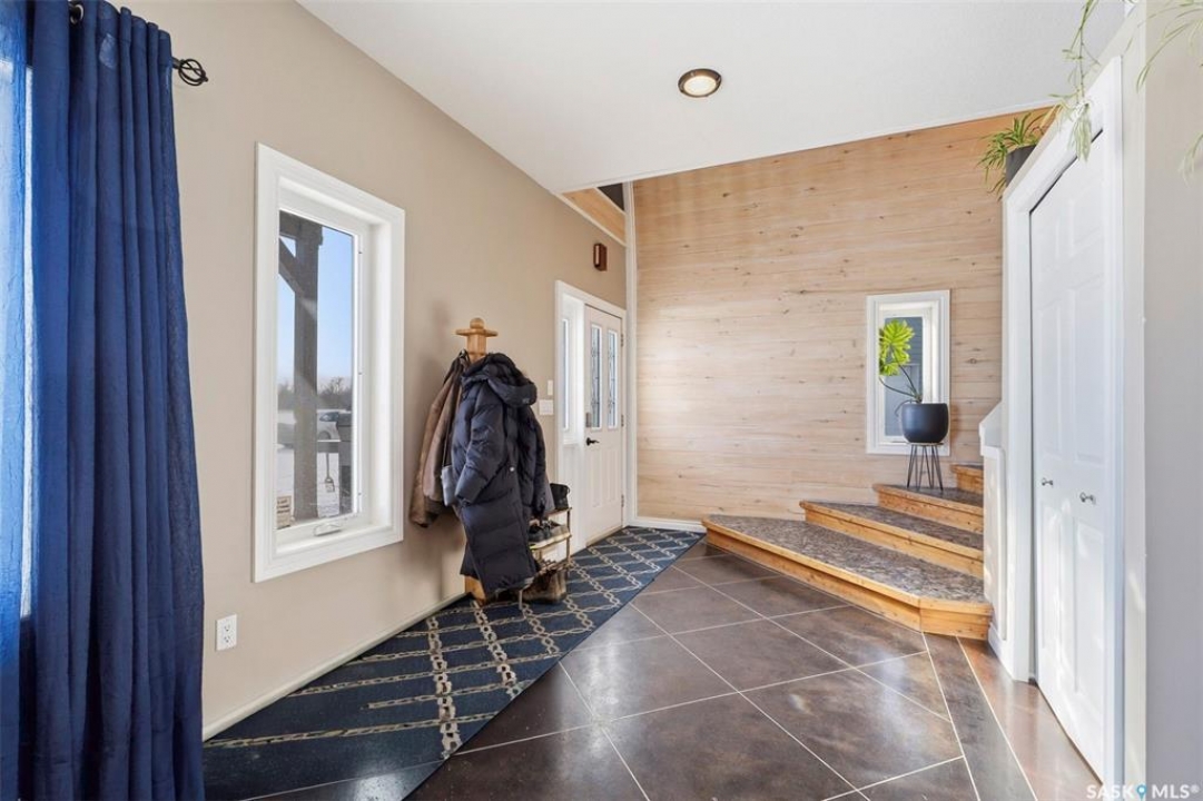 Located just 20 minutes outside of Saskatoon, this unique property offers 10 serene acres, 2 storey home and oversized garage. The house provides 2,400 sqft of living space on 2 floors, with 3 bedrooms and 2 baths. The main floor has polished concrete floors, a spacious kitchen with hickory cabinets and bar seating, and opens seamlessly to the oversized dining room with lots of space to host family and friends. The main floor also offers a bedroom and spacious 3pc bath. Heading upstairs you'll find an amazing living room with poplar wood ceilings and access to a balcony where you can enjoy the views! Two more spacious bedrooms and another 3 pc bath completes the second floor. The home features geothermal infloor heat, HRV system throughout, reverse osmosis water system with iron filter, as well as new roof/siding/windows in 2015. The oversized 24x44 detached garage is any mechanic's dream shop with infloor heating and room for all your projects! The property has a 1200gal septic with grey water pump out and 100ft bored well. If you're looking for the perfect acreage just minutes to the city, call your favourite realtor to view this property!