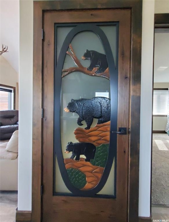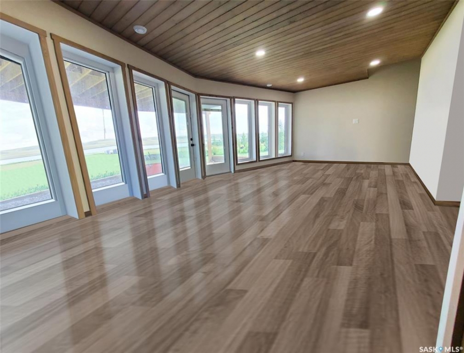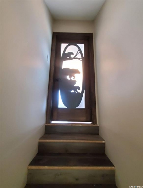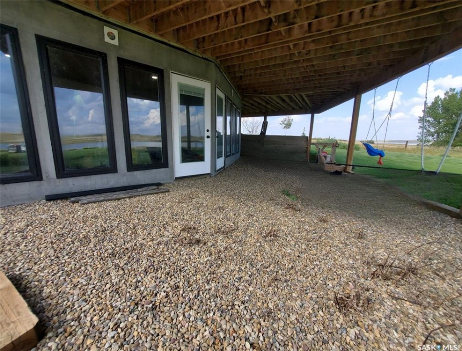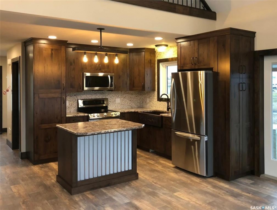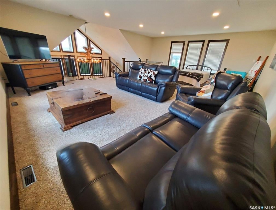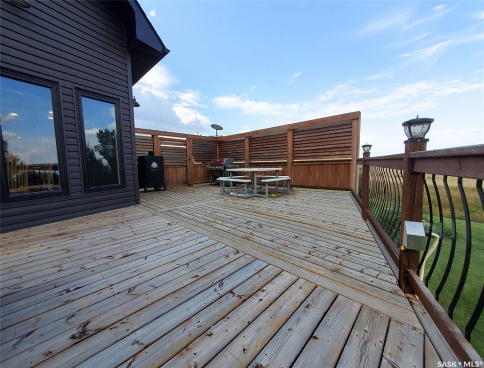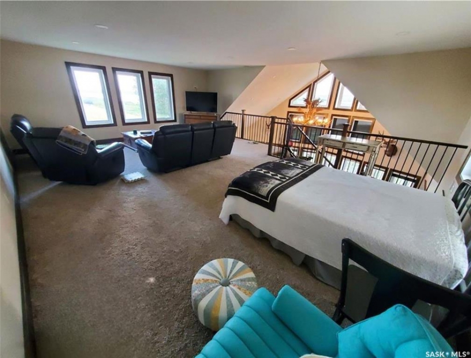 This deeded, 4-season lake property is located on a large, beautiful waterfront lot just under an hour's drive from Swift Current and was built in 2018. The home features luxury finishes and a functional layout designed for year-round enjoyment. Coming in through the back entrance where there is ample parking behind, this entry features a large storage closet and a galvanized tin feature wall with multiple coat hooks for easy organization options. The short hallway ahead leads into an open concept kitchen, dining and living area with gorgeous vaulted ceilings that showcase vertical windows spread all the way up the east side, providing abundant natural light and water views for enjoyment. The kitchen features ample warm, alder wood cabinetry, modern industrial accents and finishes and a large, stunning copper sink. Vinyl plank flooring runs throughout the entirety of the main space, and a grand antler chandelier makes a great statement. This area comes fully-furnished with both living and dining room furniture. Patio doors off the dining area open out to the expansive deck with both north and south privacy/windbreaker walls. The main floor also hosts the large primary bedroom with a spacious closet, as well as a 4-piece bath which displays an elegant copper sink. The comfortable loft serves as a great family room or kid's zone and looks down to the main area of the home. Downstairs, the walk-out basement hosts another large space with vinyl plank flooring, wood ceilings, pot lights, and garden doors leading out to the massive yard space. Nearby you will find under-the-stairs storage, the utility room, the laundry closet with a dual washer/dryer with a nook beside it, and there are 2 comfortable bedrooms across from one another with a 3-piece bathroom resting at the end of the hall. This bathroom features a shiplap feature wall & ceiling, a tiled shower, and a closet. Don't hesitate to call or text for more info or to book a showing for this stunning property.