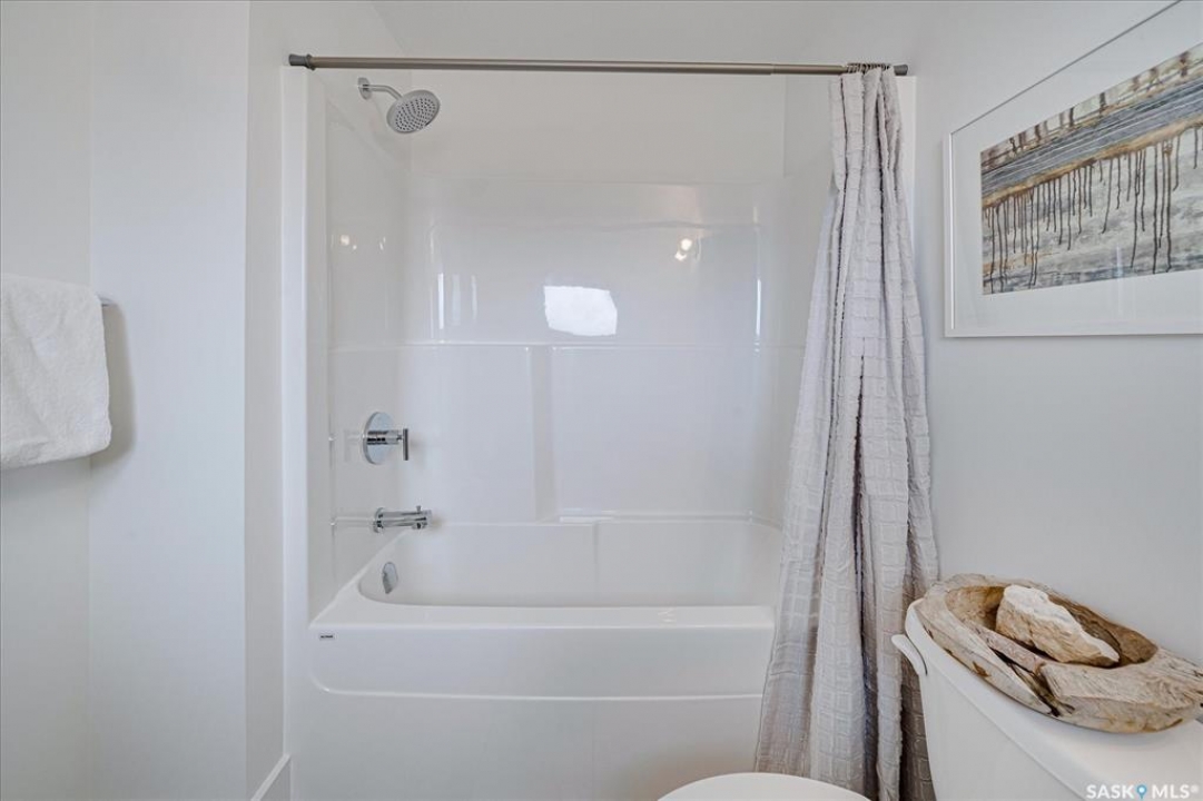 Welcome to Hudson Row 3, Saskatoon's newest townhome project located in The Meadows at Rosewood. This Scandinavian inspired streetscape will create an unmatched timeless curb appeal that is sure to catch people's eye. The 1461 SF open concept interior includes all the premium designer finishes people have come to expect with Arbutus Properties. The main floor includes an efficient layout with large front and back windows that flood the space with natural light and is covered by premium flooring. The centrally located chef's kitchen includes trendy flat panel cabinetry highlighted with matt black hardware, quartz counters, stylish backsplash and a full stainless appliance package. The upper floor includes 3 generously sized bedrooms, 4pc bathroom, a convenient flex space that was designed to cater to a variety of uses and an easy to access laundry closet. Also on the upper floor is the master bedroom that includes a walk-in closet and a private ensuite. The exterior of the home is covered in durable James Hardie composite siding and comes inclusive with private fenced landscaped yards, a rear deck & a double detached garage at the rear. Located near multiple parks, commercial amenities, Costco and within a block from 2 new community schools makes this a must see! "Disclaimer, all cabinets in these units will be flat white , floor tiles will be grey, backsplash is white, AI generated kitchen showing example with Island, but cabinets will be flat panel, picture in listing showing colour patterns! Contact Agent for more information. Garages can not be done until June when frost is all out. Pictures are from our last showhome.