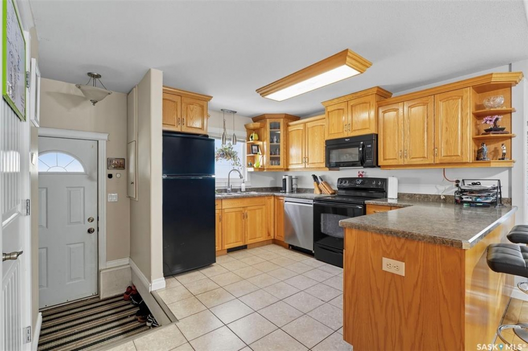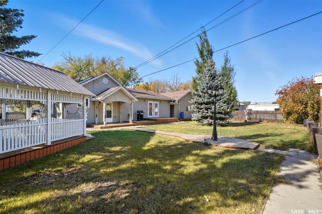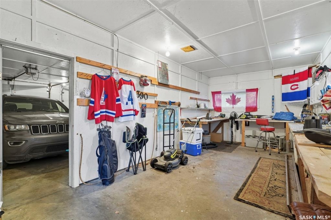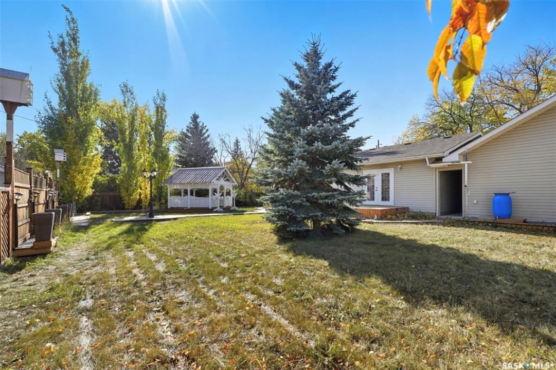 Enjoy quiet, small town living in this bungalow situated on a massive lot in Radisson! This spacious home offer over 1,500sqft with a bright and inviting living room, large oak kitchen and adjoining dining room. The primary bedroom has plenty of space for your furniture and includes a walk-in closet and 3 pc ensuite, as well as garden doors to the patio. Two additional bedrooms, a full bath and laundry complete the main floor. The basement has room for all your family's needs - whether that's play space, rec room or family room for movie nights - as well as lots of storage and a 2pc bath. The double attached garage is 24x36 with a built-in workshop at the end, and an additional detached 14x20 garage. Outside you'll love all the space this peaceful property provides, with an expansive deck, gazebo and garden area, and mature landscaping. Give your favourite realtor a call to set up your showing!