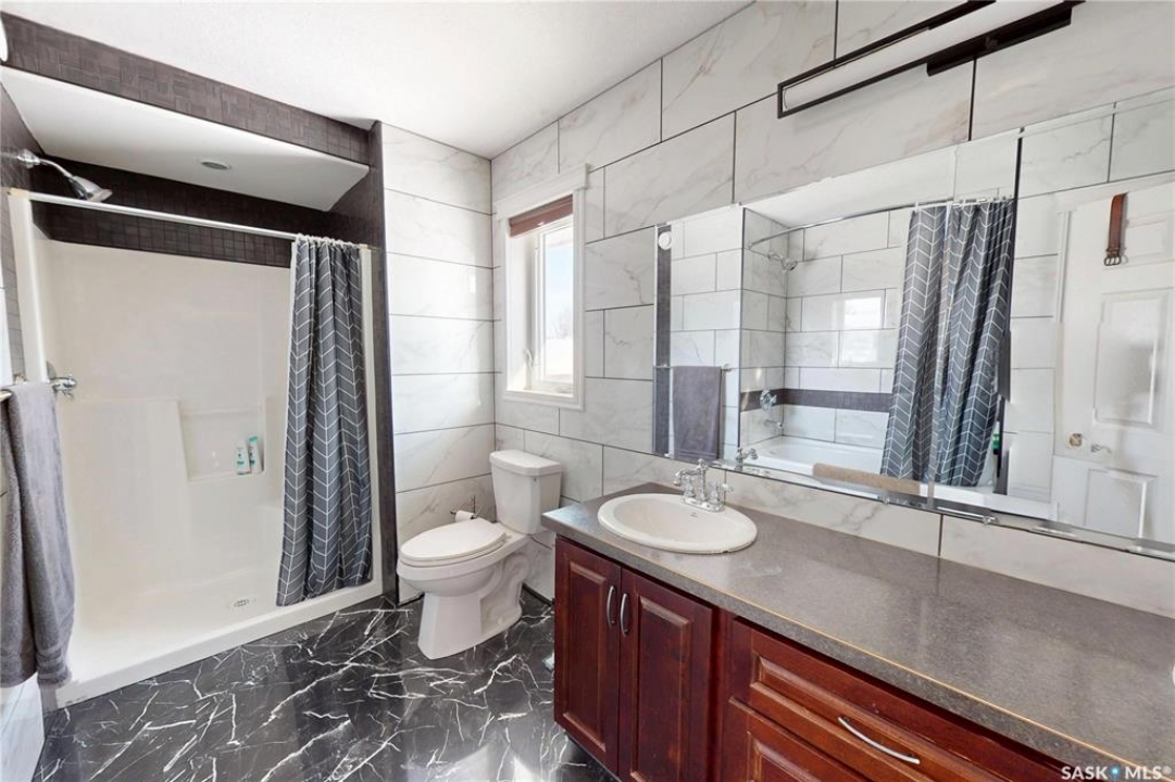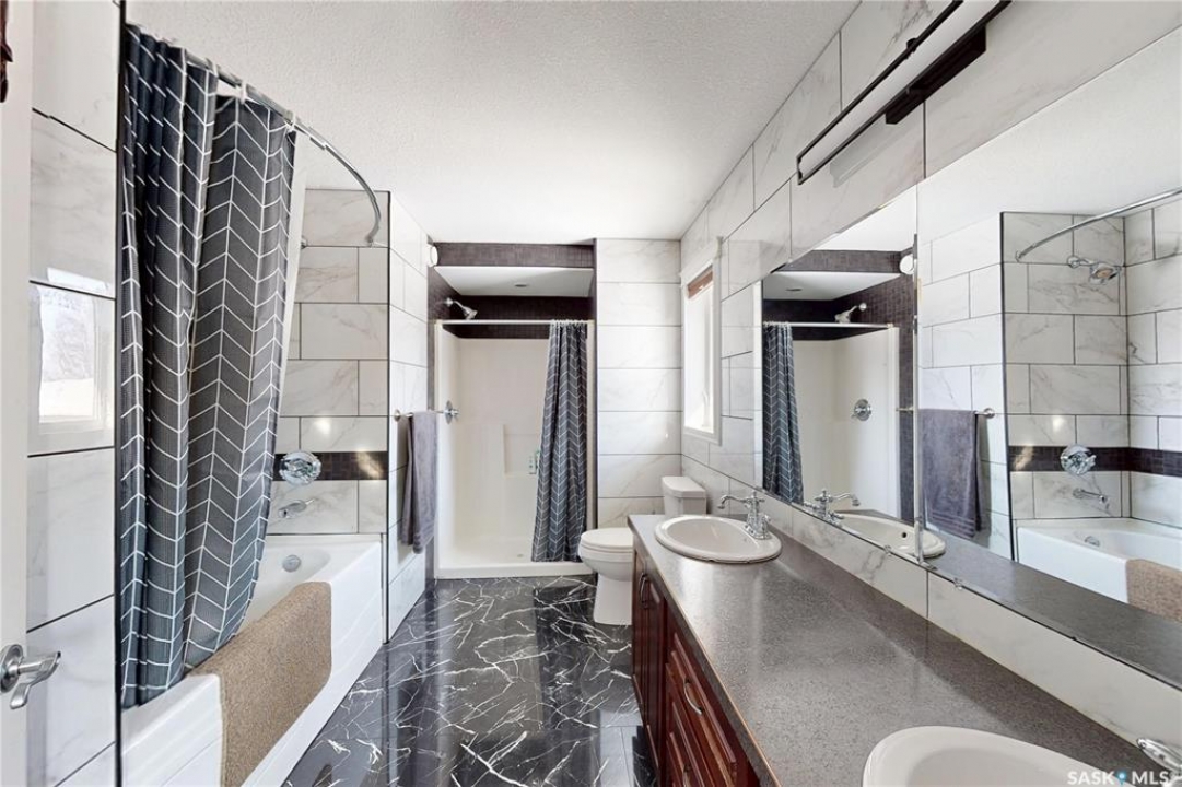 a BEAUTIFUL move-in ready home built in 2008! This lovely home has SO much to offer — 1620 SQFT, large primary bedroom, fenced backyard, vaulted ceiling, double attached garage, A QUIET STREET…just so many great features! Not 3, not 4, but FIVE bedrooms total (one is currently being used as an office), 3 full bathrooms (all with tiled walls/shower/tubs), and a fully finished basement! The main floor offers a good sized living room with plenty of natural light and an electric fireplace, kitchen with dark cabinetry & walk-in pantry, dining space with access to the backyard, a 4pc bath down the hall plus a laundry/mudroom, 2 bedrooms and a primary bedroom with a 5pc ensuite (2 showers!) + walk-in closet. A gorgeous bannister and a striking spiral staircase leads to the basement where you'll be pleased to find a HUGE 2nd living room/rec room [plenty of space for the kiddos to run], TWO more bedrooms, a 4pc bath, and the utility room. DOUBLE CAR GARAGE & PAVED DRIVEWAY. In a desirable, tight-knit neighbourhood just a few blocks from the schools! PRICED AT $575,000! Don't miss out on this move-in ready home in a GREAT LOCATION! Click the virtual tour link to have an online look inside the home.