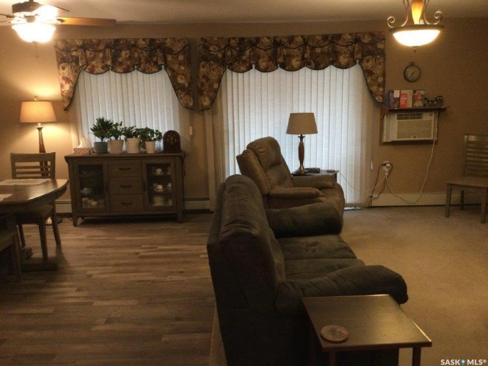 Welcome to this three bedroom condo located in Wheatland Place. The condo is located just a block from Main Street with a grocery store located beside you. Good size entrance with closet that opens to the kitchen and living/dining room with entrance to the closed-in deck that is wheelchair accessible. Good size laundry room off kitchen. 3 bedrooms are down the hall and a 4-piece bathroom. The primary bedroom has a 3-piece with walk in shower and extra storage cabinets. Features: 3 bedrooms, 2 bath condo located 1 block from Main Street. There is a closed in 3 season sunroom for enjoying the outdoors. There is a good size utility room with in unit laundry. Wheelchair accessible condo. Improvements: fridge, dishwasher, washer & dryer. Taps and faucets throughout. Vinyl plank flooring, some lighting updated, primary bath toilet updated and water shut offs replaced as well. Window treatments included. There is 1 heated underground parking stall. There is a shared room that can be booked out for larger gatherings. Call today to book your tour of this condo.