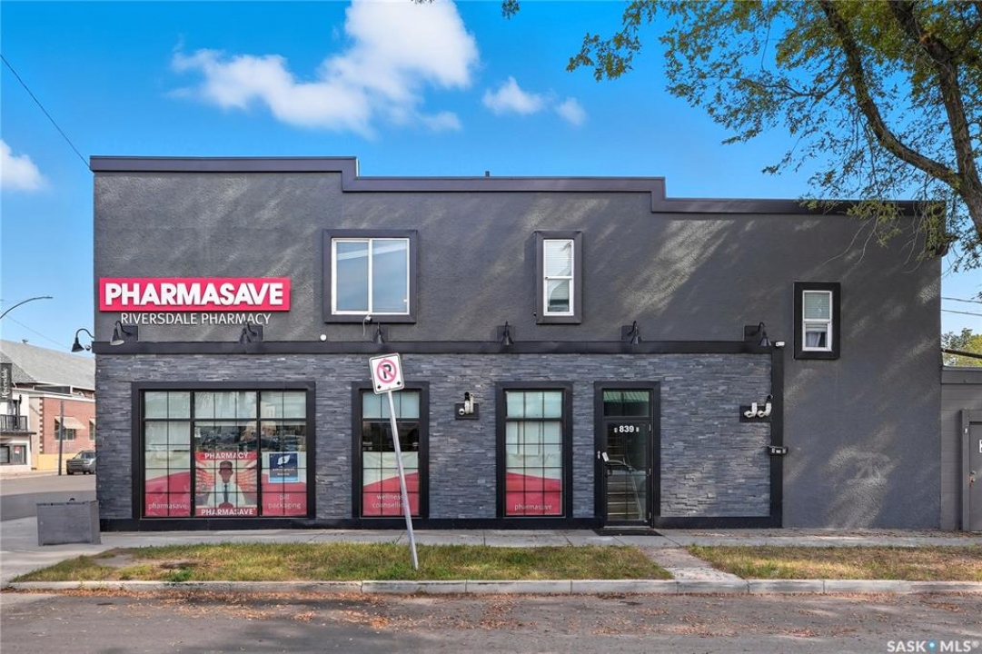 Rare, renovated commercial building for sale at 839 20th St, Saskatoon! Welcome to this fully leased and occupied profitable building with mixed commercial and residential use. This turn key building has gone through extensive recent renovations including but not limited to entire roof, exterior, fixtures, commercial exterior glass and windows, doors, heating, plumbing and mechanical systems. Mixed use offers: front main floor anchor pharmacy tenant with long standing lease in place, back establishment locked in long term lease and two 2nd floor suites rented as residential (with leases) Suites are charming and have 3 and 2 bedrooms, and individual in suite laundry. Don't miss out on this investment, currently providing a strong positive return!