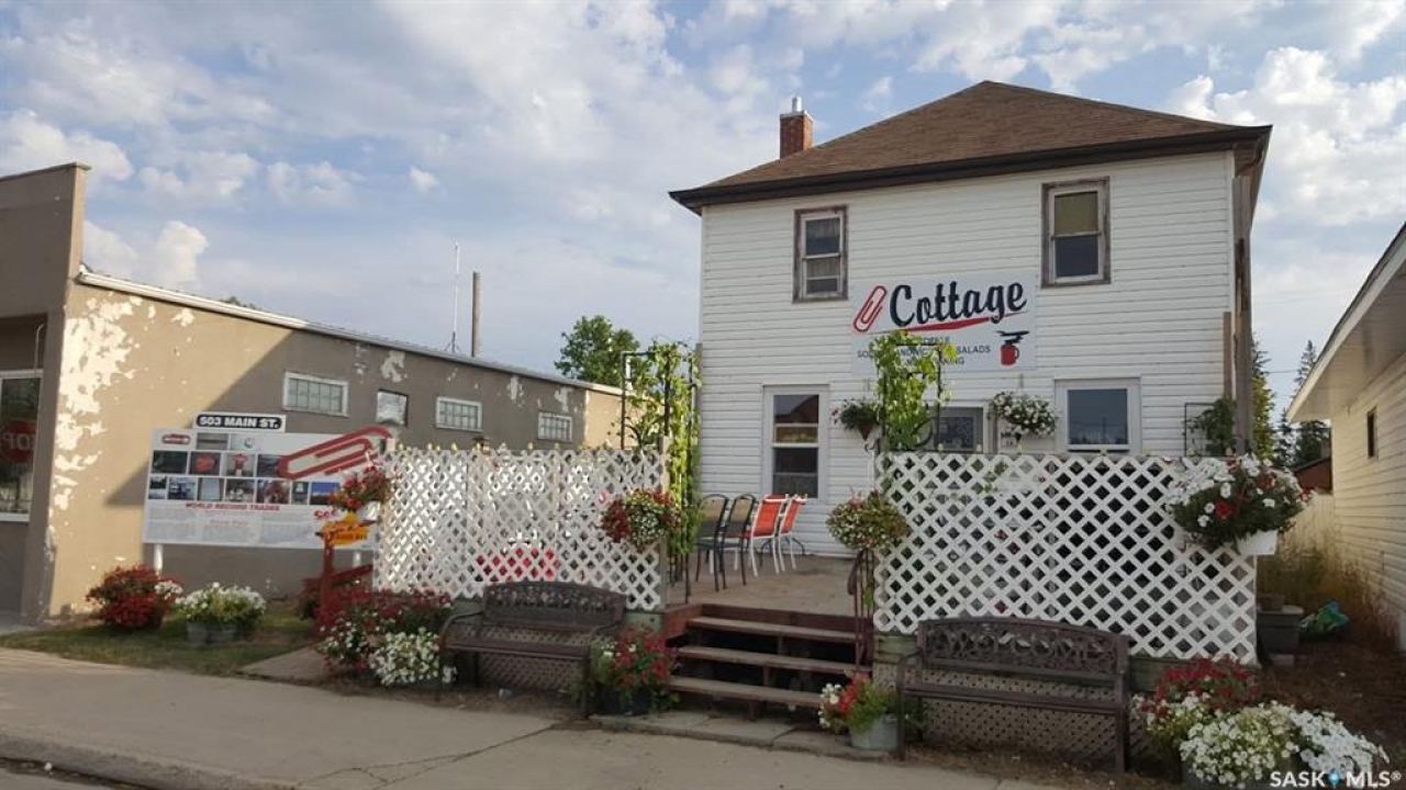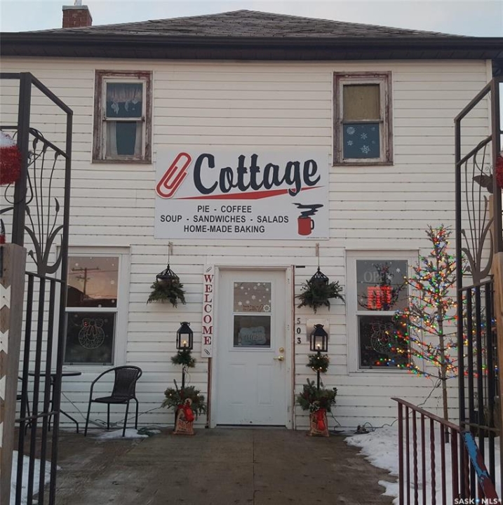 Paperclip Cottage - 503 Main Street | Kipling, SK. Commercial Property | Turnkey Café Opportunity | Landmark Location. Rare opportunity to own one of Saskatchewan's most recognizable small-town landmarks — the historic Paperclip Cottage in the heart of Kipling. This charming two-storey character property is currently operating as the well-established Paperclip Cottage Cafe & Bakery, known for its homemade baking, fresh soups, sandwiches, unbelievable desserts, and welcoming atmosphere. Situated in a prime Main Street location, this charming two-storey character building offers outstanding visibility and curb appeal in the heart of town. The main floor is thoughtfully configured for café or restaurant service, complete with a functional commercial kitchen setup and an inviting dine-in area that has cultivated a strong and loyal local following. Upstairs, you'll find additional dining rooms that provide flexible seating options for private functions, overflow service, or creative reconfiguration. The paper clip cottage cafe & bakery creates a warm and memorable atmosphere for guests. Additional seasonal dining is offered through the large outdoor deck, providing an inviting space for guests to enjoy warm weather, open-air seating, and a relaxed atmosphere during the spring and summer months. In addition to steady community support, the property benefits from excellent tourism draw, making it a distinctive and versatile opportunity for hospitality or retail entrepreneurs. The current owner operates not only the café and bakery from this location, but also offers catering, take-out services, and a grocery service — creating multiple established revenue streams. The owner is willing to assist the new purchaser with transition and training, including sharing operational knowledge and recipes to help ensure continued success. Excellent opportunity to step into an established business with strong community support and multiple revenue streams, ready for continued growth.