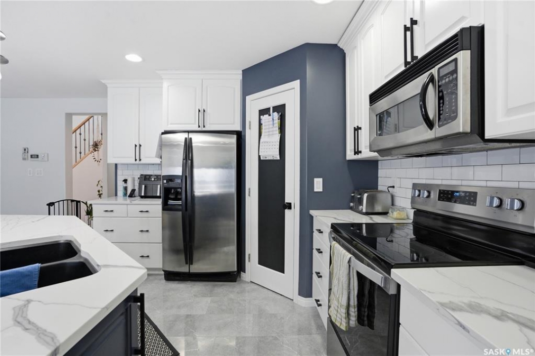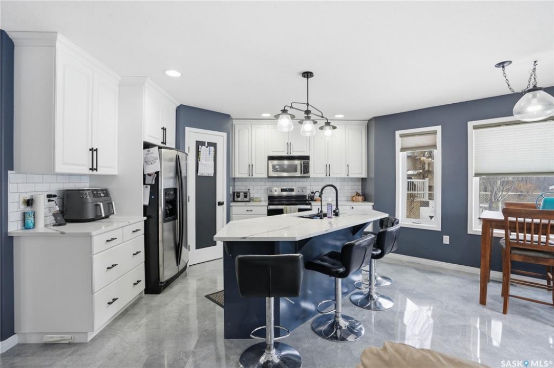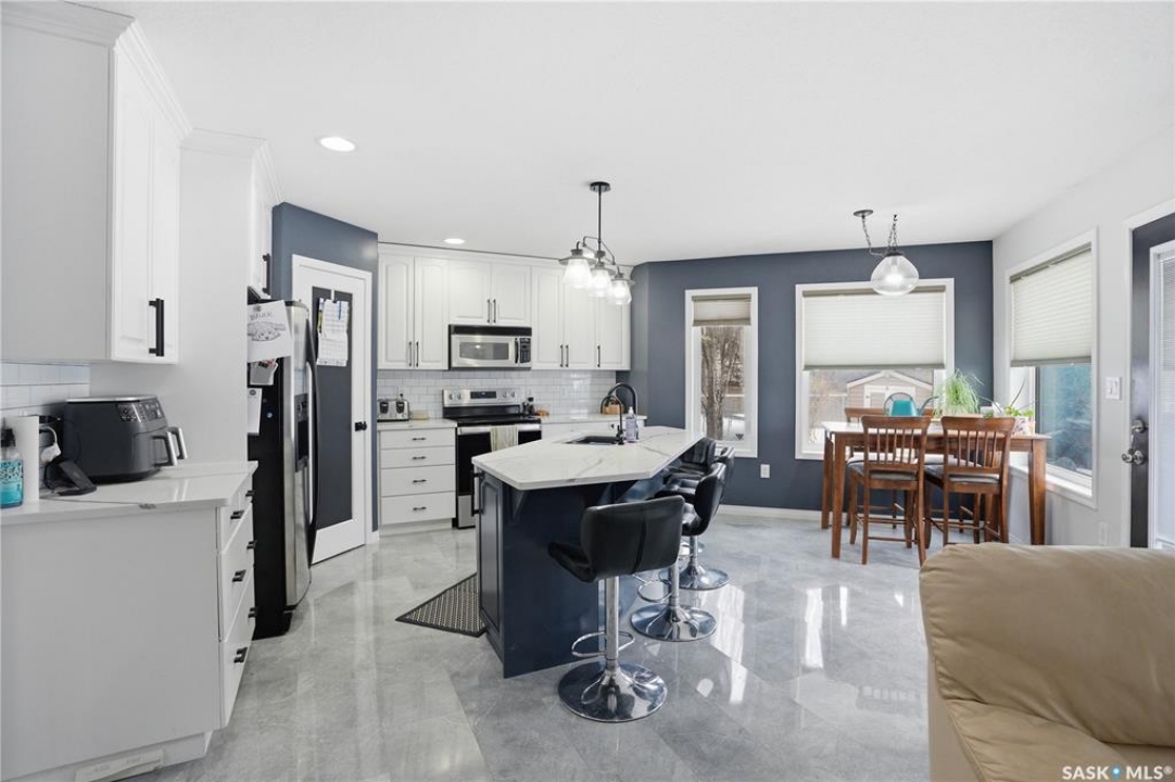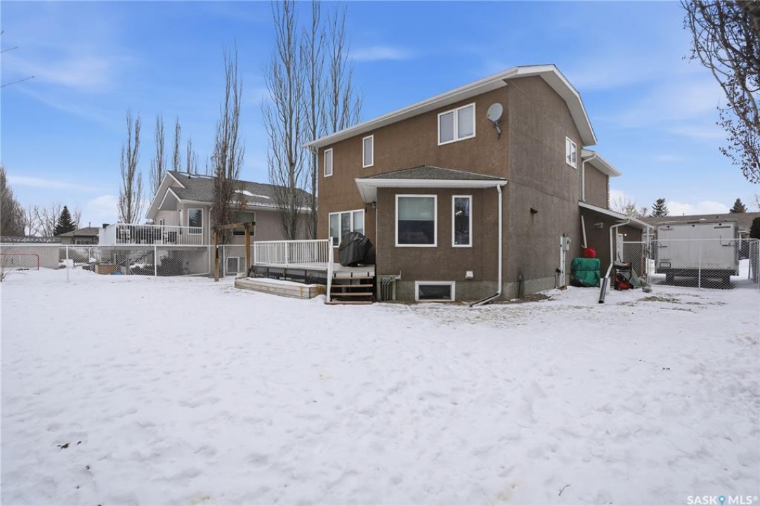 Welcome to this beautifully maintained two-storey home built in 2005, offering over 1,600 sq ft of thoughtfully designed living space in a fantastic location close to everything you need. Step inside and you'll immediately appreciate the warm, inviting layout that makes this home perfect for both everyday family life and entertaining. The recently renovated kitchen features gorgeous quartz countertops, modern finishes, and plenty of workspace, creating a stylish and functional heart of the home where family and friends will naturally gather. Upstairs you'll find three bedrooms, including a comfortable primary retreat complete with a private 4-piece ensuite, offering the perfect place to unwind at the end of the day. The fully finished basement adds even more living space with a fourth bedroom and additional bathroom, making it ideal for guests, teenagers, or a home office. Outside, the home continues to impress with RV parking and a double attached heated garage, providing plenty of space for vehicles, toys, and Saskatchewan winters. The backyard features a beautiful oasis featuring 2 sheds, a deck to enjoy those sunny days and your very own apple tree. With 4 bedrooms, 4 bathrooms, modern updates, and a fantastic location, this home offers the perfect blend of comfort, style, and convenience. A wonderful opportunity for families looking for space to grow in a welcoming neighborhood.
