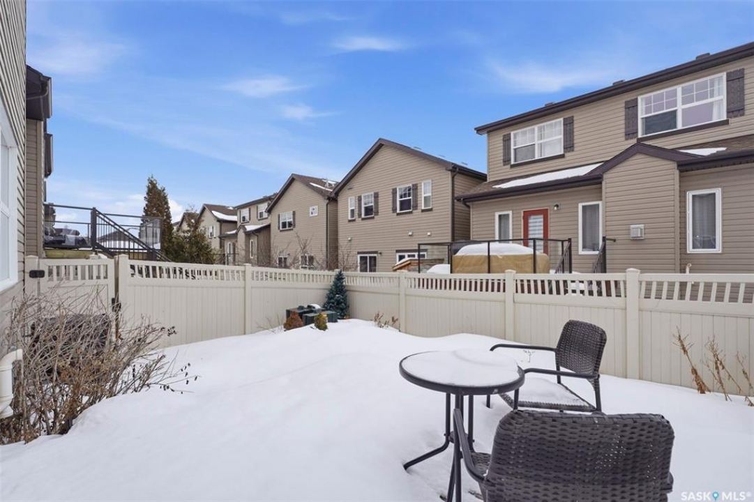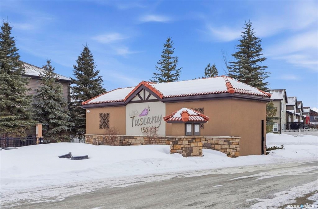 Experience relaxed community living in Little Tuscany, where the atmosphere feels more like a lakeside retreat than a typical city neighbourhood. This rare detached townhouse enjoys a premium setting backing onto James Cameron Park, giving you peaceful park views and the added benefit of no homes directly behind you. A charming covered front porch welcomes you in an inviting space. Step inside to a bright foyer with convenient access to the insulated attached garage and private driveway, a practical feature during Saskatchewan winters. The main floor is designed for both comfort and entertaining, featuring an open-concept layout that seamlessly connects the kitchen, dining, and living areas. The kitchen stands out with espresso maple cabinetry, granite countertops, a functional island, and hardwood flooring, while large windows in the living room bring in abundant natural light. From the dining area, garden doors open onto a sun-filled deck with natural gas BBQ connection, overlooking a private backyard complete with vinyl fence, patio space, garden beds - all with the tranquility of parkland behind. Upstairs, the primary suite offers a relaxing retreat with a walk-in closet, a spacious 4 piece ensuite & calming backyard views. 2 additional bedrooms, a second full bathroom, and the convenience of upper-floor laundry make everyday living easier. The finished basement expands your living space with a stylish family room, a Den or Office Space & a Full Bath. Additional features include central AC & underground sprinklers. The Unit also grants you access to some wonderful Extra Amenities/Perks such as - GYM, Basketball Court & and a lounge with a Beautiful stone fireplace. With nearby shopping, scenic walking trails, and easy access to the lake, this home delivers comfort, privacy, and an exceptional lifestyle in one of Saskatoon's most unique communities. Call TODAY to Arrange a Viewing.