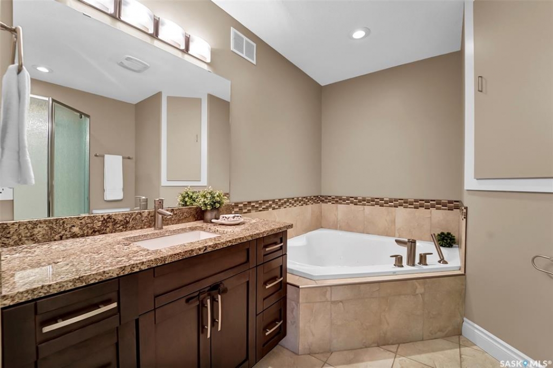 Lovely bi-level on a quiet cul-de-sac with a 2 bedroom legal suite. This home gives you a total of 5 bedrooms and 3 bathrooms and offers a very functional floor plan, modern colours and lots of windows for natural light. Main floor features vaulted ceilings, hardwood floors, granite countertops throughout, glass tile backsplash in kitchen, central vac sweep, natural gas stove. A Fully developed and private yard with two tiered deck south facing, wired sounds surround. Large master bedroom with Jetted tub, shower and walk-in closet. There's a bright family room in the basement for main level use. This is not your typical legal suite. This suite is exceptionally bright with large windows, separate laundry, all appliances, separate entrance, separate electrical meter. Double attached garage is boarded, painted and heated. Recent upgrades: the main floor has been freshly painted, ceilings have been painted in the living room room, the water heater is about five years old. Don't miss out on this great home with a mortgage helper.