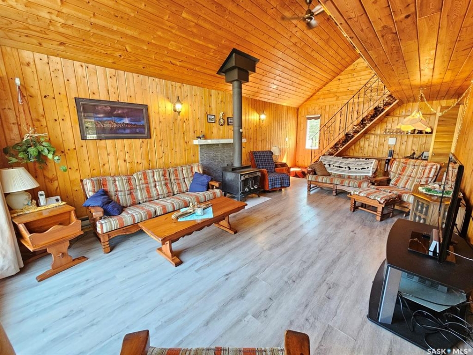 Sunny summer days are right ahead of you at beautiful Lac Des Iles! It's time to stop thinking about it and just buy the cabin! This well-maintained property has served this family well since 1980, but it's time to let another family enjoy the space to make memories of their own. You will appreciate the traditional cabin feel with a natural wood burning fireplace, tongue & groove pine walls mixed with modern laminate flooring throughout the main level. The main level consists of a functional kitchen, spacious living room, laundry/storage, and a 4-piece bath. The second level is where you would call it a night after a day on the beach. It includes 2 bedrooms overlooking the living room, and the primary bedroom has a balcony which overlooks Lac Des Isles. Outside you will find a 12'x26' west facing deck which leads to a wonderful firepit area surrounded by mature trees. You will also enjoy the security and peace of mind for your belongings with the 26'x28' garage, which features shelving, cabinets, fridge, freezer, and a wood burning stove to take the chill off in snowmobile season! Recent updates include 5 new triple pane windows, laminate flooring on the main level, new vanity and toilet, and new water heater. The seller wishes to sell the cabin with everything including BBQ, TV and surround sound, and cell signal booster. So for a move in ready experience, so call your preferred realtor for more information! The seller owns the vacant lot next door and is willing to sell as a package deal with this property, but they will not sell the vacant lot before selling the cabin lot. To the buyer of this cabin property, they would offer first right of refusal for the second lot before selling it separately.