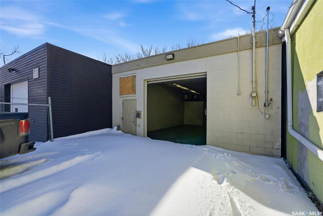 Great location for this OFFICE/SHOP building with good size rear fenced compound. Just a few doors off of Saskatchewan Drive in the Cathedral Area and across from Pile of Bones Brewery. 1470 Square feet, featuring large reception/waiting/open office area, 3 separate offices/rooms, kitchen space, bathroom and a open 36'10' x 21'11" shop area with large overhead garage door leading to good sized rear fenced compound. This space is also listed for lease and a quick possession is available.