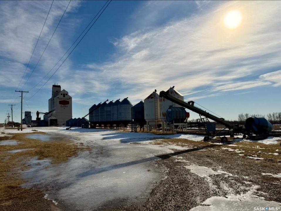 Opportunity to acquire a fully serviced grain elevator and seed cleaning facility located in the Village of Climax, Saskatchewan, situated on 4.01 acres and connected to the Great Western Railway with a 26-car spur receiving weekly rail service. Originally constructed in 1967 with approximately 100,000 bushels of storage capacity and expanded in 1977 with a 50,000-bushel annex, the facility offers approximately 150,000 bushels of total storage supported by two steel bucket elevators, three unloading pits, and a 62' scale. The site has been operated as a seed cleaning and specialty crop handling facility and includes a gravity table, indent cylinder, air screen cleaner, and spiral separation equipment. Adjacent to the elevator is a dedicated rail loading system featuring six 4,000-bushel hopper-bottom bins with electric load-out and Batco under-mount drag conveyor, providing efficient railcar loading capability. Additional infrastructure includes a seed treating setup equipped with three bins (two 2,200 bushel smooth-wall bins with aeration), fertilizer drum blender, and conveyor unload system. A heated shop located on a nearby town lot offers convenient space for equipment storage and maintenance. Optional equipment available with the sale includes a forklift, 3-ton grain truck, Batco 13' x 75' conveyor, Batco transfer conveyor, and bagging machine with scale for 50 lb bagging operations. This property presents multiple business opportunities including mustard cleaning, specialty crop handling, seed treating, custom seed cleaning services, and grain export logistics utilizing the active rail spur.