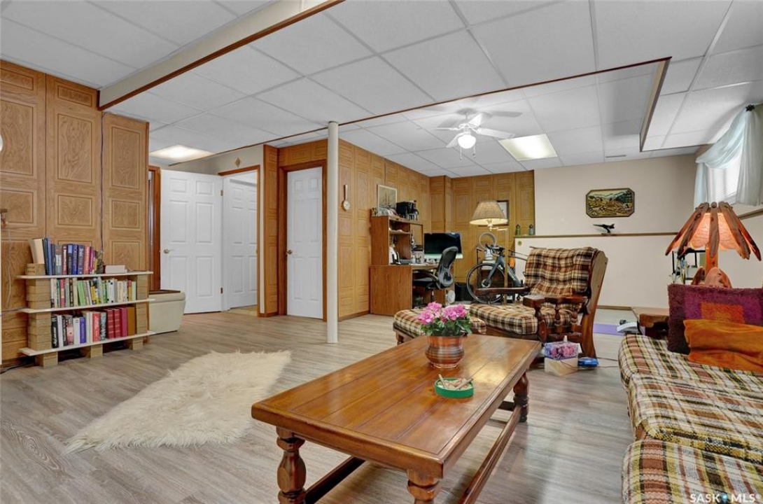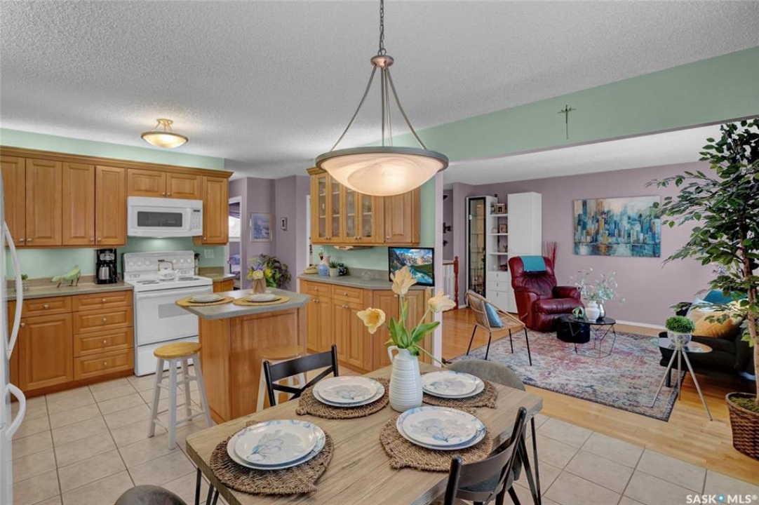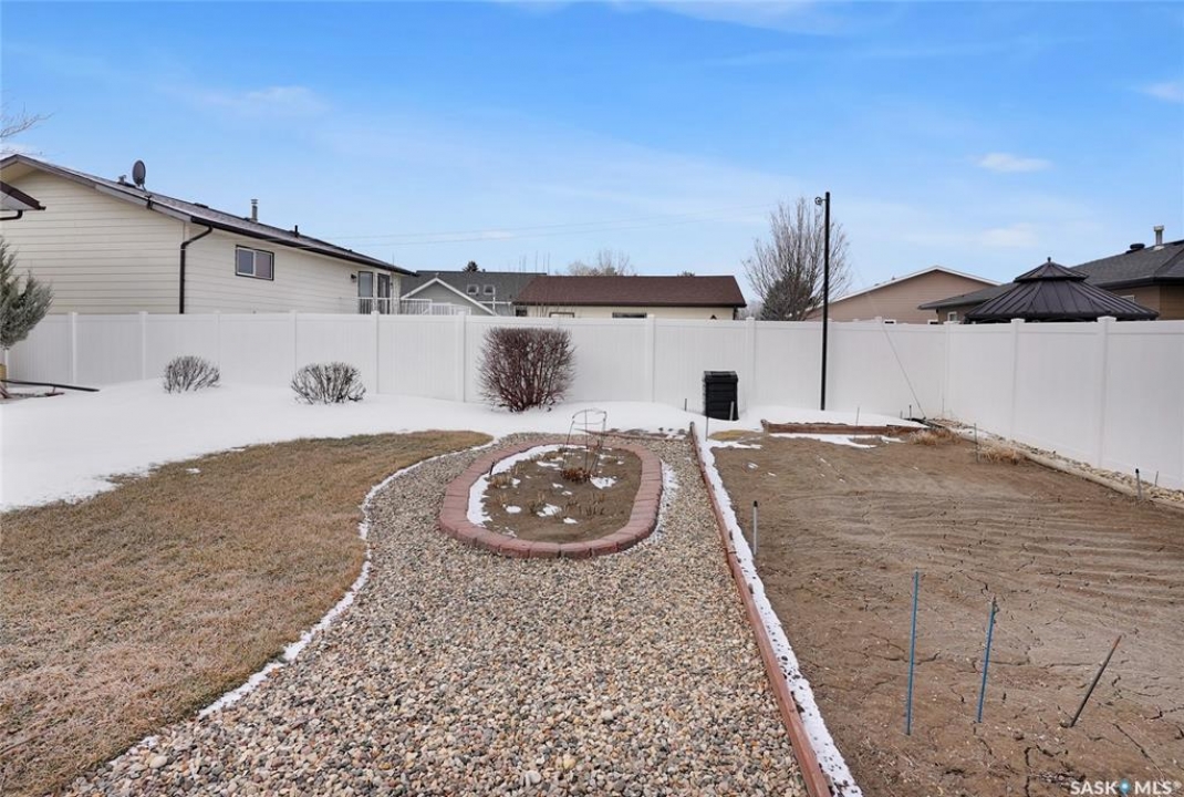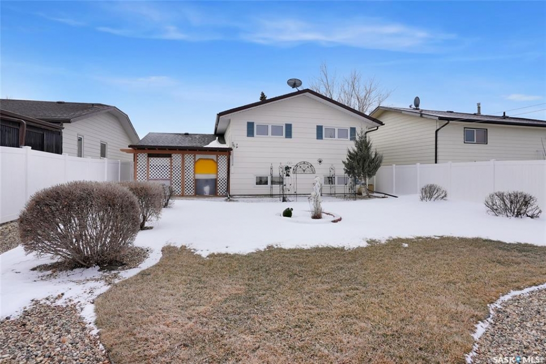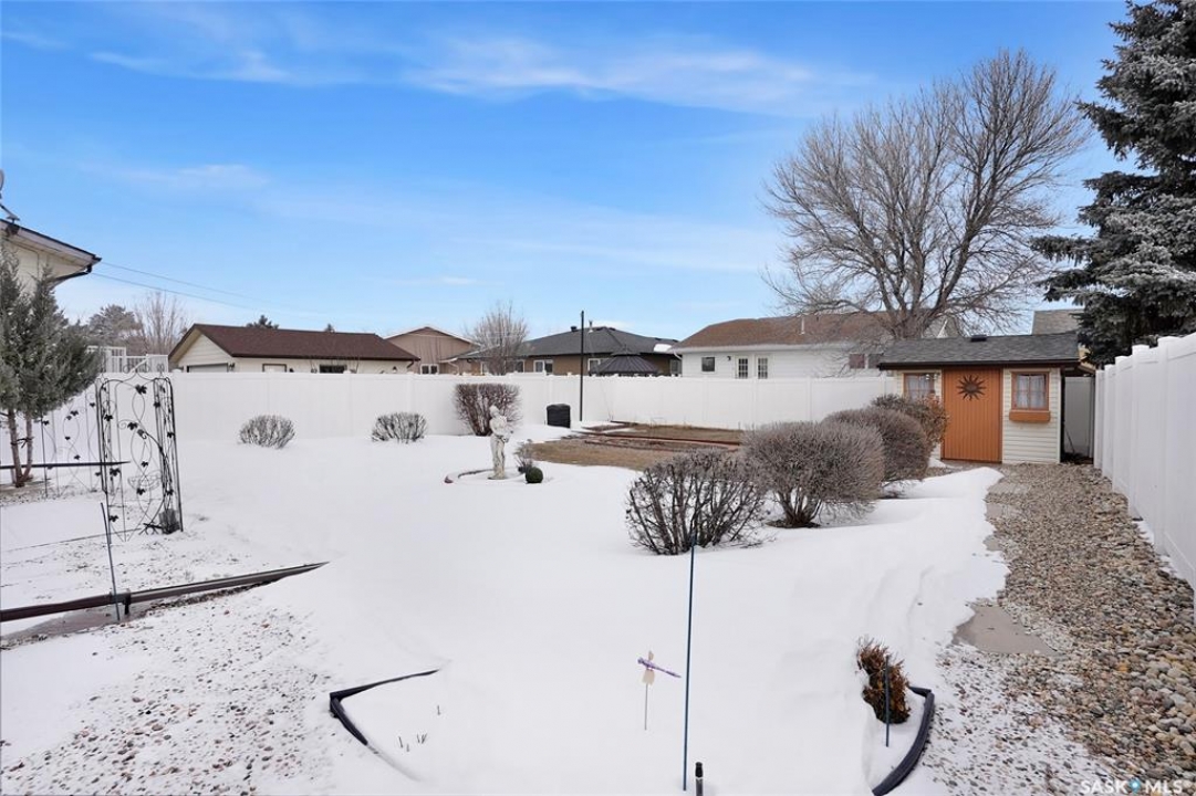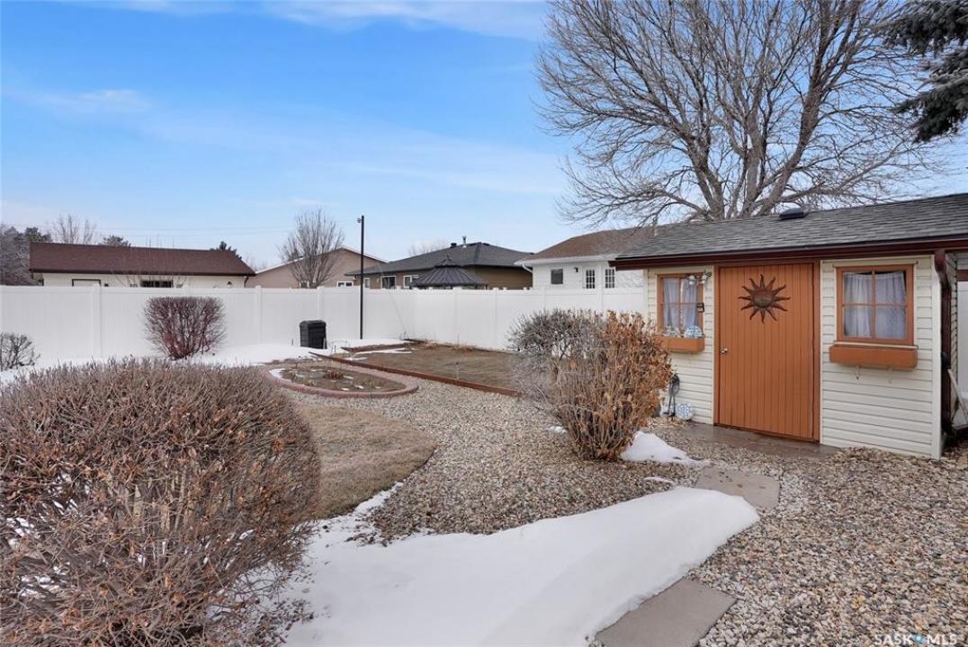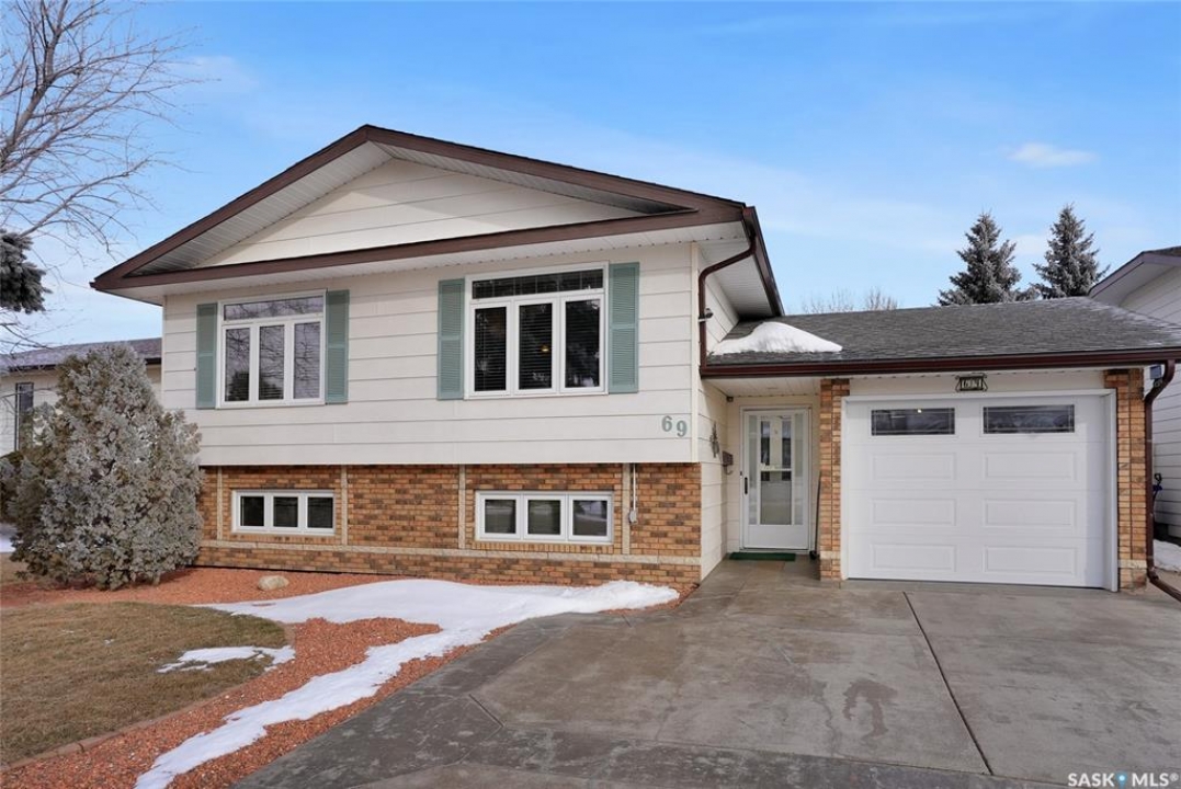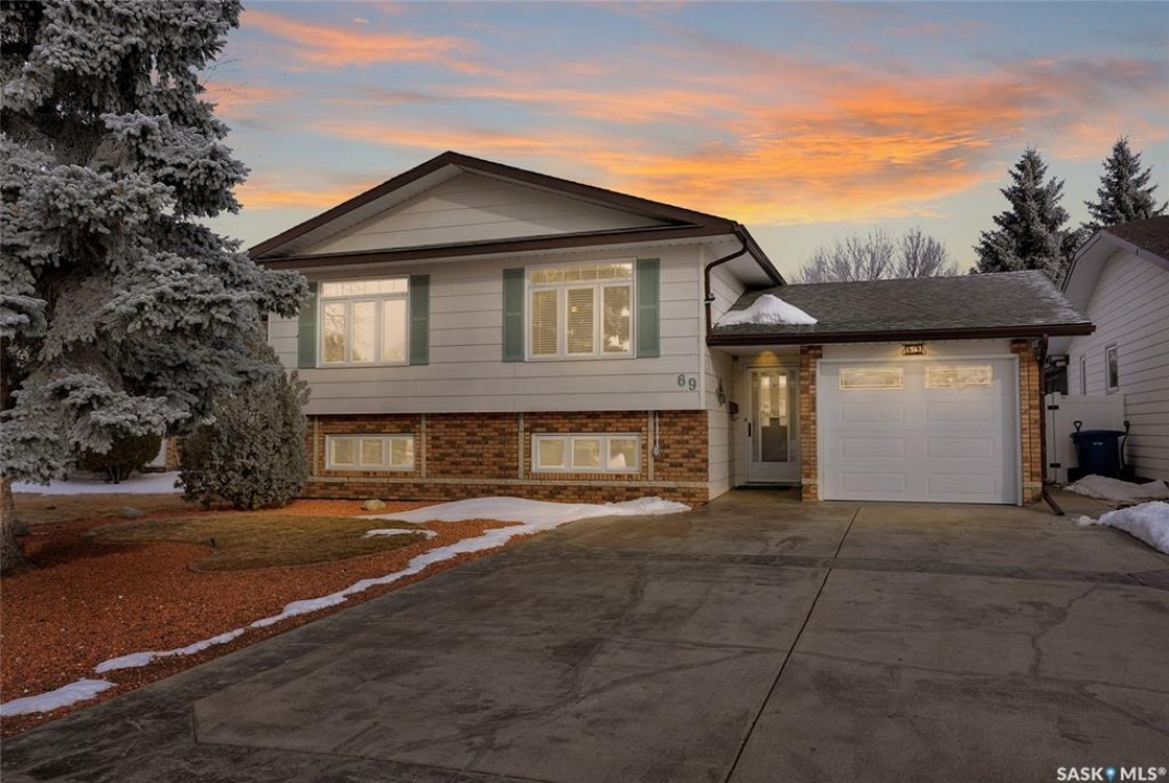 Welcome to 69 Thorn Crescent, located on a quiet crescent in one of Moose Jaw's most desirable neighbourhoods, just steps from Sunningdale Park & School. This beautifully maintained family home has been lovingly cared for by its long-time owner and offers numerous updates throughout, ask for list. The front concrete drive welcomes you into a spacious foyer that runs from the front door to the back, providing plenty of room to greet guests while also offering direct access to the insulated attached garage. The bright main floor features large south-facing triple pane windows that fill the home with natural light. Hardwood flooring flows through the living room and the living room opens into the dining and kitchen area, creating a comfortable layout for everyday living & entertaining. The kitchen offers maple cabinetry w/abundant storage, above & under cabinet lighting, centre island & additional counter space perfect for a coffee bar. The main floor includes 2 bedrooms w/the primary bedroom offering his & hers closets. The 2nd bedroom, the wardrobe is included. A 4pc bath completes this floor. The lower level offers excellent additional space w/large windows, a family room & game area that can easily adapt to suite your lifestyle. This level also includes a 3rd bedroom, renovated 3pc. bath w/heat lamp & a functional laundry area w/wash basin. Additional features include 100 amp panel, RV electrical, H/E furnace, central air conditioning, central vac, underground sprinklers & water softener. There is also great storage in the utility room & under the stairs. Step outside to enjoy the beautifully landscaped & fully fenced backyard featuring a covered patio, garden area, flowering bed w/statue centrepiece & 10 x 10 shed. Bonus is in the insulated att. garage & RV electrical hookup, this move-in ready home offers comfort, updates & an incredible location. CLICK ON THE MULTI MEDIA LINK for a full visual tour and call today!