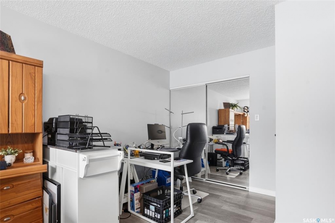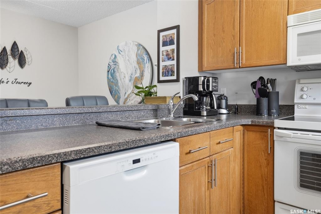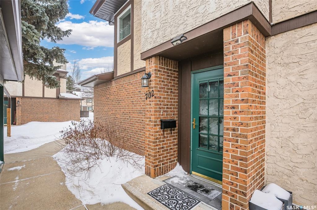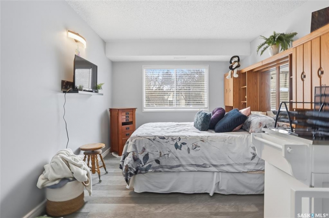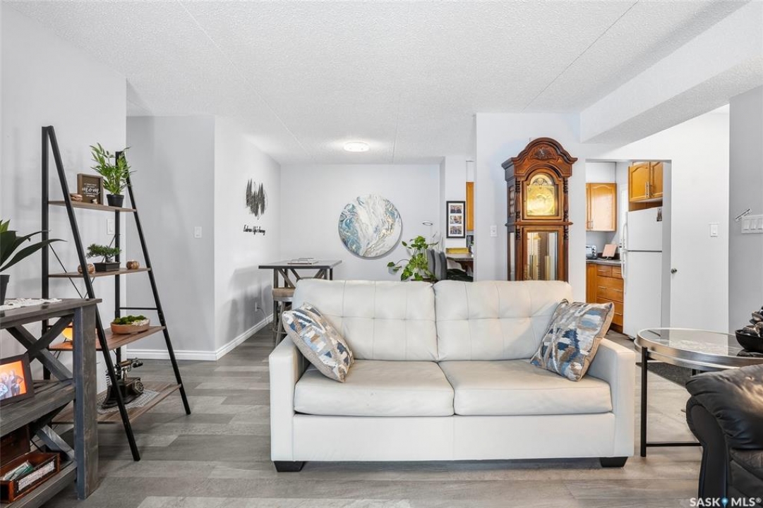 A rare opportunity awaits at River Ridge Estates — and the name truly says it all. Quietly tucked at the back of the complex, this beautifully updated main-floor condo offers the perfect blend of privacy, safety, and low-maintenance living. Even better? A detached garage sits just steps from your door — a hard-to-find feature that provides extra storage and year-round convenience. Located in a well-established community in desirable Lawson Heights, this complex is ideally positioned near schools, parks, the Meewasin Trail, shopping, the civic centre, and more. It's a setting that perfectly balances tranquility with everyday accessibility. Step outside to your private southwest-facing patio overlooking the peaceful courtyard, complete with mature trees and lush garden spaces. Inside, the modern updates shine. Upgraded flooring and fresh paint create a clean, contemporary feel throughout the open-concept layout. The kitchen is fully equipped with appliances, generous cabinetry, ample counter space, and a functional eat-up island. The dining area flows seamlessly into the bright living room, where newer patio doors and a stunning fireplace with a wood-accent mantle create a warm and welcoming focal point. An electric insert adds both comfort and ambiance. The spacious primary bedroom offers impressive square footage, a walk-in closet, and convenient access to the four-piece bathroom — a true retreat at the end of the day. An additional bedroom provides flexibility for guests, an office, or hobbies. And finally, a large storage room houses your laundry, water heater, and plenty of extra storage space. Whether you're a first-time buyer looking to step into homeownership or ready to downsize without compromise, this home checks all the boxes. The complex is pet-friendly, features a strong and established reserve fund, and offers additional parking for rent. Your search ends here — call today for more information and start packing!