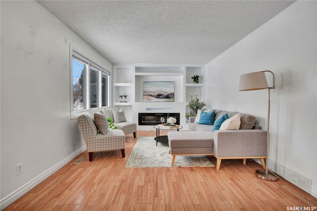 Welcome to this charming 864 sq ft bungalow featuring 3 bedrooms and 2 bathrooms, perfect for families or first-time buyers. The home offers convenient direct access to a spacious deck and nicely landscaped yard, ideal for relaxing or entertaining during the summer months. Enjoy modern comfort with a high-efficiency furnace and water heater, central air conditioning, and a cozy electric fireplace. The property also includes a single concrete driveway for easy parking. Step outside to a fully fenced, well-developed yard with a large deck—perfect for kids, pets, and outdoor gatherings. Located in a family-friendly area, the home offers beautiful park views from the front windows, and you can watch the kids walk to school right across the park. This move-in ready home combines comfort, convenience, and a great location. Don't miss out—this one won't last long!