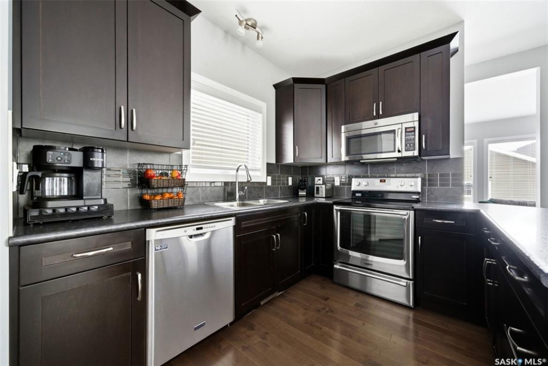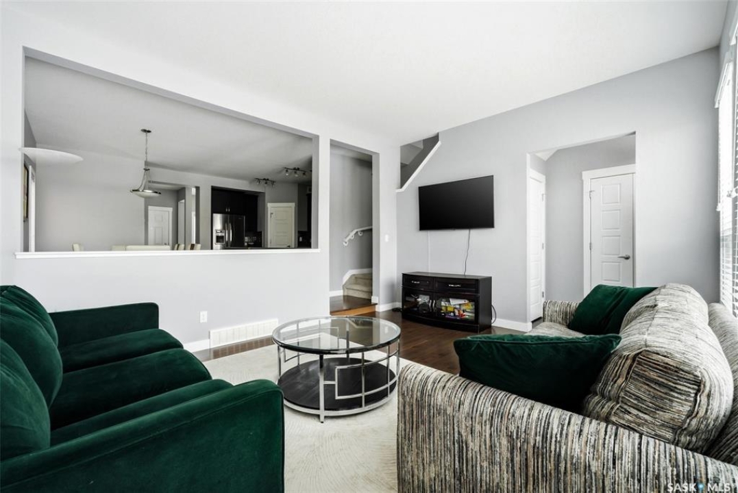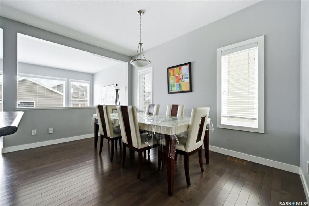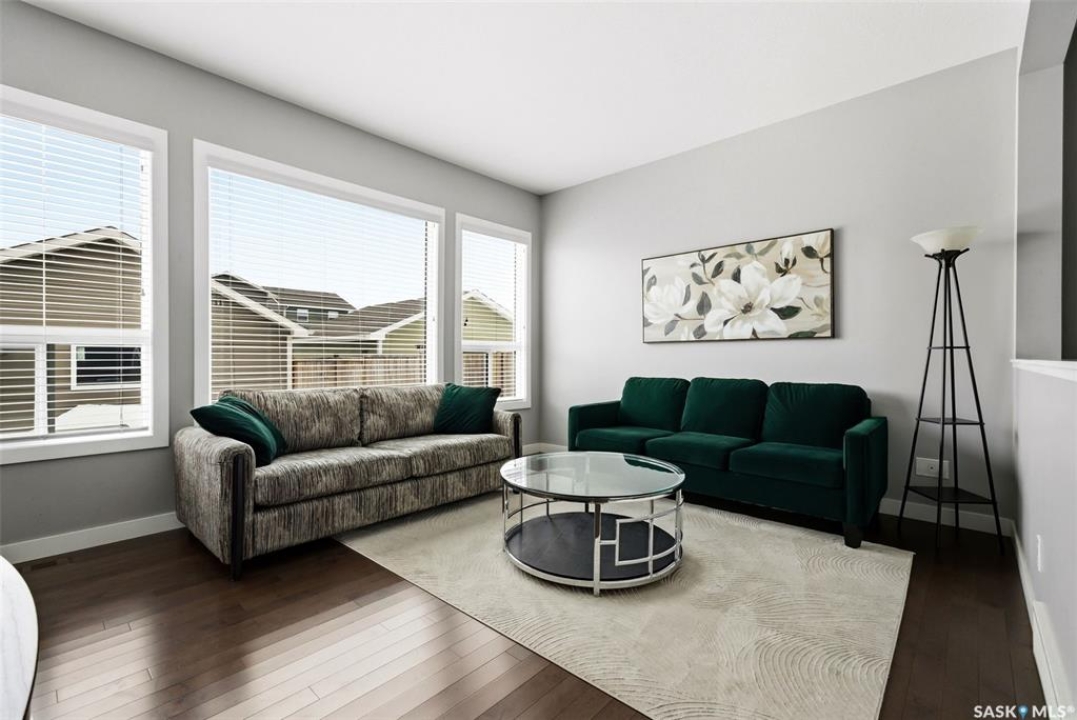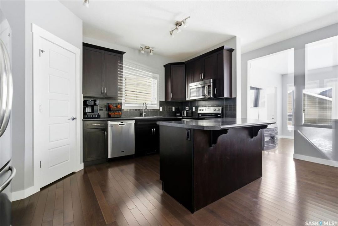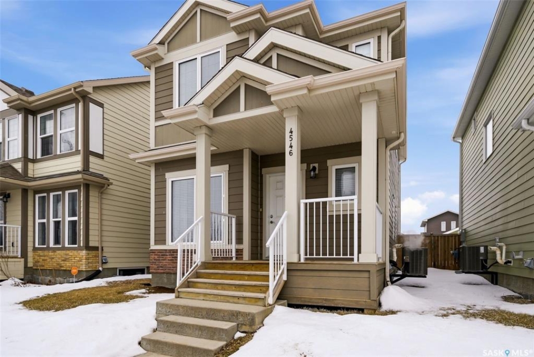 Welcome to 4546 Albulet Drive, a well-maintained two-storey home located in the heart of Harbour Landing—one of Regina's most sought-after family communities. Built in 2014, this 1,603 sq ft home offers a bright, functional layout with modern finishes throughout. The main floor features rich hardwood flooring and large windows that fill the living spaces with natural light. The spacious living room flows seamlessly into the dining area and kitchen, creating an ideal space for everyday living and entertaining. The kitchen is well appointed with dark maple cabinetry, tile backsplash, stainless steel appliances, a large island with seating, and a walk-in pantry for additional storage. A main-floor office provides flexibility for working from home or additional living space, along with a convenient 2-piece bathroom. Upstairs you'll find three comfortable bedrooms, including a spacious primary suite featuring a walk-in closet and private 3-piece ensuite. Two additional bedrooms and a full 4-piece bathroom complete the second level, along with the convenience of second-floor laundry. The basement is open and ready for future development, offering plenty of space for a recreation room, additional bedroom, or home gym. Outside, the fully fenced backyard provides room to relax or entertain, with access to a double detached garage offering excellent parking and storage space. The home is ideally located close to parks, walking paths, schools, shopping, and all Harbour Landing amenities. A fantastic opportunity to own a stylish and functional family home in a great neighbourhood.