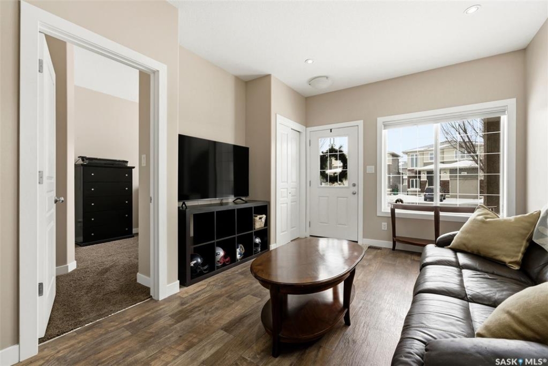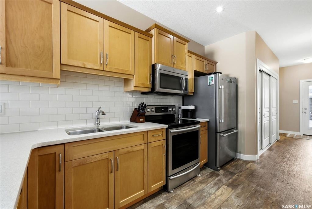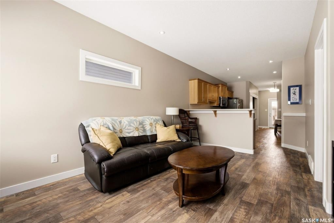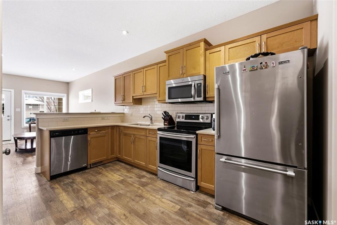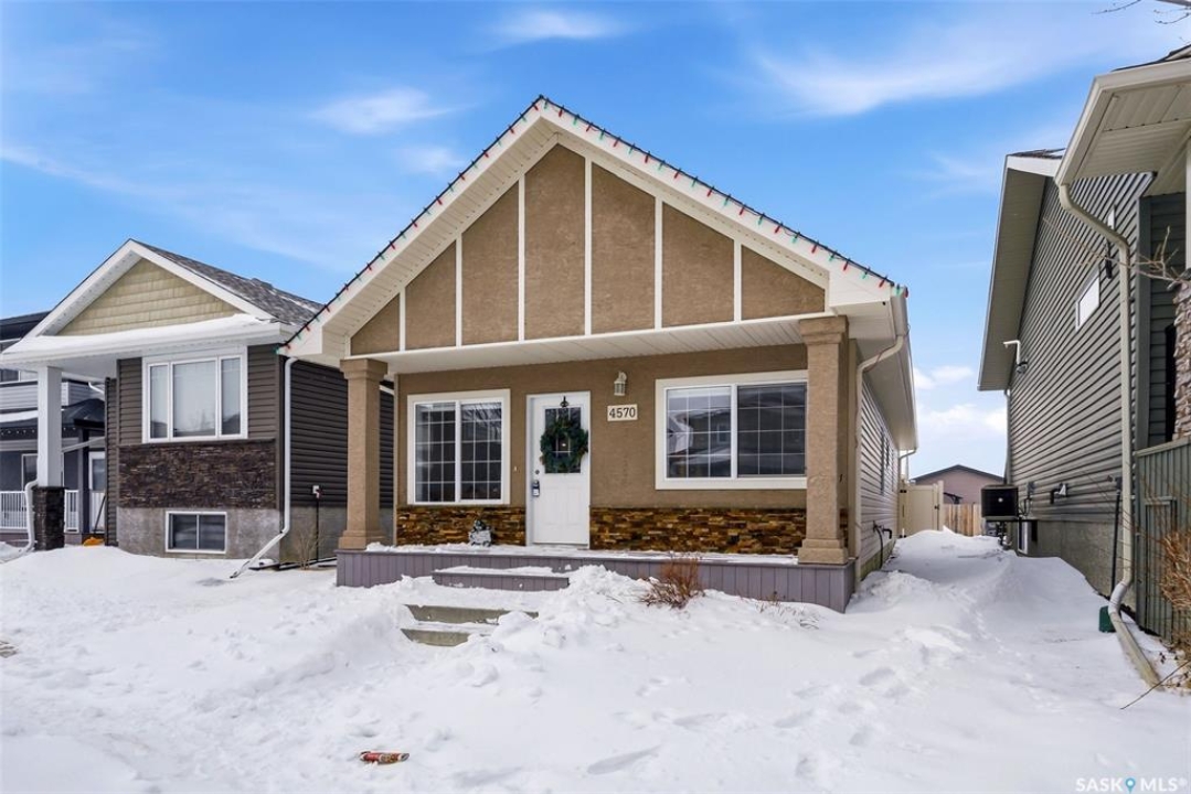 Welcome to 4570 James Hill Road, a beautifully maintained bungalow located in the highly desirable community of Harbour Landing. Built in 2016, this home offers 1,077 sq ft of bright, functional living space with modern finishes and a thoughtful layout perfect for families, first-time buyers, or those looking to downsize. The main floor features an open-concept design with warm laminate flooring and an abundance of natural light throughout the living room, dining area, and kitchen. The kitchen is well-appointed with maple cabinetry, stainless steel appliances, tile backsplash, and ample counter space, making it ideal for both everyday living and entertaining. This home offers three comfortable bedrooms on the main level, including a spacious primary bedroom with its own 3-piece ensuite, along with a convenient 4-piece main bathroom. Each room provides a cozy and functional space for family, guests, or a home office. Step outside to enjoy a covered back deck and fully fenced yard, perfect for relaxing or entertaining. The property is completed by a fully insulated and heated double detached garage, offering secure parking and additional workspace. Located close to parks, schools, walking paths, and all the amenities Harbour Landing has to offer, this move-in ready home provides comfort, convenience, and excellent value.