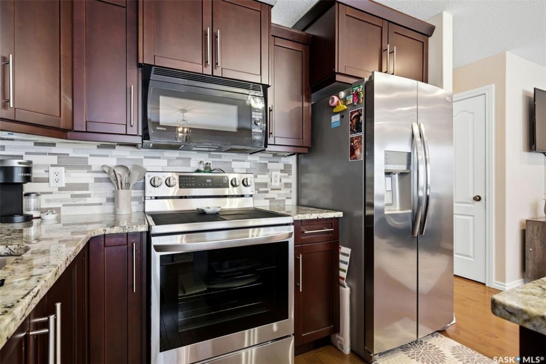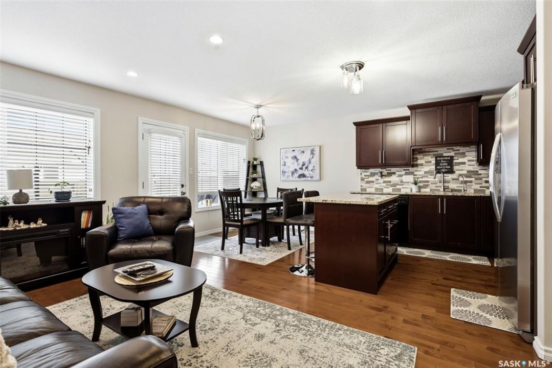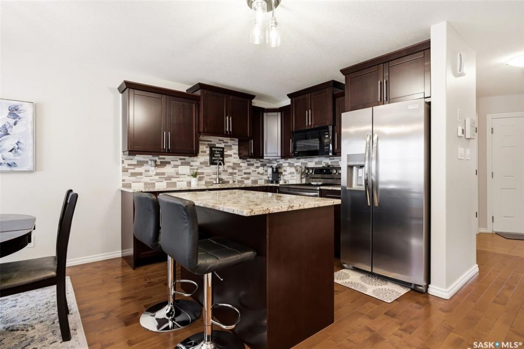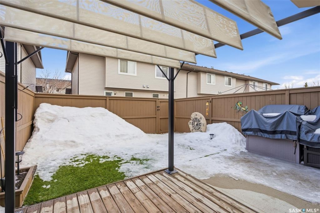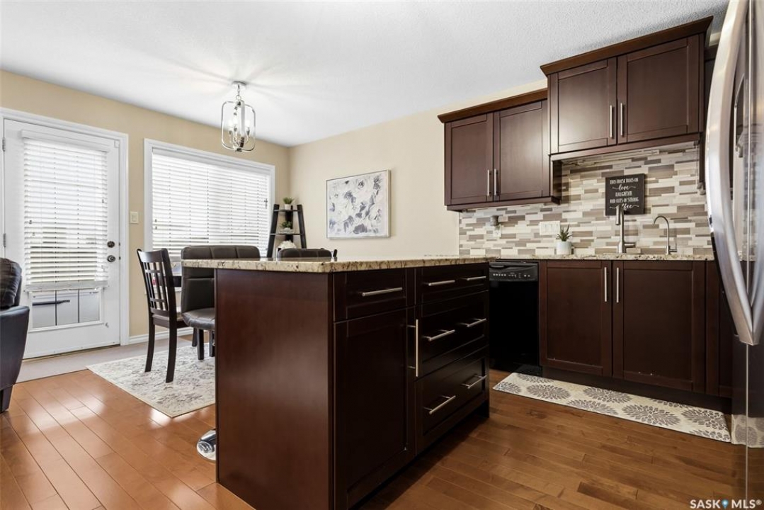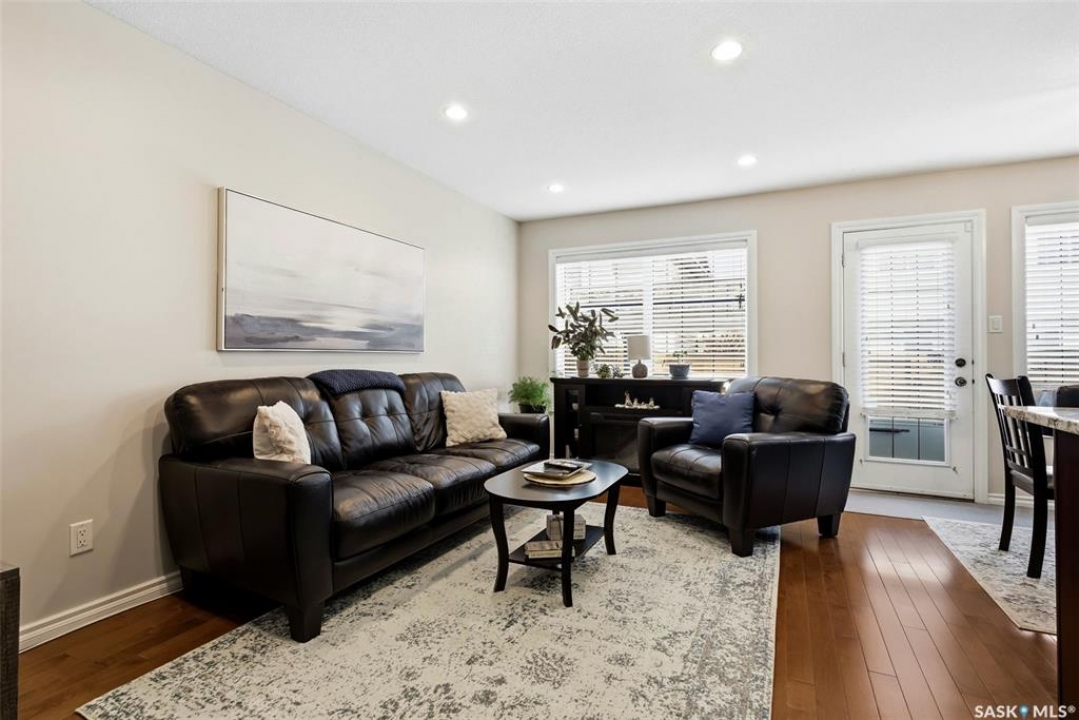 Welcome to this exceptional 2-storey townhouse condo built by Northridge Developments, offering the perfect blend of quality craftsmanship, thoughtful design, and low-maintenance living in an intimate complex of just 30 units. A spacious foyer welcomes you with ceramic tile flooring, a double front closet, and direct entry from the fully insulated garage. The main floor unfolds into a bright and beautifully connected open-concept living area designed for both entertaining and daily life. The kitchen is a true focal point, featuring stunning cabinetry with under-cabinet lighting, granite countertops, a tiled backsplash, and a generous centre island with deep drawers and an extended overhang for bar-height seating. Hardwood flooring flows through the main living and dining areas, where large picture windows fill the space with natural light. The garden door leads to your own exclusive, fully fenced backyard with desirable east exposure with a concrete patio, a ground-level deck, and artificial turf for low-maintenance outdoor living. A convenient two-piece bath completes the main level. Upstairs, you'll find 3 generously sized bedrooms, including an impressively spacious primary suite located over the garage for added privacy. A 4-pc main bathroom showcases granite countertops and a full tub surround. The fully developed basement expands your living space even further with a bright L-shaped rec room highlighted by a wall-mounted electric fireplace and a large window that brings in natural light. This versatile space is ideal for a family room, home office, media area, or teenager retreat. A 3-pc bathroom, dedicated laundry room with excellent storage, and additional storage under the stairs add to the home's functionality. Additional features include heritage doors and trim throughout, ceramic tile in bathrooms and laundry, a high-efficiency furnace, HRV system, central air conditioning installed in 2021, and access to a large common green space within the complex.