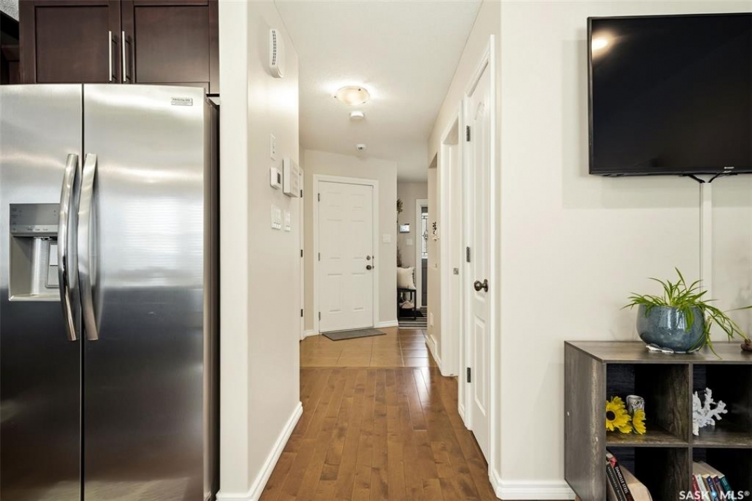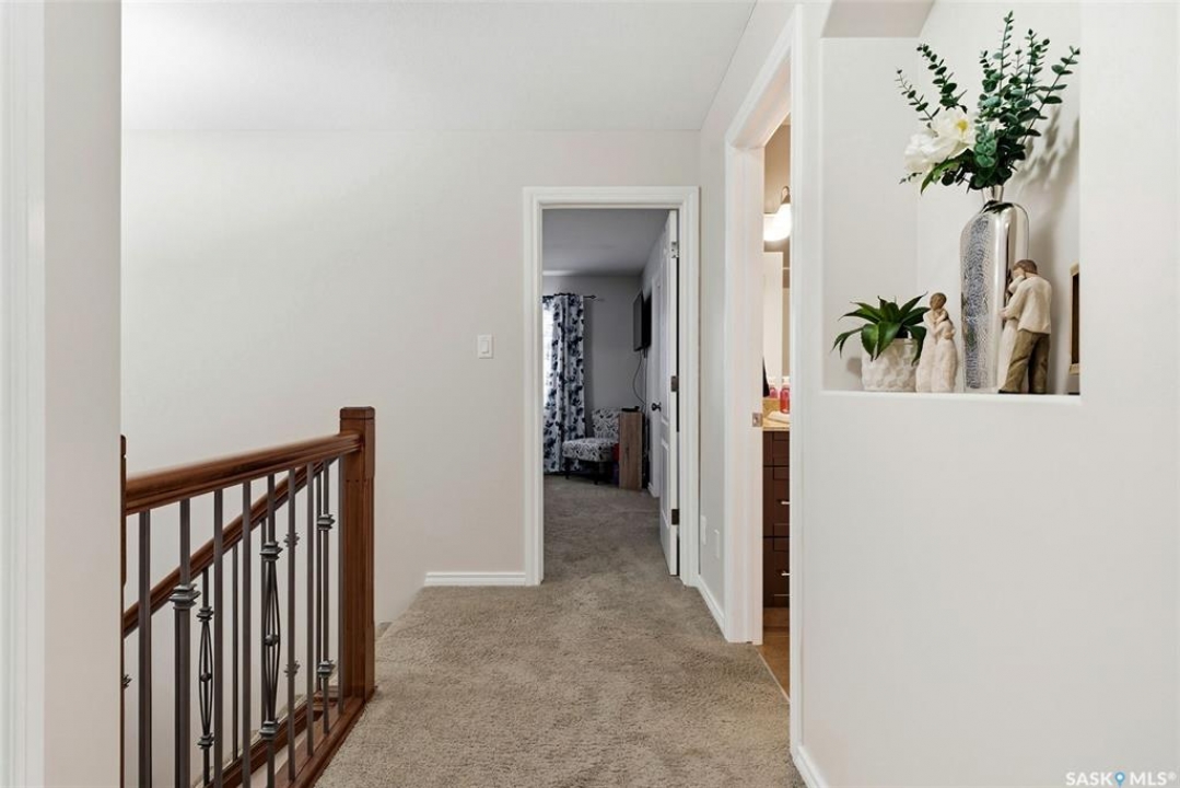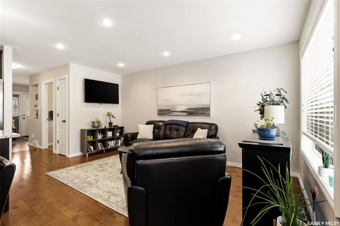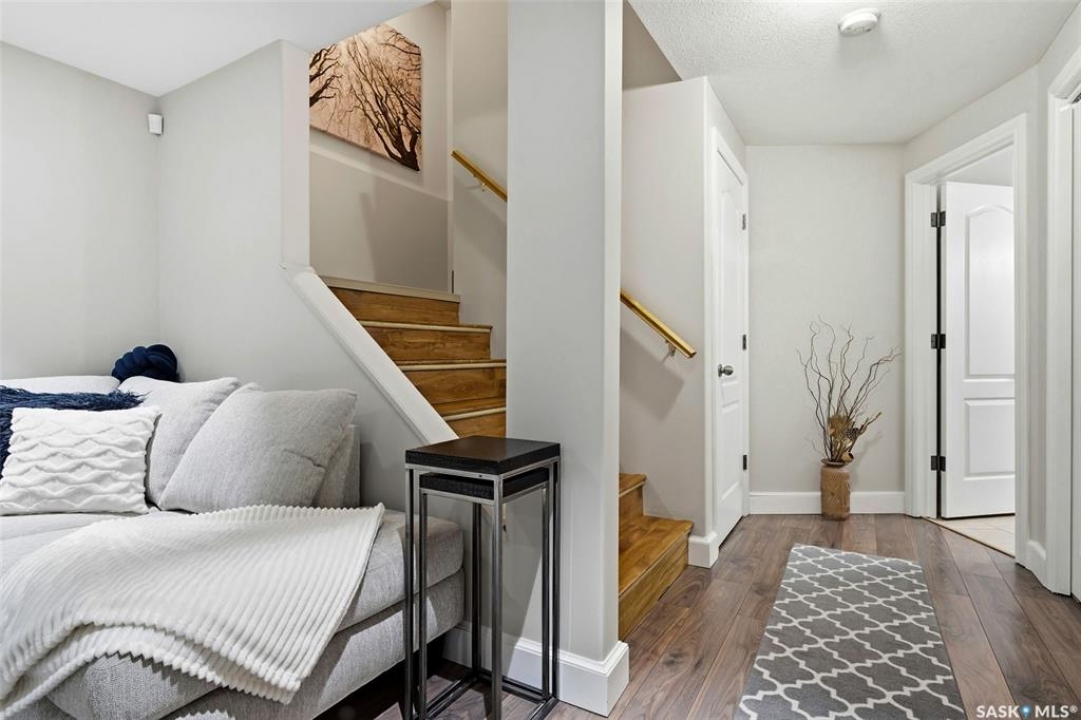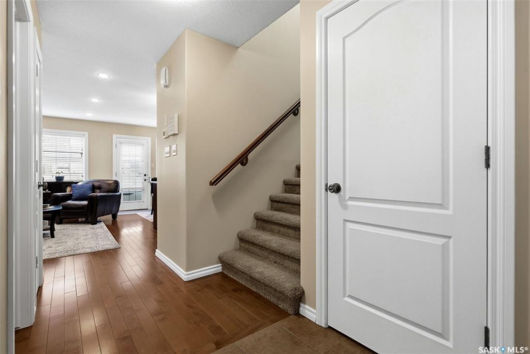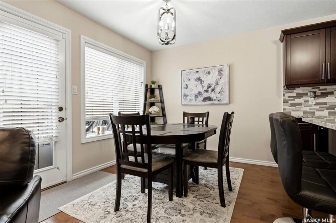 Welcome to this exceptional 2-storey townhouse condo built by Northridge Developments, offering the perfect blend of quality craftsmanship, thoughtful design, and low-maintenance living in an intimate complex of just 30 units. A spacious foyer welcomes you with ceramic tile flooring, a double front closet, and direct entry from the fully insulated garage. The main floor unfolds into a bright and beautifully connected open-concept living area designed for both entertaining and daily life. The kitchen is a true focal point, featuring stunning cabinetry with under-cabinet lighting, granite countertops, a tiled backsplash, and a generous centre island with deep drawers and an extended overhang for bar-height seating. Hardwood flooring flows through the main living and dining areas, where large picture windows fill the space with natural light. The garden door leads to your own exclusive, fully fenced backyard with desirable east exposure with a concrete patio, a ground-level deck, and artificial turf for low-maintenance outdoor living. A convenient two-piece bath completes the main level. Upstairs, you'll find 3 generously sized bedrooms, including an impressively spacious primary suite located over the garage for added privacy. A 4-pc main bathroom showcases granite countertops and a full tub surround. The fully developed basement expands your living space even further with a bright L-shaped rec room highlighted by a wall-mounted electric fireplace and a large window that brings in natural light. This versatile space is ideal for a family room, home office, media area, or teenager retreat. A 3-pc bathroom, dedicated laundry room with excellent storage, and additional storage under the stairs add to the home's functionality. Additional features include heritage doors and trim throughout, ceramic tile in bathrooms and laundry, a high-efficiency furnace, HRV system, central air conditioning installed in 2021, and access to a large common green space within the complex.
