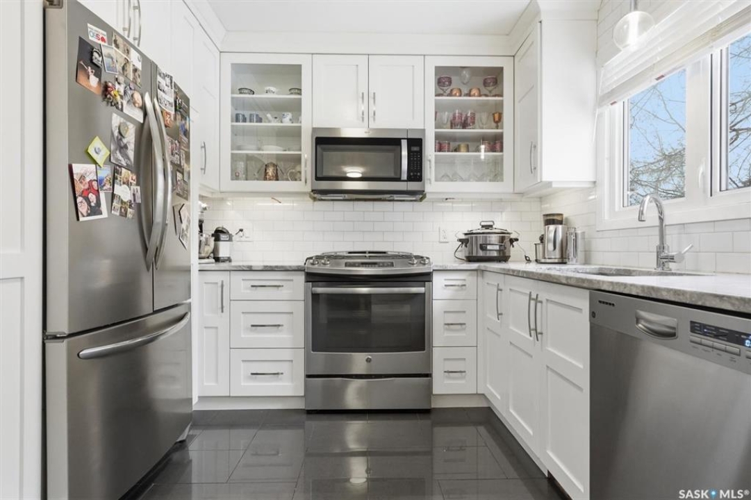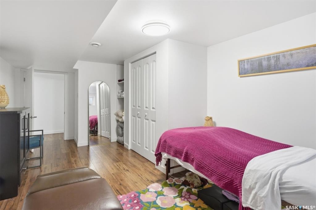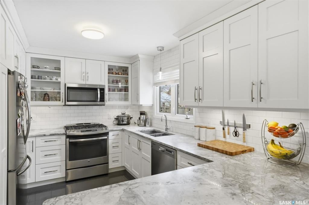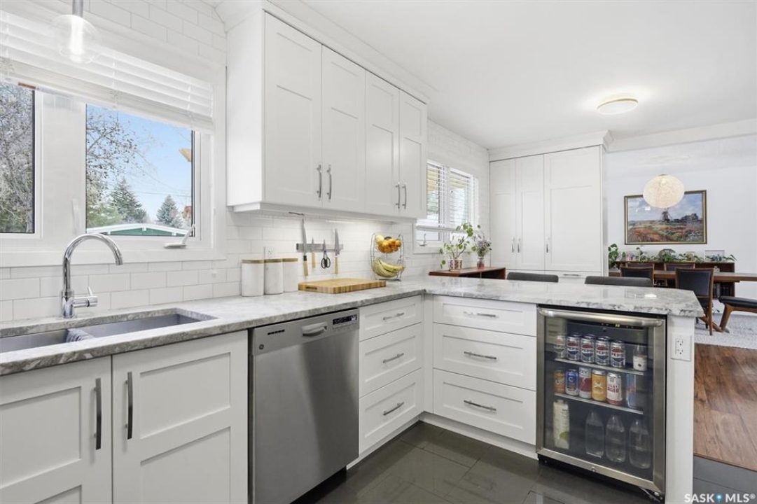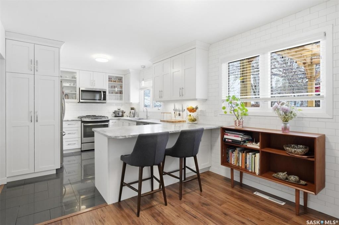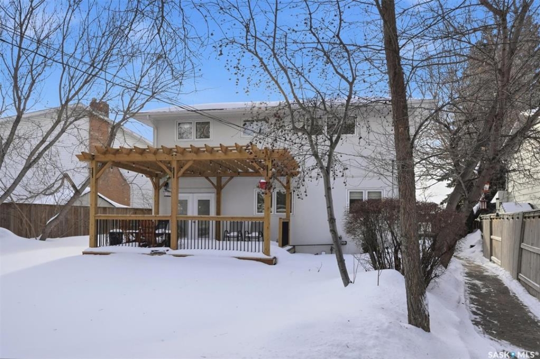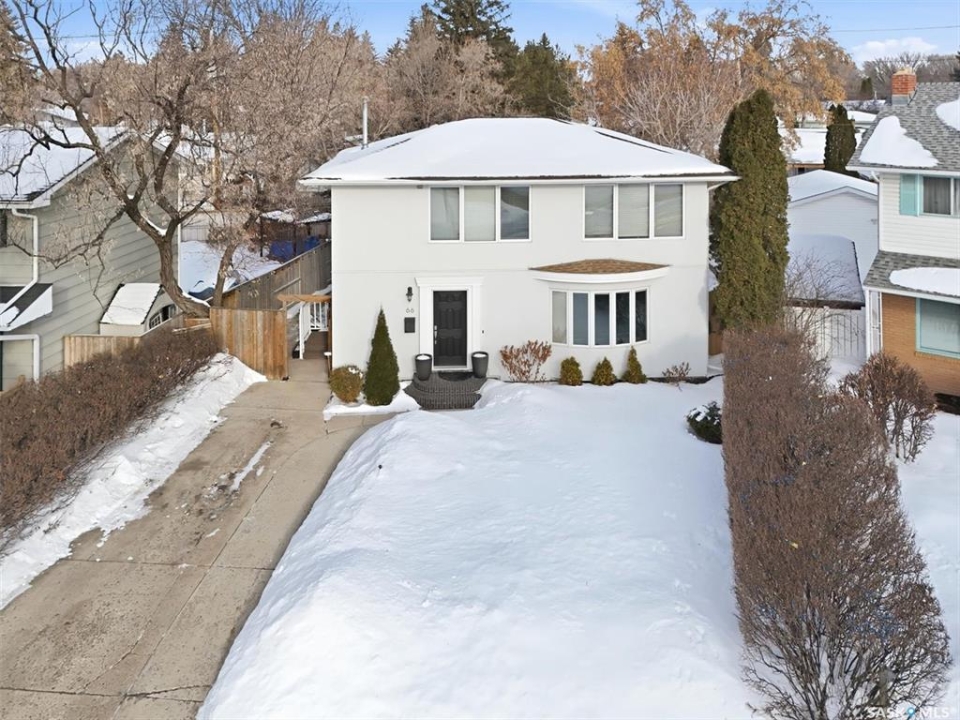 open house 1:00-3:00pm Sunday (Mar. 8, 2026) A fully renovated mid century masterpiece on quiet and secluded Murphy Crescent - This five bedroom three bathroom home has been extensively professionally updated over the past decade with upgrades that include: - Triple pane windows - A brand new $50,000 EIFS full house stucco job including new fibreglass doors - New high efficiency furnace, water heater and air conditioner - Fully updated custom kitchen featuring new appliances, quartz countertops and a gas range - A huge back yard pergola equipped with natural gas hookup - New tile work, stone work, and flooring throughout the property The south facing home sits on a large pie shaped lot and is flooded with light all hours of the day. The house is surrounded by all the best that one of Saskatoons most sought after neighbourhoods has to offer including schools, parks and walking paths. An added bonus is that two of the upstairs bedrooms have been upgraded with extra large windows which the current owners have been utilizing as dual home offices. Anyone that has the option to work from home will certainly appreciate the flexibility this setup affords. The basement features a separate side entrance as one of the current owners is a professional chiropractor and massage therapist and has been running an at home practice out of the space. Anyone that is an esthetician, massage therapist, chiropractor or hair stylist and has interest in running a home based business should certainly take note of this option. Located on a quiet crescent with wonderful neighbours, this home blends comfort, privacy, and practicality in one of the most family-friendly pockets of the community. A truly move-in-ready property with room to grow.