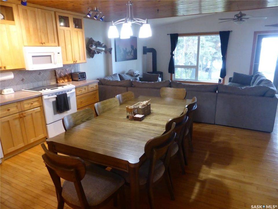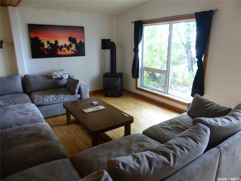 Welcome to your new lakefront cabin located in one of the most peaceful and secluded areas of Turtle Lake Lodge, part of the Resort Village of Turtle View. 67 Mathews Crescent sits near the south end of the crescent with only a couple of cabins beyond it, offering a quiet setting with a natural preserve behind the property and beautiful lake views in front. Turtle Lake Lodge is known for its quiet setting, natural surroundings, and excellent access to some of the best boating, swimming, and fishing Turtle Lake has to offer. This well-designed 1,536 sq. ft. cabin features 3 bedrooms and a layout that makes lake living comfortable and inviting. Enter from the street side through the covered deck into a welcoming foyer, conveniently located beside the laundry area and a 4-piece bathroom. Just off the foyer is a bonus room currently set up with bunk beds, along with another full bedroom featuring a queen-size bed. The heart of the cabin is the spacious open-concept kitchen, dining, and living area, all perfectly positioned to take in the peaceful lake views. Imagine starting your morning with a coffee overlooking the water and ending the day relaxing after time spent enjoying everything Turtle Lake has to offer. The Master Suite also enjoys water views and features warm pine walls, darker hardwood flooring, and beautiful lake-style décor. A convenient 2-piece ensuite completes this private retreat. The third bedroom is currently set up with two additional bunk beds, making it ideal for kids or extra guests. Outside, enjoy a combination of grassy yard and sandy shoreline leading down to your dock. The property is serviced by a shared well with an agreement in place. Whether your days are spent boating, swimming, fishing, or simply relaxing by the water, this property is the perfect place to build lasting family memories at Turtle Lake.