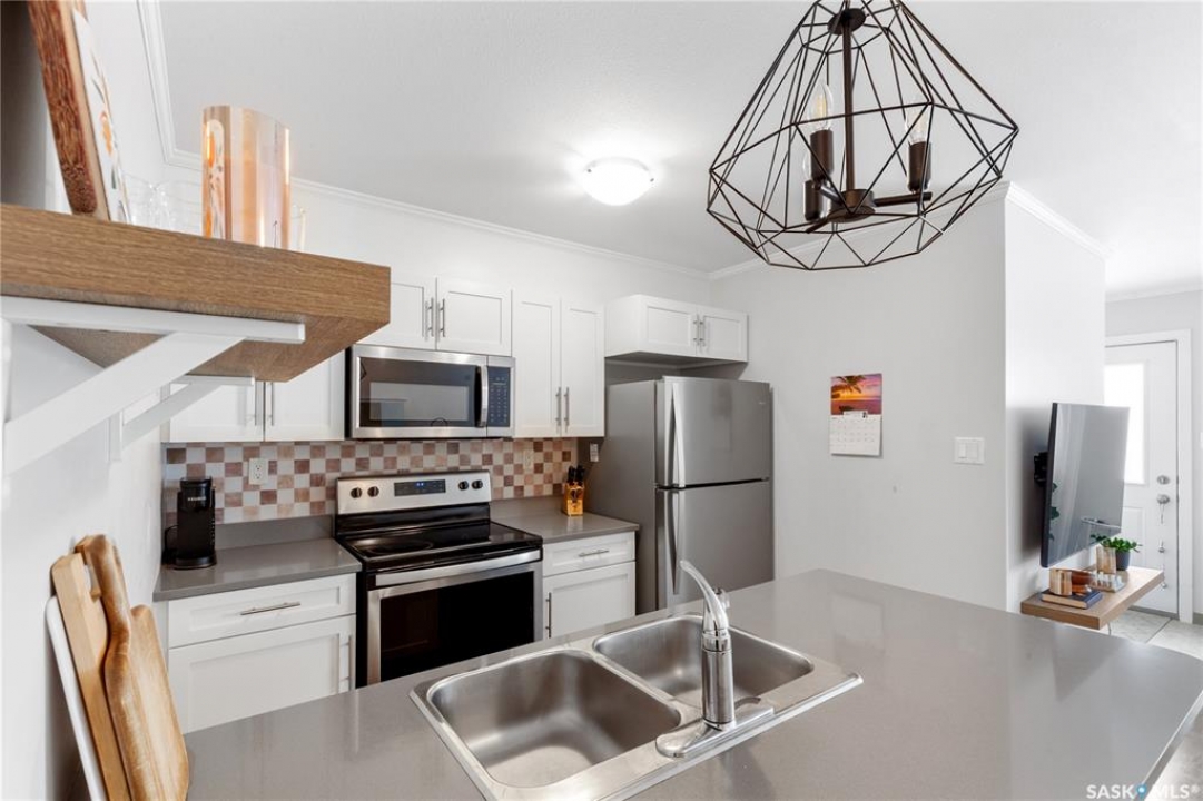 Located in Stonebridge close to Schools, shopping and restaurants, lies this meticulous kept townhouse. With its open floor plan and south facing window's that brig in natural light it feels warm and inviting. There are 2 bedrooms, full 4 piece bath, dedicated laundry room, Dining area, Living room, and kitchen complete with peninsula eating bar. The kitchen has white cabinets, quartz countertops stainless steel appliances. Outside you have a fenced in patio and lawn prefect for barbequing and relaxing. There is 1 electrified parking stall. A great place for your first home.