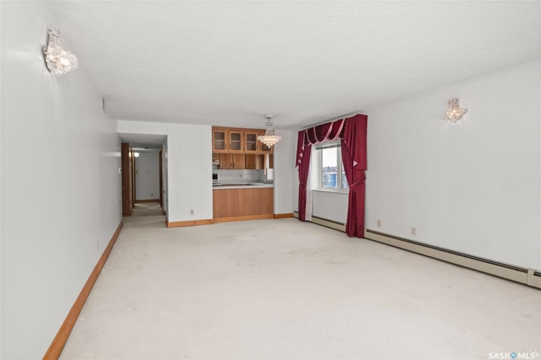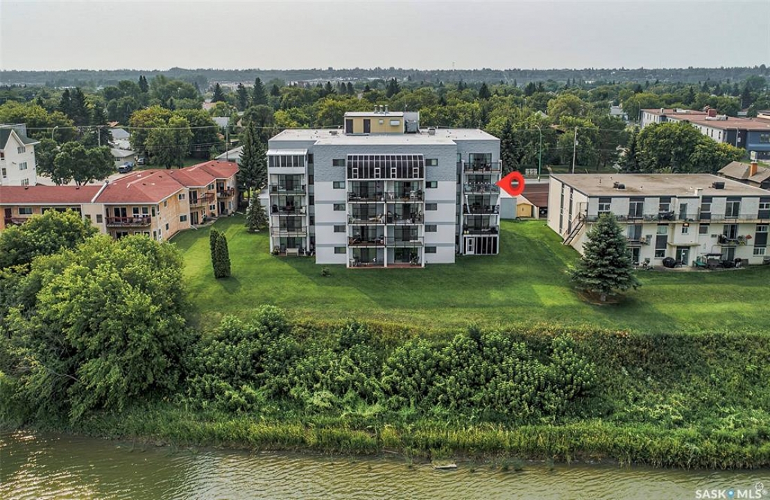 Spacious river front condo located in the Riviera condominium complex. This fourth floor, northwest corner unit provides an open concept floor plan with an abundance of natural light and a panoramic view of the North Saskatchewan River. The 1216 square foot unit offers a bright living room and dining area with Swarovski crystal chandelier and sconces, U-shaped oak kitchen, two bedrooms, 1 � bathrooms, and a storage/laundry room. There are two adjacent garage parking stalls included which are located just steps away from the front entrance. This unit does require updating/repairs and is being sold in “as is” condition. The unit has been unoccupied for approximately 5 years so the Seller is unsure of the condition of any of the appliances and/or fixtures. Don't miss out on this excellent opportunity to make this condo your own!