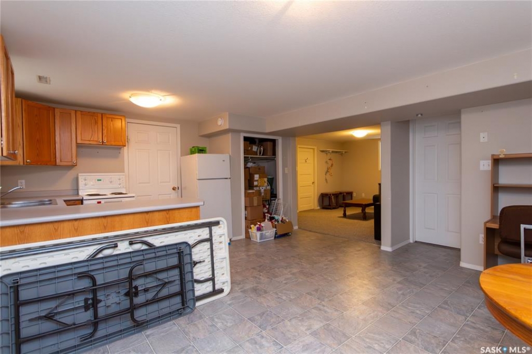 Opportunity knocks with this well cared for home in North Battleford! Perfect for 1st time home buyers, couples wanting to down-size or investors. With a total of 5 bedrooms, 2 full baths and 2 kitchens this 972sq ft home has enough space for comfortable living! The main floor is bright and welcoming with some south facing windows in the living room and dining room. The kitchen is spacious enough for all your culinary needs. There is a 4pc bath and all 3 bedrooms are a good size with 2 of the being treated to updated windows. Downstairs there is an open utility room with the washer/dryer, furnace and storage area. There are 2 power meters, one for upstairs and one for the basement. The non-regulation suite has large windows so it doesn't feel like a basement. A lovely oak kitchen comes with a fridge & stove. A large separate dining room has lots of room for entertaining & a living room perfect to relax in after a long day. The 2 bedrooms are both a generous size and to complete the basement there is a 4pc bathroom. Most of the basement windows have been updated, the shingles were new approx. 7yrs ago and the water heater was new last year. The yard is fully fenced and has some garden areas for your green thumb. There's a cherry tree and small red current bush too. The garage is 20x22 with an electric overhead door and space for a work area in the front. There is off street parking on the concrete driveway as well. Sounds perfect for you? Call today to book your showing!
