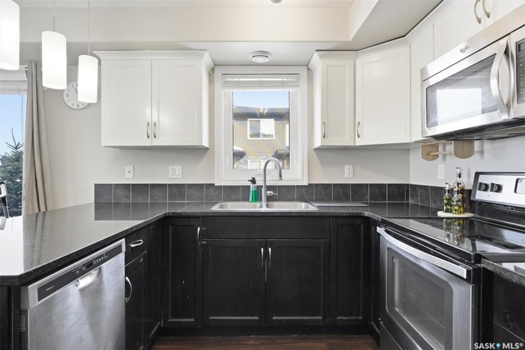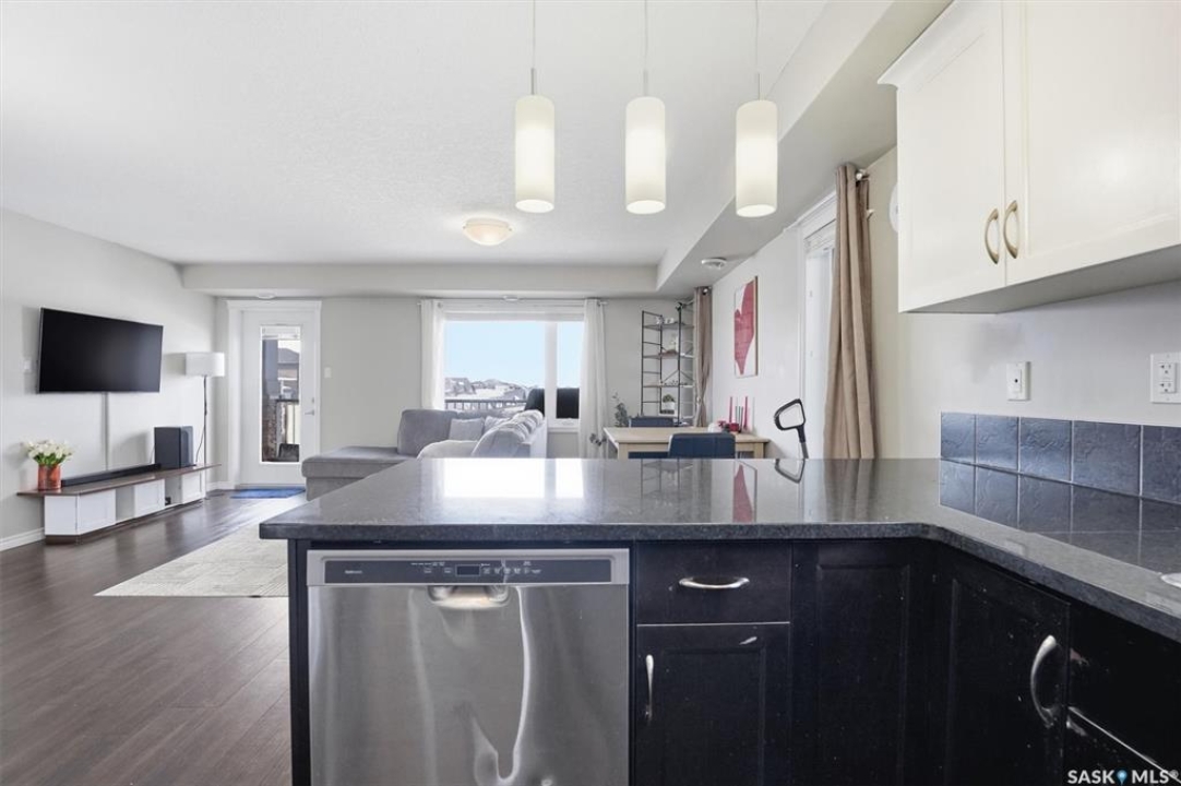 Welcome to #213–210 Rajput Way, a charming townhouse located in the highly desirable Evergreen community. This well-designed home offers 2 bedrooms plus a den and 2 full bathrooms, including a 4-piece ensuite off the primary bedroom, providing both comfort and convenience. The open-concept layout creates a bright and spacious feel throughout the home, perfect for relaxing or entertaining. Inside, you'll find quality finishes including vinyl plank flooring in the main living areas, vinyl tile in the bathrooms, and plush carpet in the bedrooms and den for added comfort. The kitchen and bathrooms feature elegant quartz countertops, while the kitchen is equipped with stainless steel Whirlpool appliances and ample storage. Step out from the living room onto the 19' x 5' balcony, an ideal spot to enjoy fresh air and sunset views. This unit also includes two parking spaces—one surface stall and your own private insulated garage—providing added convenience, storage and security. Ideally situated next to a park and school, this home is perfectly located for families and those looking to enjoy the Evergreen neighborhood. Additional highlights include central air conditioning and in-unit laundry. Don't miss the opportunity to own this stylish and well-maintained townhouse in Evergreen!
