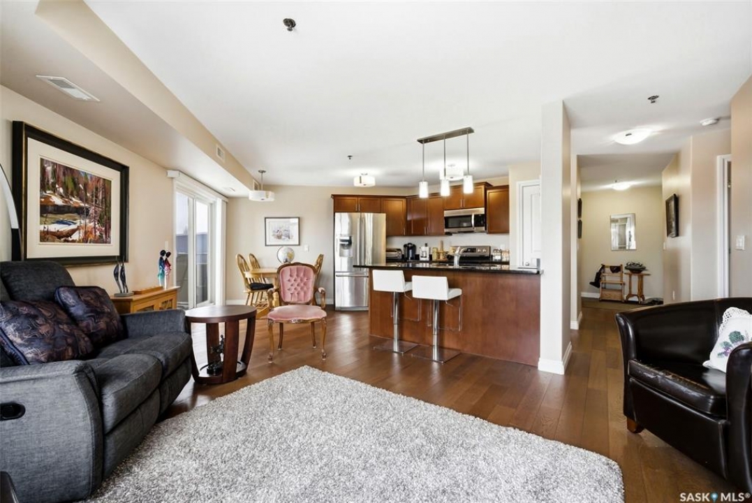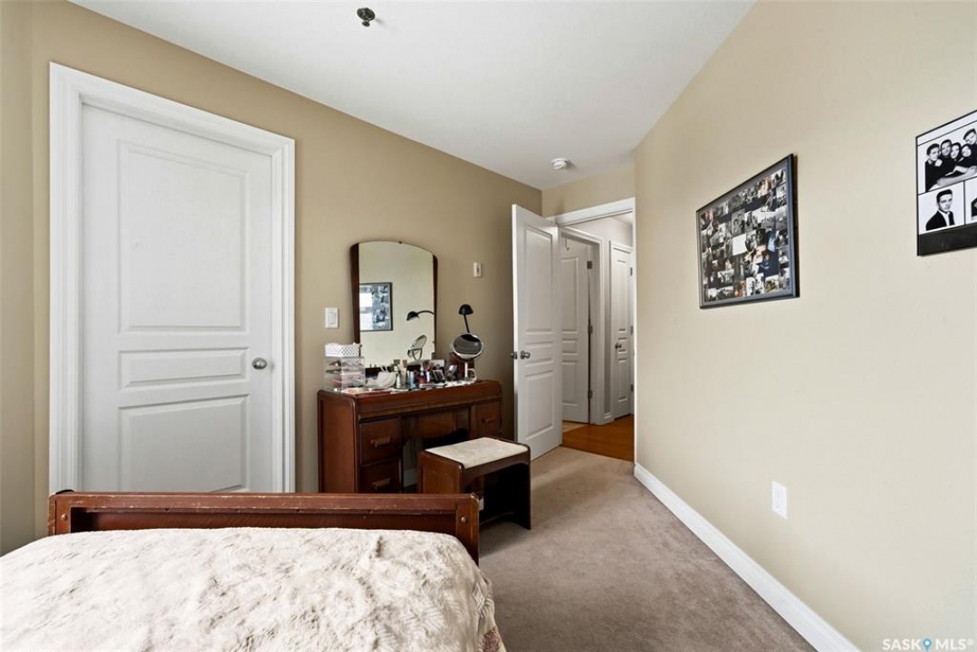 A very bright and spacious 2nd floor corner unit in the Haughton Villas. A very unique building that includes a shared courtyard and great common spaces. Well located in Regina's East End close to parks, Prince of Wales Drive and plenty of restaurants and shopping. This two bedroom, two bathroom unit welcomes you with a spacious foyer and a well-laid out floor plan. The 2nd bedroom (with walk-in closet) and full bathroom are located away from the rest of the unit, perfect for guests. The main living room, kitchen and dining space have a great natural light. Easy access to the corner balcony and storage room. The large master suite has a massive walk-in closet and full ensuite with shower. In suite laundry room. One heated underground parking stall and an oversized storage space are included with this unit. Condos fees of $547.75 include water (building has central, shared water heater). Unit has it's own furnace and central air conditioning.